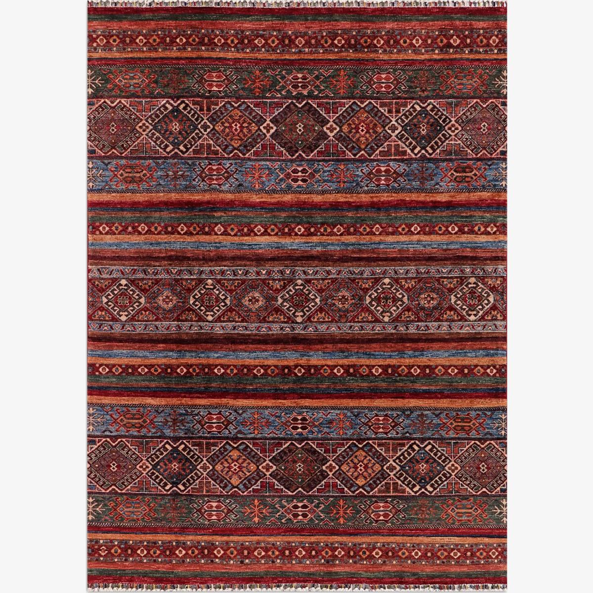 A selection of truly unique and totally individual traditional hand-knotted rugs, this range from Gooch Oriental showcases rugs created by different artisans across town and village locations across the world, including traditional Persian creations. Each piece is carefully selected by the Gooch Oriental team to ensure it's authenticity, quality and finish. Each one is knotted by hand, an intricate process using traditional hand knotting techniques. As such, no two pieces are the same, meaning you can add an authentic and unique piece of crafted design into your home, whilst supporting this heritage industry. The word Khurjeen or Khorjeen means saddle bag in Dari/Farsi. The reason why they chose this name is because of the pattern/style used on the saddle bags. Khurjeen rugs are woven by Turkmen and Hazara tribes in the central and Northern provinces of Afghanistan. The design and patterns of Khurjeen rugs are taken from Saddle bags having different warm colours and straight strips too. Khujeen rugs are unique because of their pattern and delicate designs specially mixing contemporary and traditional designs together. The wool yarns used are all hand spun and dyed using only natural dyes such as cochineal and indigo, which adds to their dramatic and vibrant appearance. Once dyed and hand knotted on a cotton warp base in Afghanistan the rugs are then transported over to Pakistan where they are expertly finished including washing and trimming. In 1sqm of Khurjeen rug there would be around 170000 + knots. The benefits of a wool rug Warm and durable, wool feels beautifully soft underfoot and is long-lasting Naturally flame-retardant and odour resistant Water repellent so easier to clean Naturally biodegradable, wool is part of the circular economy and contains no micro plastics About your new rug We recommend John Lewis & Partners Rug Hold Underlay. It prevents your rug from moving underfoot and protects against colour transfer to the floor As this rug is made using natural fibres, shedding is to be expected. This will reduce over time, and should not have an impact on the lifespan or performance of your rug. When you first get your rug, please use the brush attachment on your vacuum cleaner whilst the shedding dies down. After that, when vacuuming your rug, use suction only. Rotating brushes may damage the fibres. When vacuuming your rug, use suction only. Rotating brushes may damage the fibres Blot any spills with a clean, dry cloth. Do not rub or use harsh detergents. Textile backed Attend to spillages immediately and blot with a clean, dry cloth to prevent staining. Dilute a small amount of appropriate carpet shampoo in water. Dampen a colourfast cloth in the diluted shampoo solution and dab the rug, lightly agitating, moving in the direction of the pile. Treat the whole rug and not just the affected area. To restore the appearance of the affected area, use a soft bristled brush to gently comb in the direction of the pile. Allow the rug to thoroughly dry.