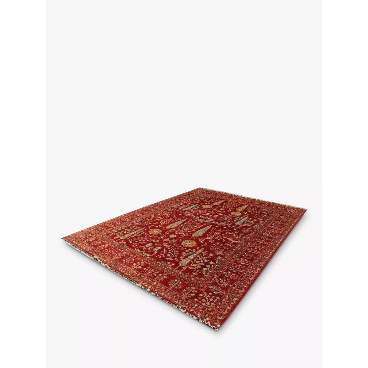 A selection of truly unique and totally individual traditional hand-knotted rugs, this range from Gooch Oriental showcases rugs created by different artisans across town and village locations across the world, including traditional Persian creations. Each piece is carefully selected by the Gooch Oriental team to ensure it's authenticity, quality and finish. Each one is knotted by hand, an intricate process using traditional hand knotting techniques. As such, no two pieces are the same, meaning you can add an authentic and unique piece of crafted design into your home, whilst supporting this heritage industry. The word Khurjeen or Khorjeen means saddle bag in Dari/Farsi. The reason why they chose this name is because of the pattern/style used on the saddle bags. Khurjeen rugs are woven by Turkmen and Hazara tribes in the central and Northern provinces of Afghanistan. The design and patterns of Khurjeen rugs are taken from Saddle bags having different warm colours and straight strips too. Khujeen rugs are unique because of their pattern and delicate designs specially mixing contemporary and traditional designs together. The wool yarns used are all hand spun and dyed using only natural dyes such as cochineal and indigo, which adds to their dramatic and vibrant appearance. Once dyed and hand knotted on a cotton warp base in Afghanistan the rugs are then transported over to Pakistan where they are expertly finished including washing and trimming. In 1sqm of Khurjeen rug there would be around 170000 + knots. The benefits of a wool rug Warm and durable, wool feels beautifully soft underfoot and is long-lasting Naturally flame-retardant and odour resistant Water repellent so easier to clean Naturally biodegradable, wool is part of the circular economy and contains no micro plastics About your new rug We recommend John Lewis & Partners Rug Hold Underlay. It prevents your rug from moving underfoot and protects against colour transfer to the floor As this rug is made using natural fibres, shedding is to be expected. This will reduce over time, and should not have an impact on the lifespan or performance of your rug. When you first get your rug, please use the brush attachment on your vacuum cleaner whilst the shedding dies down. After that, when vacuuming your rug, use suction only. Rotating brushes may damage the fibres. When vacuuming your rug, use suction only. Rotating brushes may damage the fibres Blot any spills with a clean, dry cloth. Do not rub or use harsh detergents. Textile backed Attend to spillages immediately and blot with a clean, dry cloth to prevent staining. Dilute a small amount of appropriate carpet shampoo in water. Dampen a colourfast cloth in the diluted shampoo solution and dab the rug, lightly agitating, moving in the direction of the pile. Treat the whole rug and not just the affected area. To restore the appearance of the affected area, use a soft bristled brush to gently comb in the direction of the pile. Allow the rug to thoroughly dry.