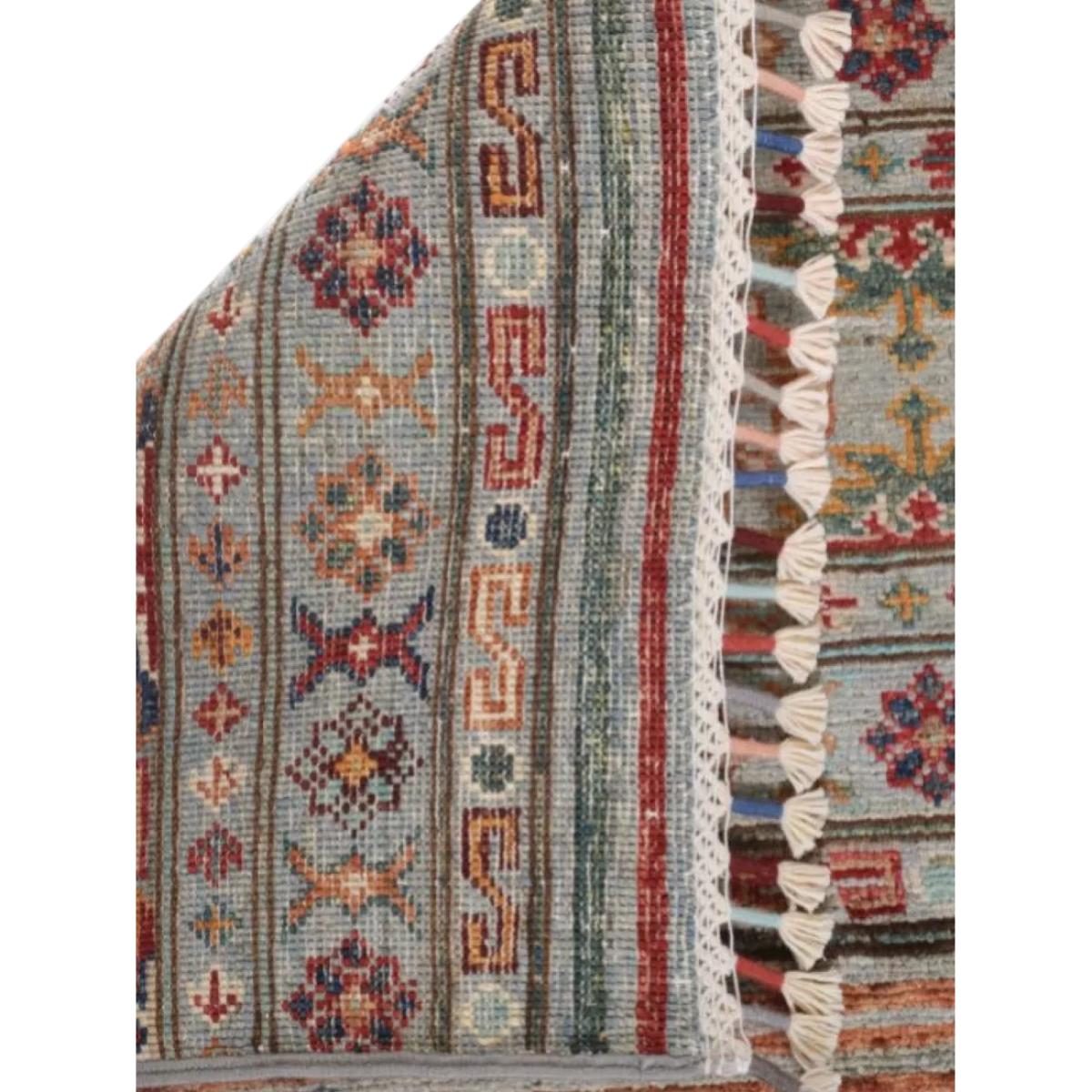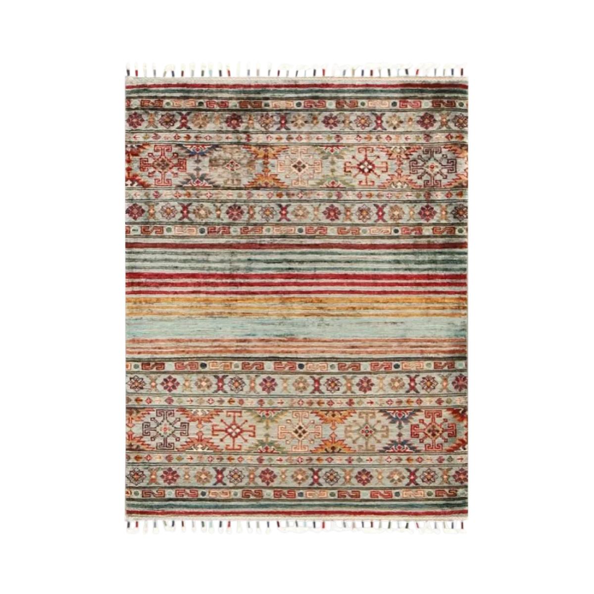 A selection of truly unique and totally individual traditional hand-knotted rugs, this range from Gooch Oriental showcases rugs created by different artisans across town and village locations across the world, including traditional Persian creations. Each piece is carefully selected by the Gooch Oriental team to ensure it's authenticity, quality and finish. Each one is knotted by hand, an intricate process using traditional hand knotting techniques. As such, no two pieces are the same, meaning you can add an authentic and unique piece of crafted design into your home, whilst supporting this heritage industry. The word ‘Khurjeen or Khorjeen’ means ‘’saddle bag’’ in Dari/Farsi. The reason why they chose this name is because of the pattern/style used on the saddle bags. Khurjeen rugs are woven by Turkmen and Hazara tribes in the central and Northern provinces of Afghanistan. The design and patterns of Khurjeen rugs are taken from Saddle bags having different warm colours and straight strips too. Khujeen rugs are unique because of their pattern and delicate designs specially mixing contemporary and traditional designs together. The wool yarns used are all hand spun and dyed using only natural dyes such as cochineal and indigo, which adds to their dramatic and vibrant appearance. Once dyed and hand knotted on a cotton warp base in Afghanistan the rugs are then transported over to Pakistan where they are expertly finished including washing and trimming. In 1sqm of Khurjeen rug there would be around 170000 + knots. About your new rug We recommend John Lewis & Partners Rug Hold Underlay. It prevents your rug from moving underfoot and protects against colour transfer to the floor As this rug is made using natural fibres, shedding is to be expected. This will reduce over time, and should not have an impact on the lifespan or performance of your rug. When you first get your rug, please use the brush attachment on your vacuum cleaner whilst the shedding dies down. After that, when vacuuming your rug, use suction only. Rotating brushes may damage the fibres. When vacuuming your rug, use suction only. Rotating brushes may damage the fibres Blot any spills with a clean, dry cloth. Do not rub or use harsh detergents. Attend to spillages immediately and blot with a clean, dry cloth to prevent staining. Dilute a small amount of appropriate carpet shampoo in water. Dampen a colourfast cloth in the diluted shampoo solution and dab the rug, lightly agitating, moving in the direction of the pile. Treat the whole rug and not just the affected area. To restore the appearance of the affected area, use a soft bristled brush to gently comb in the direction of the pile. Allow the rug to thoroughly dry.