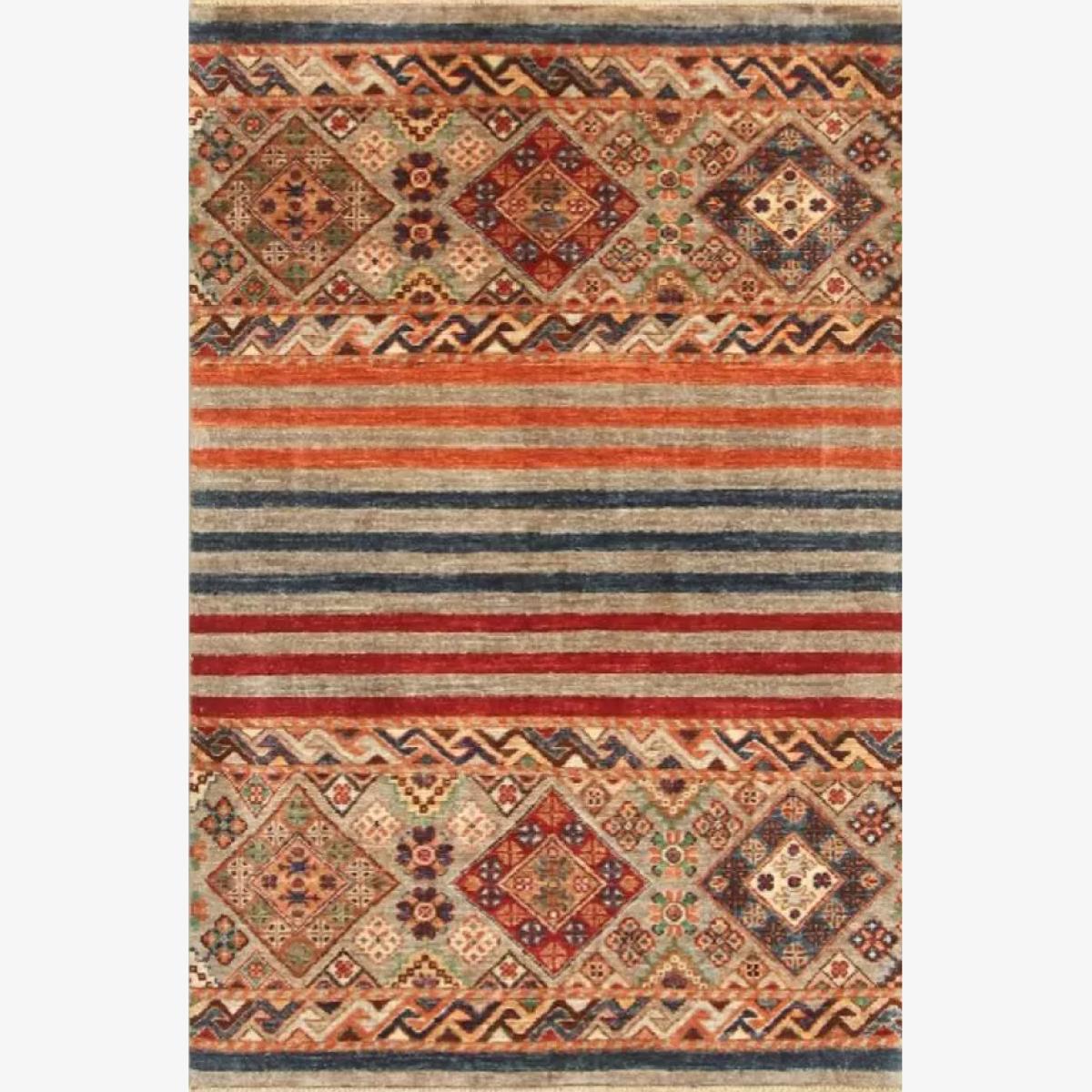 A selection of truly unique and totally individual traditional hand-knotted rugs, this range from Gooch Oriental showcases rugs created by different artisans across town and village locations across the world, including traditional Persian creations. Each piece is carefully selected by the Gooch Oriental team to ensure it's authenticity, quality and finish. Each one is knotted by hand, an intricate process using traditional hand knotting techniques. As such, no two pieces are the same, meaning you can add an authentic and unique piece of crafted design into your home, whilst supporting this heritage industry. The word ‘Khurjeen or Khorjeen’ means ‘’saddle bag’’ in Dari/Farsi. The reason why they chose this name is because of the pattern/style used on the saddle bags. Khurjeen rugs are woven by Turkmen and Hazara tribes in the central and Northern provinces of Afghanistan. The design and patterns of Khurjeen rugs are taken from Saddle bags having different warm colours and straight strips too. Khujeen rugs are unique because of their pattern and delicate designs specially mixing contemporary and traditional designs together. The wool yarns used are all hand spun and dyed using only natural dyes such as cochineal and indigo, which adds to their dramatic and vibrant appearance. Once dyed and hand knotted on a cotton warp base in Afghanistan the rugs are then transported over to Pakistan where they are expertly finished including washing and trimming. In 1sqm of Khurjeen rug there would be around 170000 + knots. About your new rug We recommend John Lewis & Partners Rug Hold Underlay. It prevents your rug from moving underfoot and protects against colour transfer to the floor As this rug is made using natural fibres, shedding is to be expected. This will reduce over time, and should not have an impact on the lifespan or performance of your rug. When you first get your rug, please use the brush attachment on your vacuum cleaner whilst the shedding dies down. After that, when vacuuming your rug, use suction only. Rotating brushes may damage the fibres. When vacuuming your rug, use suction only. Rotating brushes may damage the fibres Blot any spills with a clean, dry cloth. Do not rub or use harsh detergents. Attend to spillages immediately and blot with a clean, dry cloth to prevent staining. Dilute a small amount of appropriate carpet shampoo in water. Dampen a colourfast cloth in the diluted shampoo solution and dab the rug, lightly agitating, moving in the direction of the pile. Treat the whole rug and not just the affected area. To restore the appearance of the affected area, use a soft bristled brush to gently comb in the direction of the pile. Allow the rug to thoroughly dry.