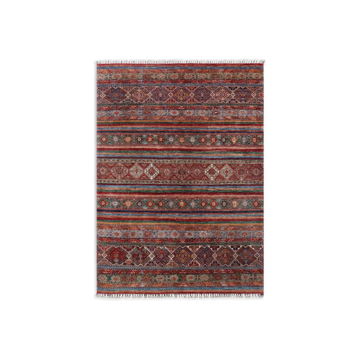A selection of truly unique and totally individual traditional hand-knotted rugs, this range from Gooch Oriental showcases rugs created by different artisans across town and village locations across the world, including traditional Persian creations. Each piece is carefully selected by the Gooch Oriental team to ensure it's authenticity, quality and finish. Each one is knotted by hand, an intricate process using traditional hand knotting techniques. As such, no two pieces are the same, meaning you can add an authentic and unique piece of crafted design into your home, whilst supporting this heritage industry. The word Khurjeen or Khorjeen means saddle bag in Dari/Farsi. The reason why they chose this name is because of the pattern/style used on the saddle bags. Khurjeen rugs are woven by Turkmen and Hazara tribes in the central and Northern provinces of Afghanistan. The design and patterns of Khurjeen rugs are taken from Saddle bags having different warm colours and straight strips too. Khujeen rugs are unique because of their pattern and delicate designs specially mixing contemporary and traditional designs together. The wool yarns used are all hand spun and dyed using only natural dyes such as cochineal and indigo, which adds to their dramatic and vibrant appearance. Once dyed and hand knotted on a cotton warp base in Afghanistan the rugs are then transported over to Pakistan where they are expertly finished including washing and trimming. In 1sqm of Khurjeen rug there would be around 170000 + knots. About your new rug We recommend John Lewis & Partners Rug Hold Underlay. It prevents your rug from moving underfoot and protects against colour transfer to the floor Natural fibres may shed. This will reduce over time, and shouldn't affect your rug's lifespan or performance When vacuuming your rug, use suction only. Rotating brushes may damage the fibres Blot any spills with a clean, dry cloth. Do not rub or use harsh detergents. Textile backed