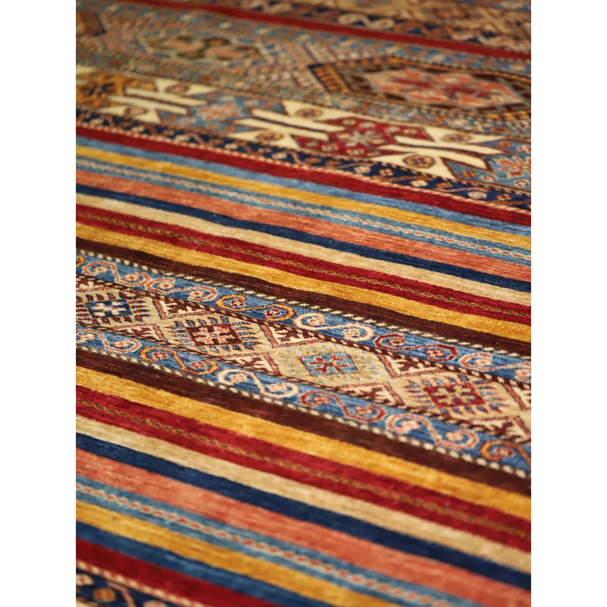 A selection of truly unique and totally individual traditional hand-knotted rugs, this range from Gooch Oriental showcases rugs created by different artisans across town and village locations across the world, including traditional Persian creations. Each piece is carefully selected by the Gooch Oriental team to ensure it's authenticity, quality and finish. Each one is knotted by hand, an intricate process using traditional hand knotting techniques. As such, no two pieces are the same, meaning you can add an authentic and unique piece of crafted design into your home, whilst supporting this heritage industry. The word Khurjeen or Khorjeen means saddle bag in Dari/Farsi. The reason why they chose this name is because of the pattern/style used on the saddle bags. Khurjeen rugs are woven by Turkmen and Hazara tribes in the central and Northern provinces of Afghanistan. The design and patterns of Khurjeen rugs are taken from Saddle bags having different warm colours and straight strips too. Khujeen rugs are unique because of their pattern and delicate designs specially mixing contemporary and traditional designs together. The wool yarns used are all hand spun and dyed using only natural dyes such as cochineal and indigo, which adds to their dramatic and vibrant appearance. Once dyed and hand knotted on a cotton warp base in Afghanistan the rugs are then transported over to Pakistan where they are expertly finished including washing and trimming. In 1sqm of Khurjeen rug there would be around 170000 + knots. The benefits of a wool rug Warm and durable, wool feels beautifully soft underfoot and is long-lasting Naturally flame-retardant and odour resistant Water repellent so easier to clean Naturally biodegradable, wool is part of the circular economy and contains no micro plastics This rug has been knotted by hand, the oldest and most individual way a rug can be made. This involves an intricate process of weaving by hand on a loom where yarns are tied one at a time, giving the rug a durable construction. About your new rug We recommend John Lewis & Partners Rug Hold Underlay. It prevents your rug from moving underfoot and protects against colour transfer to the floor As this rug is made using natural fibres, shedding is to be expected. This will reduce over time, and should not have an impact on the lifespan or performance of your rug. When you first get your rug, please use the brush attachment on your vacuum cleaner whilst the shedding dies down. After that, when vacuuming your rug, use suction only. Rotating brushes may damage the fibres. When vacuuming your rug, use suction only. Rotating brushes may damage the fibres Blot any spills with a clean, dry cloth. Do not rub or use harsh detergents. Textile backed Attend to spillages immediately and blot with a clean, dry cloth to prevent staining. Dilute a small amount of appropriate carpet shampoo in water. Dampen a colourfast cloth in the diluted shampoo solution and dab the rug, lightly agitating, moving in the direction of the pile. Treat the whole rug and not just the affected area. To restore the appearance of the affected area, use a soft bristled brush to gently comb in the direction of the pile. Allow the rug to thoroughly dry.