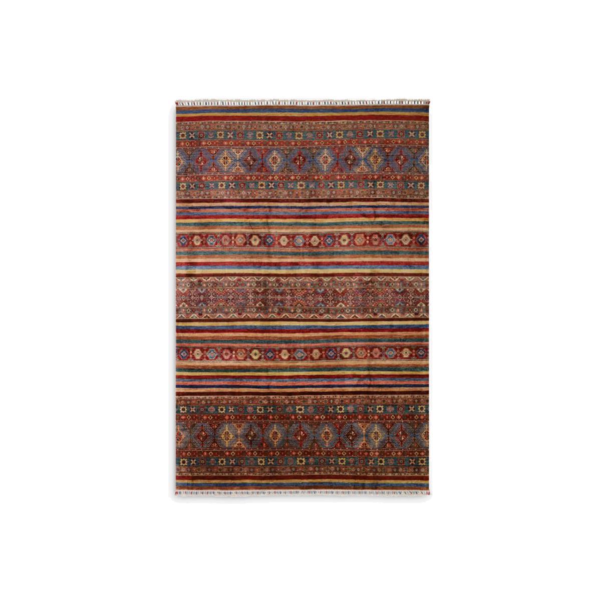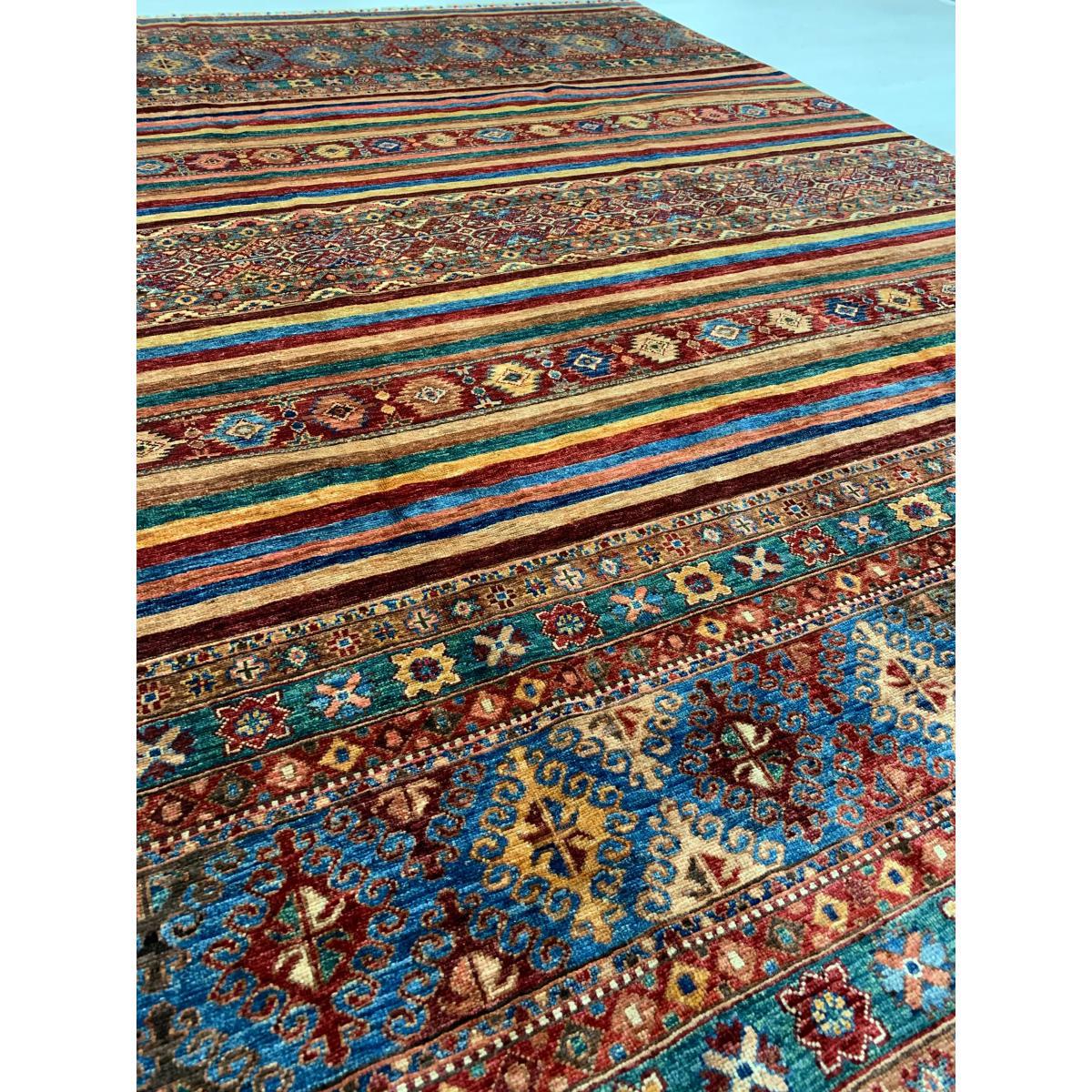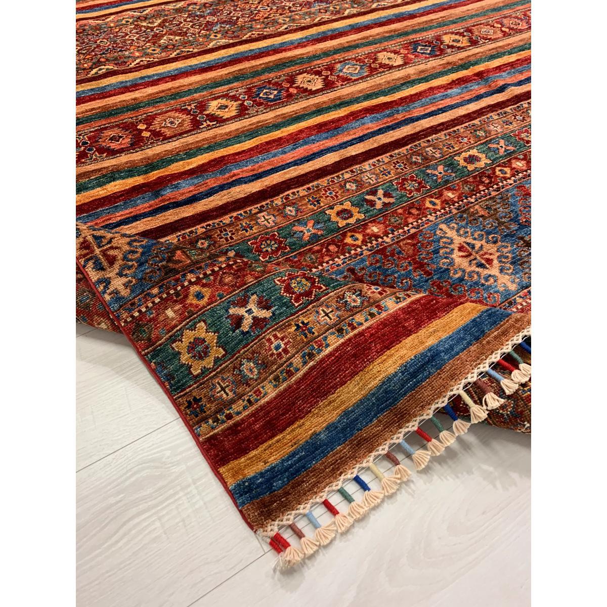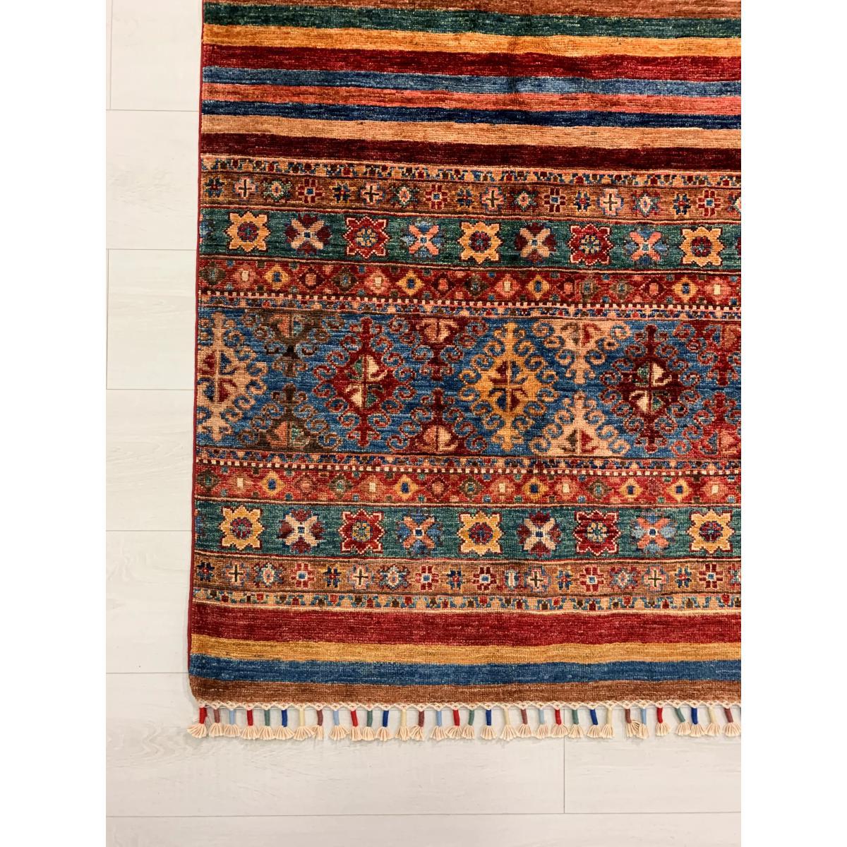 A selection of truly unique and totally individual traditional hand-knotted rugs, this range from Gooch Oriental showcases rugs created by different artisans across town and village locations across the world, including traditional Persian creations. Each piece is carefully selected by the Gooch Oriental team to ensure it's authenticity, quality and finish. Each one is knotted by hand, an intricate process using traditional hand knotting techniques. As such, no two pieces are the same, meaning you can add an authentic and unique piece of crafted design into your home, whilst supporting this heritage industry. The word ‘Khurjeen or Khorjeen’ means ‘’saddle bag’’ in Dari/Farsi. The reason why they chose this name is because of the pattern/style used on the saddle bags. Khurjeen rugs are woven by Turkmen and Hazara tribes in the central and Northern provinces of Afghanistan. The design and patterns of Khurjeen rugs are taken from Saddle bags having different warm colours and straight strips too. Khujeen rugs are unique because of their pattern and delicate designs specially mixing contemporary and traditional designs together. The wool yarns used are all hand spun and dyed using only natural dyes such as cochineal and indigo, which adds to their dramatic and vibrant appearance. Once dyed and hand knotted on a cotton warp base in Afghanistan the rugs are then transported over to Pakistan where they are expertly finished including washing and trimming. In 1sqm of Khurjeen rug there would be around 170000 + knots. About your new rug We recommend. It prevents your rug from moving underfoot and protects against colour transfer to the floor Natural fibres may shed. This will reduce over time, and shouldn’t affect your rug’s lifespan or performance When vacuuming your rug, use suction only. Rotating brushes may damage the fibres Blot any spills with a clean, dry cloth. Do not rub or use harsh detergents. Textile backed