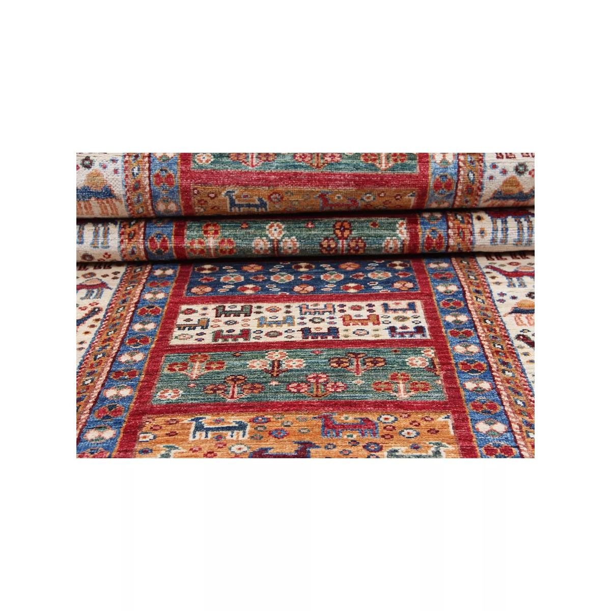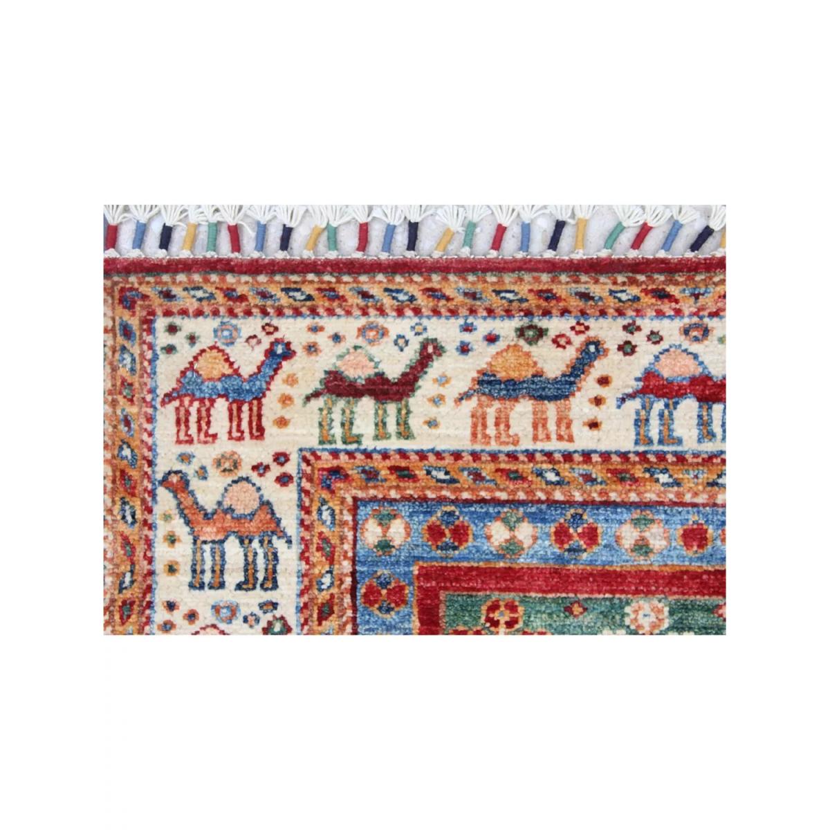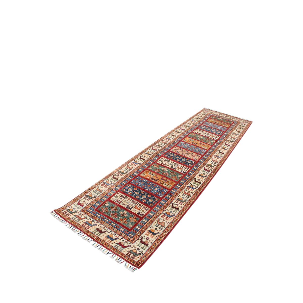 A selection of truly unique and totally individual traditional hand-knotted rugs, this range from Gooch Oriental showcases rugs created by different artisans across town and village locations across the world, including traditional Persian creations. Each piece is carefully selected by the Gooch Oriental team to ensure it's authenticity, quality and finish. Each one is knotted by hand, an intricate process using traditional hand knotting techniques. As such, no two pieces are the same, meaning you can add an authentic and unique piece of crafted design into your home, whilst supporting this heritage industry. The word ‘Khurjeen or Khorjeen’ means ‘’saddle bag’’ in Dari/Farsi. The reason why they chose this name is because of the pattern/style used on the saddle bags. Khurjeen rugs are woven by Turkmen and Hazara tribes in the central and Northern provinces of Afghanistan. The design and patterns of Khurjeen rugs are taken from Saddle bags having different warm colours and straight strips too. Khujeen rugs are unique because of their pattern and delicate designs specially mixing contemporary and traditional designs together. The wool yarns used are all hand spun and dyed using only natural dyes such as cochineal and indigo, which adds to their dramatic and vibrant appearance. Once dyed and hand knotted on a cotton warp base in Afghanistan the rugs are then transported over to Pakistan where they are expertly finished including washing and trimming. In 1sqm of Khurjeen rug there would be around 170000 + knots. About your new rug We recommend John Lewis & Partners Rug Hold Underlay. It prevents your rug from moving underfoot and protects against colour transfer to the floor As this rug is made using natural fibres, shedding is to be expected. This will reduce over time, and should not have an impact on the lifespan or performance of your rug. When you first get your rug, please use the brush attachment on your vacuum cleaner whilst the shedding dies down. After that, when vacuuming your rug, use suction only. Rotating brushes may damage the fibres. When vacuuming your rug, use suction only. Rotating brushes may damage the fibres Blot any spills with a clean, dry cloth. Do not rub or use harsh detergents. Attend to spillages immediately and blot with a clean, dry cloth to prevent staining. Dilute a small amount of appropriate carpet shampoo in water. Dampen a colourfast cloth in the diluted shampoo solution and dab the rug, lightly agitating, moving in the direction of the pile. Treat the whole rug and not just the affected area. To restore the appearance of the affected area, use a soft bristled brush to gently comb in the direction of the pile. Allow the rug to thoroughly dry.