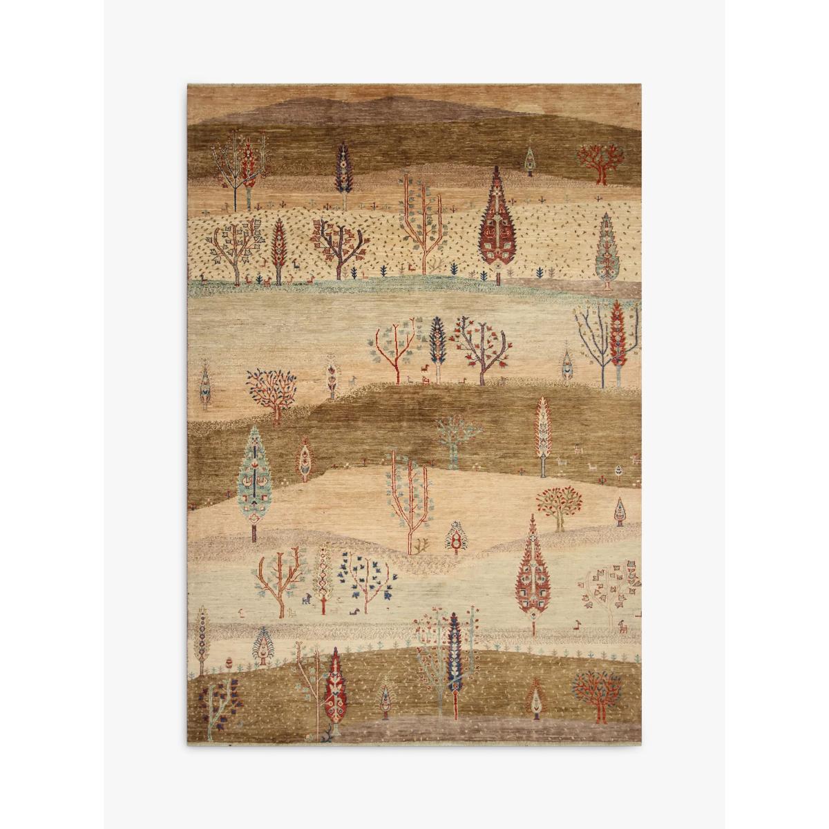 A selection of truly unique and totally individual traditional hand-knotted rugs, this range from Gooch Oriental showcases rugs created by different artisans across town and village locations across the world, including traditional Persian creations. Each piece is carefully selected by the Gooch Oriental team to ensure it's authenticity, quality and finish. Each one is knotted by hand, an intricate process using traditional hand knotting techniques. As such, no two pieces are the same, meaning you can add an authentic and unique piece of crafted design into your home, whilst supporting this heritage industry. Semi plain in design, the Gabbeh rug is as versatile as it is luxurious. Hand woven by Turkoman tribes in the province of Aqchae of Northern Afghanistan and made using 100% hand-spun wool on a cotton warp. The natural wool used creates a unique semi plain pattern, meaning the colours can vary from light to dark natural, grey and cream shades due to the variances in the natural wool. Some include warn dyed shades of the same wool yarn and woven into a striped pattern such as this. The rugs are then transported over to Pakistan where they are expertly finished including washing and trimming. In 1sqm of Gabbeh rugs there are around 150000+ knots giving it a mid-density pile. The benefits of a wool rug Warm and durable, wool feels beautifully soft underfoot and is long-lasting Naturally flame-retardant and odour resistant Water repellent so easier to clean Naturally biodegradable, wool is part of the circular economy and contains no micro plastics About your new rug We recommend John Lewis & Partners Rug Hold Underlay. It prevents your rug from moving underfoot and protects against colour transfer to the floor As this rug is made using natural fibres, shedding is to be expected. This will reduce over time, and should not have an impact on the lifespan or performance of your rug. When you first get your rug, please use the brush attachment on your vacuum cleaner whilst the shedding dies down. After that, when vacuuming your rug, use suction only. Rotating brushes may damage the fibres. When vacuuming your rug, use suction only. Rotating brushes may damage the fibres Blot any spills with a clean, dry cloth. Do not rub or use harsh detergents. Textile backed Attend to spillages immediately and blot with a clean, dry cloth to prevent staining. Dilute a small amount of appropriate carpet shampoo in water. Dampen a colourfast cloth in the diluted shampoo solution and dab the rug, lightly agitating, moving in the direction of the pile. Treat the whole rug and not just the affected area. To restore the appearance of the affected area, use a soft bristled brush to gently comb in the direction of the pile. Allow the rug to thoroughly dry.