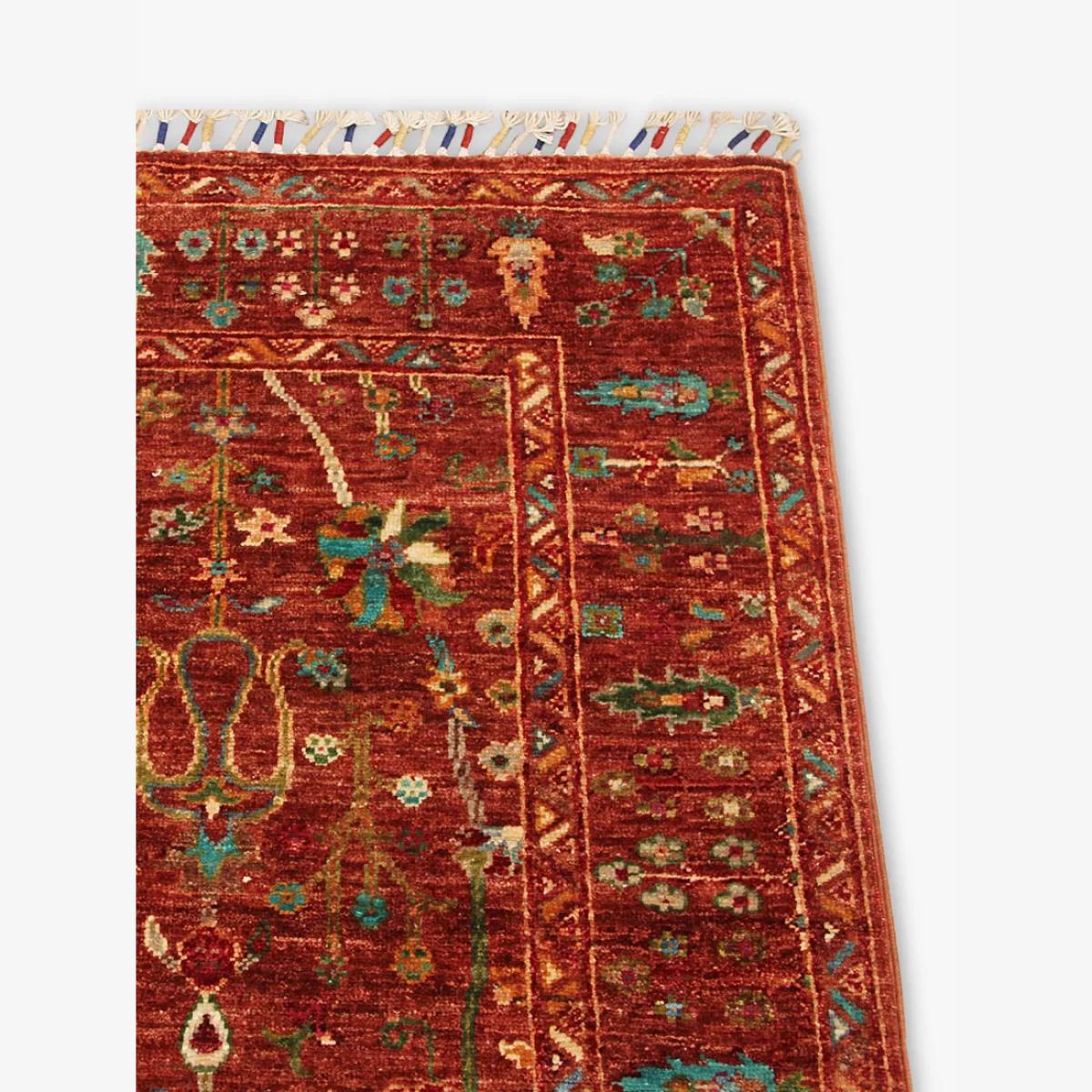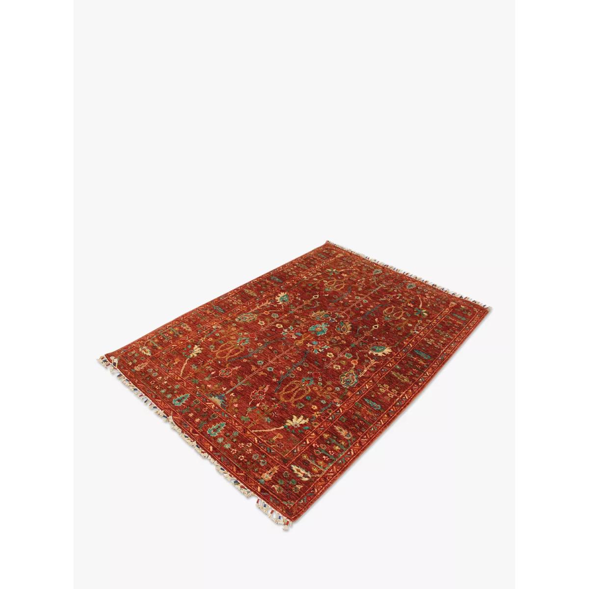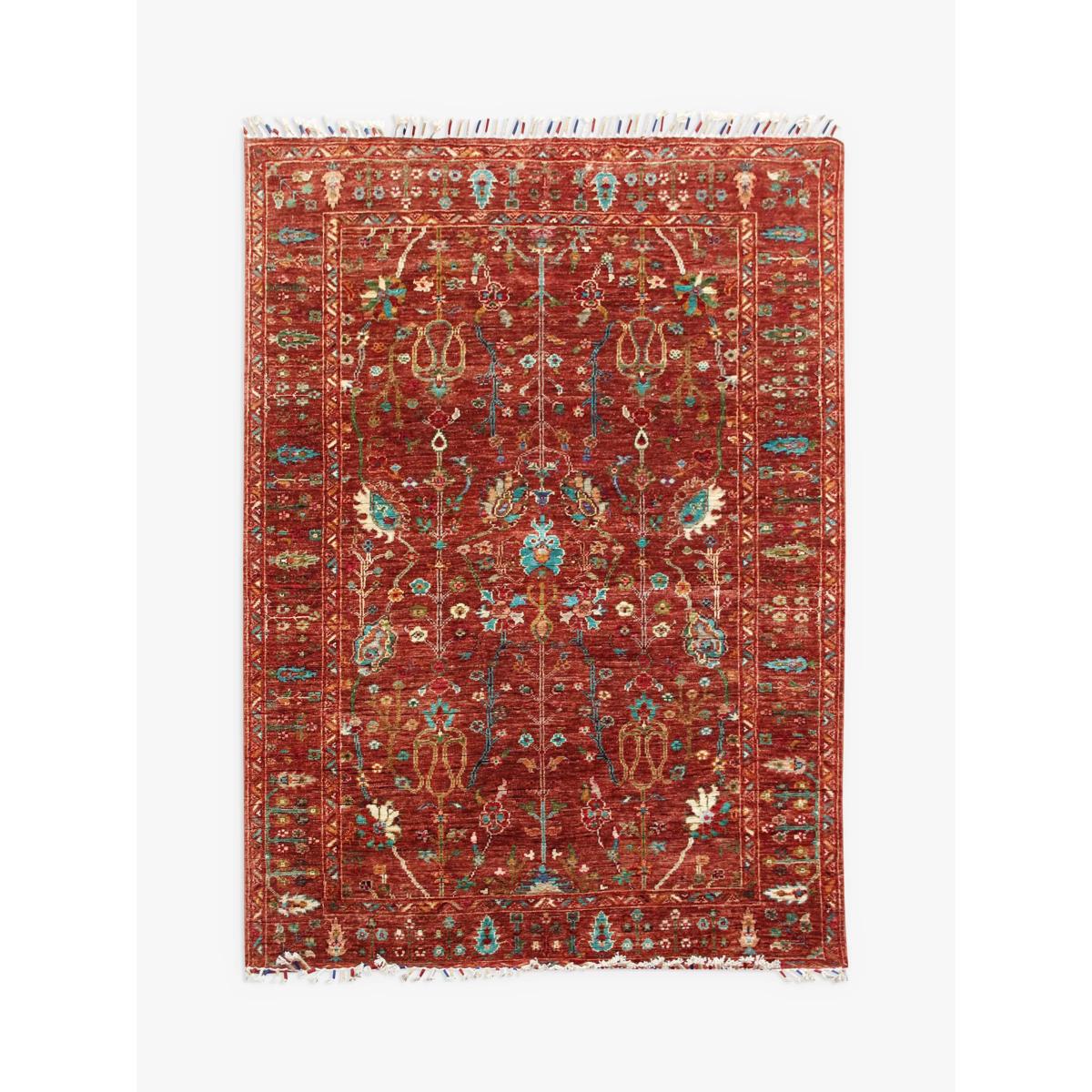 A selection of truly unique and totally individual traditional hand-knotted rugs, this range from Gooch Oriental showcases rugs created by different artisans across town and village locations across the world, including traditional Persian creations. Each piece is carefully selected by the Gooch Oriental team to ensure it's authenticity, quality and finish. Each one is knotted by hand, an intricate process using traditional hand knotting techniques. As such, no two pieces are the same, meaning you can add an authentic and unique piece of crafted design into your home, whilst supporting this heritage industry. The word Khurjeen or Khorjeen means saddle bag in Dari/Farsi. The reason why they chose this name is because of the pattern/style used on the saddle bags. Khurjeen rugs are woven by Turkmen and Hazara tribes in the central and Northern provinces of Afghanistan. The design and patterns of Khurjeen rugs are taken from Saddle bags having different warm colours and straight strips too. Khujeen rugs are unique because of their pattern and delicate designs specially mixing contemporary and traditional designs together. The wool yarns used are all hand spun and dyed using only natural dyes such as cochineal and indigo, which adds to their dramatic and vibrant appearance. Once dyed and hand knotted on a cotton warp base in Afghanistan the rugs are then transported over to Pakistan where they are expertly finished including washing and trimming. In 1sqm of Khurjeen rug there would be around 170000 + knots. The benefits of a wool rug Warm and durable, wool feels beautifully soft underfoot and is long-lasting Naturally flame-retardant and odour resistant Water repellent so easier to clean Naturally biodegradable, wool is part of the circular economy and contains no micro plastics About your new rug We recommend John Lewis & Partners Rug Hold Underlay. It prevents your rug from moving underfoot and protects against colour transfer to the floor As this rug is made using natural fibres, shedding is to be expected. This will reduce over time, and should not have an impact on the lifespan or performance of your rug. When you first get your rug, please use the brush attachment on your vacuum cleaner whilst the shedding dies down. After that, when vacuuming your rug, use suction only. Rotating brushes may damage the fibres. When vacuuming your rug, use suction only. Rotating brushes may damage the fibres Blot any spills with a clean, dry cloth. Do not rub or use harsh detergents. Textile backed Attend to spillages immediately and blot with a clean, dry cloth to prevent staining. Dilute a small amount of appropriate carpet shampoo in water. Dampen a colourfast cloth in the diluted shampoo solution and dab the rug, lightly agitating, moving in the direction of the pile. Treat the whole rug and not just the affected area. To restore the appearance of the affected area, use a soft bristled brush to gently comb in the direction of the pile. Allow the rug to thoroughly dry.