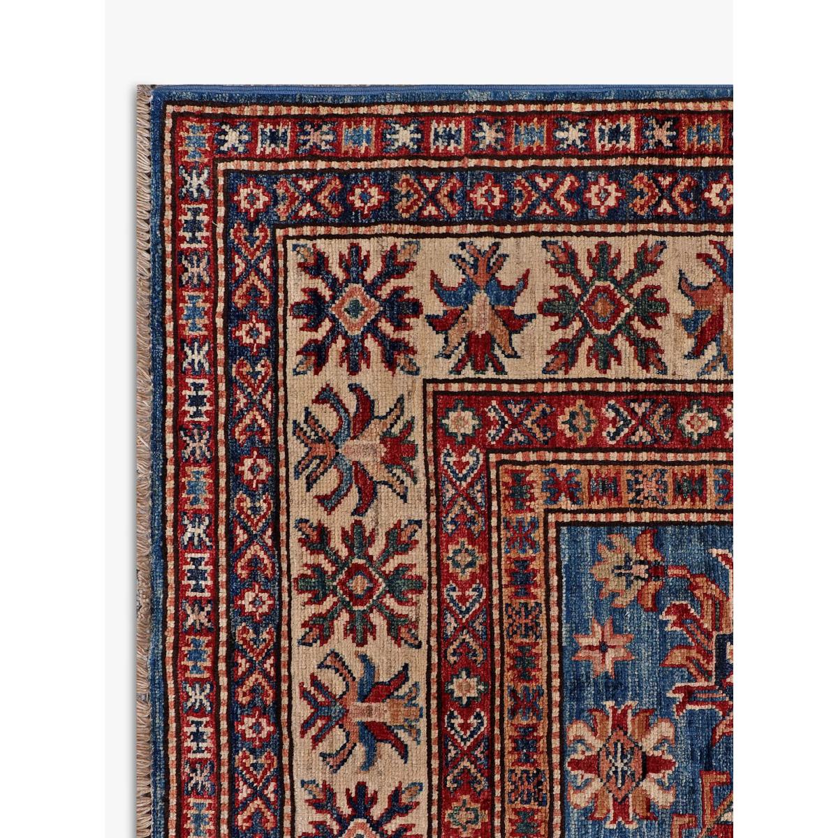 A selection of truly unique and totally individual traditional hand-knotted rugs, this range from Gooch Oriental showcases rugs created by different artisans across town and village locations across the world, including traditional Persian creations. Each piece is carefully selected by the Gooch Oriental team to ensure it's authenticity, quality and finish. Each one is knotted by hand, an intricate process using traditional hand knotting techniques. As such, no two pieces are the same, meaning you can add an authentic and unique piece of crafted design into your home, whilst supporting this heritage industry. The supreme Kazak design is mainly made by the Hazara Tribes of Afghanistan. The design and patterns of Kazak rugs are taken from old Caucasian rugs (Caucasian carpets are from the areas south, east and north of the mountain chain of the Caucasus, Russia). The wool yarns used are all hand spun and dyed using only natural dyes such as cochineal and indigo, which adds to their dramatic and vibrant appearance. Once dyed and hand knotted on a cotton warp base in Afghanistan the rugs are then transported over to Pakistan where they are expertly finished including washing and trimming. The method used to hand make a Kazak rug is called ChappatBaft or Flat woven. Kazak rug weavers are faithful in using traditional bold colour and design mainly with geometrical motifs including a mixture of diamond and circle shapes as well as representations of animals, people and nature. In 1sqm of a Supreme Kazak rug there would be around 160000 + knots giving a fine-density pile. The benefits of a wool rug Warm and durable, wool feels beautifully soft underfoot and is long-lasting Naturally flame-retardant and odour resistant Water repellent so easier to clean Naturally biodegradable, wool is part of the circular economy and contains no micro plastics About your new rug We recommend John Lewis & Partners Rug Hold Underlay. It prevents your rug from moving underfoot and protects against colour transfer to the floor As this rug is made using natural fibres, shedding is to be expected. This will reduce over time, and should not have an impact on the lifespan or performance of your rug. When you first get your rug, please use the brush attachment on your vacuum cleaner whilst the shedding dies down. After that, when vacuuming your rug, use suction only. Rotating brushes may damage the fibres. When vacuuming your rug, use suction only. Rotating brushes may damage the fibres Blot any spills with a clean, dry cloth. Do not rub or use harsh detergents. Textile backed Attend to spillages immediately and blot with a clean, dry cloth to prevent staining. Dilute a small amount of appropriate carpet shampoo in water. Dampen a colourfast cloth in the diluted shampoo solution and dab the rug, lightly agitating, moving in the direction of the pile. Treat the whole rug and not just the affected area. To restore the appearance of the affected area, use a soft bristled brush to gently comb in the direction of the pile. Allow the rug to thoroughly dry.