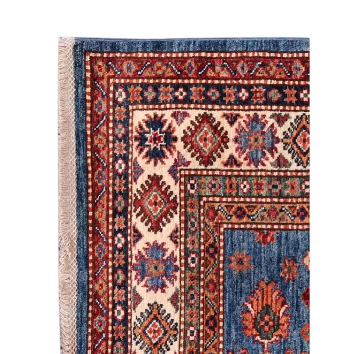 A selection of truly unique and totally individual traditional hand-knotted rugs, this range from Gooch Oriental showcases rugs created by different artisans across town and village locations across the world, including traditional Persian creations. Each piece is carefully selected by the Gooch Oriental team to ensure it's authenticity, quality and finish. Each one is knotted by hand, an intricate process using traditional hand knotting techniques. As such, no two pieces are the same, meaning you can add an authentic and unique piece of crafted design into your home, whilst supporting this heritage industry. The supreme Kazak design is mainly made by the Hazara Tribes of Afghanistan. The design and patterns of Kazak rugs are taken from old Caucasian rugs (Caucasian carpets are from the areas south, east and north of the mountain chain of the Caucasus, Russia). The wool yarns used are all hand spun and dyed using only natural dyes such as cochineal and indigo, which adds to their dramatic and vibrant appearance. Once dyed and hand knotted on a cotton warp base in Afghanistan the rugs are then transported over to Pakistan where they are expertly finished including washing and trimming. The method used to hand make a Kazak rug is called ChappatBaft or Flat woven. Kazak rug weavers are faithful in using traditional bold colour and design mainly with geometrical motifs including a mixture of diamond and circle shapes as well as representations of animals, people and nature. In 1sqm of a Supreme Kazak rug there would be around 160000 + knots giving a fine-density pile. The benefits of a wool rug Warm and durable, wool feels beautifully soft underfoot and is long-lasting Naturally flame-retardant and odour resistant Water repellent so easier to clean Naturally biodegradable, wool is part of the circular economy and contains no micro plastics About your new rug We recommend John Lewis & Partners Rug Hold Underlay. It prevents your rug from moving underfoot and protects against colour transfer to the floor As this rug is made using natural fibres, shedding is to be expected. This will reduce over time, and should not have an impact on the lifespan or performance of your rug. When you first get your rug, please use the brush attachment on your vacuum cleaner whilst the shedding dies down. After that, when vacuuming your rug, use suction only. Rotating brushes may damage the fibres. When vacuuming your rug, use suction only. Rotating brushes may damage the fibres Blot any spills with a clean, dry cloth. Do not rub or use harsh detergents. Textile backed Attend to spillages immediately and blot with a clean, dry cloth to prevent staining. Dilute a small amount of appropriate carpet shampoo in water. Dampen a colourfast cloth in the diluted shampoo solution and dab the rug, lightly agitating, moving in the direction of the pile. Treat the whole rug and not just the affected area. To restore the appearance of the affected area, use a soft bristled brush to gently comb in the direction of the pile. Allow the rug to thoroughly dry.