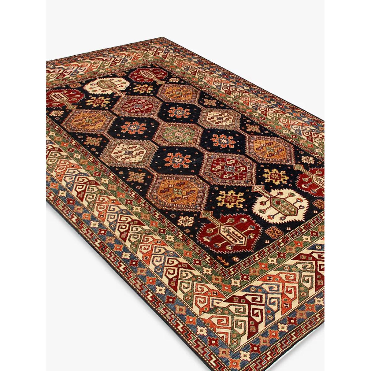 A selection of truly unique and totally individual traditional hand-knotted rugs, this range from Gooch Oriental showcases rugs created by different artisans across town and village locations across the world, including traditional Persian creations. Each piece is carefully selected by the Gooch Oriental team to ensure it's authenticity, quality and finish. Each one is knotted by hand, an intricate process using traditional hand knotting techniques. As such, no two pieces are the same, meaning you can add an authentic and unique piece of crafted design into your home, whilst supporting this heritage industry. The supreme Kazak design is mainly made by the Hazara Tribes of Afghanistan. The design and patterns of Kazak rugs are taken from old Caucasian rugs (Caucasian carpets are from the areas south, east and north of the mountain chain of the Caucasus, Russia). The wool yarns used are all hand spun and dyed using only natural dyes such as cochineal and indigo, which adds to their dramatic and vibrant appearance. Once dyed and hand knotted on a cotton warp base in Afghanistan the rugs are then transported over to Pakistan where they are expertly finished including washing and trimming. The method used to hand make a Kazak rug is called ChappatBaft or Flat woven. Kazak rug weavers are faithful in using traditional bold colour and design mainly with geometrical motifs including a mixture of diamond and circle shapes as well as representations of animals, people and nature. In 1sqm of a Supreme Kazak rug there would be around 160000 + knots giving a fine-density pile. About your new rug We recommend John Lewis & Partners Rug Hold Underlay. It prevents your rug from moving underfoot and protects against colour transfer to the floor Natural fibres may shed. This will reduce over time, and shouldn't affect your rug's lifespan or performance When vacuuming your rug, use suction only. Rotating brushes may damage the fibres Blot any spills with a clean, dry cloth. Do not rub or use harsh detergents. Textile backed