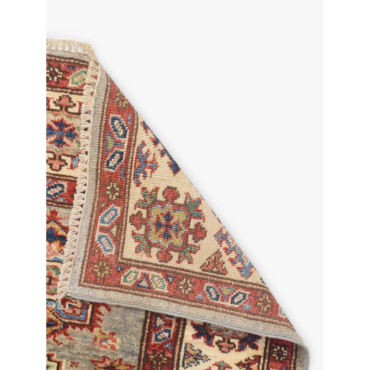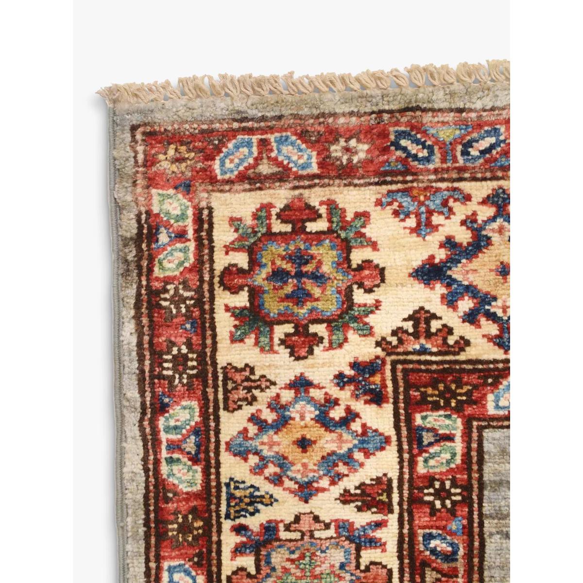 A selection of truly unique and totally individual traditional hand-knotted rugs, this range from Gooch Oriental showcases rugs created by different artisans across town and village locations across the world, including traditional Persian creations. Each piece is carefully selected by the Gooch Oriental team to ensure it's authenticity, quality and finish. Each one is knotted by hand, an intricate process using traditional hand knotting techniques. As such, no two pieces are the same, meaning you can add an authentic and unique piece of crafted design into your home, whilst supporting this heritage industry. The supreme Kazak design is mainly made by the Hazara Tribes of Afghanistan. The design and patterns of Kazak rugs are taken from old Caucasian rugs (Caucasian carpets are from the areas south, east and north of the mountain chain of the Caucasus, Russia). The wool yarns used are all hand spun and dyed using only natural dyes such as cochineal and indigo, which adds to their dramatic and vibrant appearance. Once dyed and hand knotted on a cotton warp base in Afghanistan the rugs are then transported over to Pakistan where they are expertly finished including washing and trimming. The method used to hand make a Kazak rug is called ChappatBaft or Flat woven. Kazak rug weavers are faithful in using traditional bold colour and design mainly with geometrical motifs including a mixture of diamond and circle shapes as well as representations of animals, people and nature. In 1sqm of a Supreme Kazak rug there would be around 160000 + knots giving a fine-density pile. The benefits of a wool rug Warm and durable, wool feels beautifully soft underfoot and is long-lasting Naturally flame-retardant and odour resistant Water repellent so easier to clean Naturally biodegradable, wool is part of the circular economy and contains no micro plastics About your new rug We recommend John Lewis & Partners Rug Hold Underlay. It prevents your rug from moving underfoot and protects against colour transfer to the floor As this rug is made using natural fibres, shedding is to be expected. This will reduce over time, and should not have an impact on the lifespan or performance of your rug. When you first get your rug, please use the brush attachment on your vacuum cleaner whilst the shedding dies down. After that, when vacuuming your rug, use suction only. Rotating brushes may damage the fibres. When vacuuming your rug, use suction only. Rotating brushes may damage the fibres Blot any spills with a clean, dry cloth. Do not rub or use harsh detergents. Textile backed Attend to spillages immediately and blot with a clean, dry cloth to prevent staining. Dilute a small amount of appropriate carpet shampoo in water. Dampen a colourfast cloth in the diluted shampoo solution and dab the rug, lightly agitating, moving in the direction of the pile. Treat the whole rug and not just the affected area. To restore the appearance of the affected area, use a soft bristled brush to gently comb in the direction of the pile. Allow the rug to thoroughly dry.