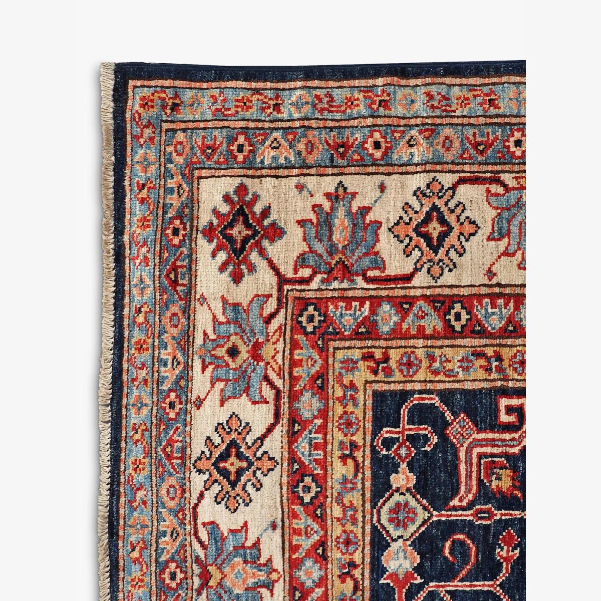 A selection of truly unique and totally individual traditional hand-knotted rugs, this range from Gooch Oriental showcases rugs created by different artisans across town and village locations across the world, including traditional Persian creations. Each piece is carefully selected by the Gooch Oriental team to ensure it's authenticity, quality and finish. Each one is knotted by hand, an intricate process using traditional hand knotting techniques. As such, no two pieces are the same, meaning you can add an authentic and unique piece of crafted design into your home, whilst supporting this heritage industry. The supreme Kazak design is mainly made by the Hazara Tribes of Afghanistan. The design and patterns of Kazak rugs are taken from old Caucasian rugs (Caucasian carpets are from the areas south, east and north of the mountain chain of the Caucasus, Russia). The wool yarns used are all hand spun and dyed using only natural dyes such as cochineal and indigo, which adds to their dramatic and vibrant appearance. Once dyed and hand knotted on a cotton warp base in Afghanistan the rugs are then transported over to Pakistan where they are expertly finished including washing and trimming. The method used to hand make a Kazak rug is called ChappatBaft or Flat woven. Kazak rug weavers are faithful in using traditional bold colour and design mainly with geometrical motifs including a mixture of diamond and circle shapes as well as representations of animals, people and nature. In 1sqm of a Supreme Kazak rug there would be around 160000 + knots giving a fine-density pile. The benefits of a wool rug Warm and durable, wool feels beautifully soft underfoot and is long-lasting Naturally flame-retardant and odour resistant Water repellent so easier to clean Naturally biodegradable, wool is part of the circular economy and contains no micro plastics About your new rug We recommend John Lewis & Partners Rug Hold Underlay. It prevents your rug from moving underfoot and protects against colour transfer to the floor As this rug is made using natural fibres, shedding is to be expected. This will reduce over time, and should not have an impact on the lifespan or performance of your rug. When you first get your rug, please use the brush attachment on your vacuum cleaner whilst the shedding dies down. After that, when vacuuming your rug, use suction only. Rotating brushes may damage the fibres. When vacuuming your rug, use suction only. Rotating brushes may damage the fibres Blot any spills with a clean, dry cloth. Do not rub or use harsh detergents. Textile backed Attend to spillages immediately and blot with a clean, dry cloth to prevent staining. Dilute a small amount of appropriate carpet shampoo in water. Dampen a colourfast cloth in the diluted shampoo solution and dab the rug, lightly agitating, moving in the direction of the pile. Treat the whole rug and not just the affected area. To restore the appearance of the affected area, use a soft bristled brush to gently comb in the direction of the pile. Allow the rug to thoroughly dry.