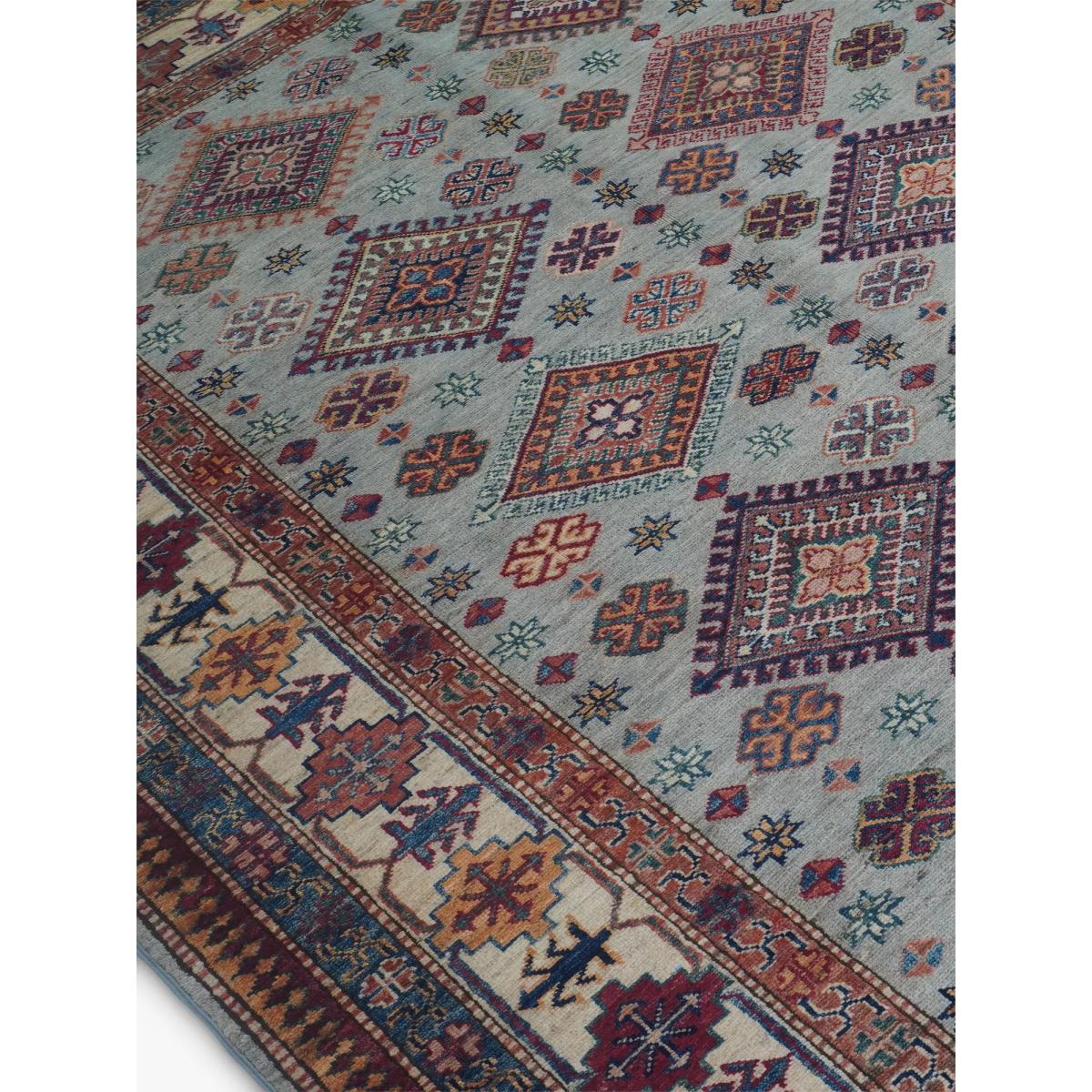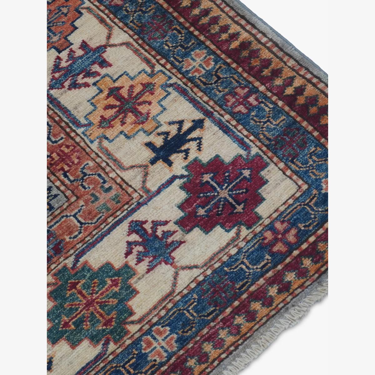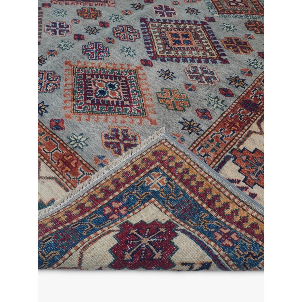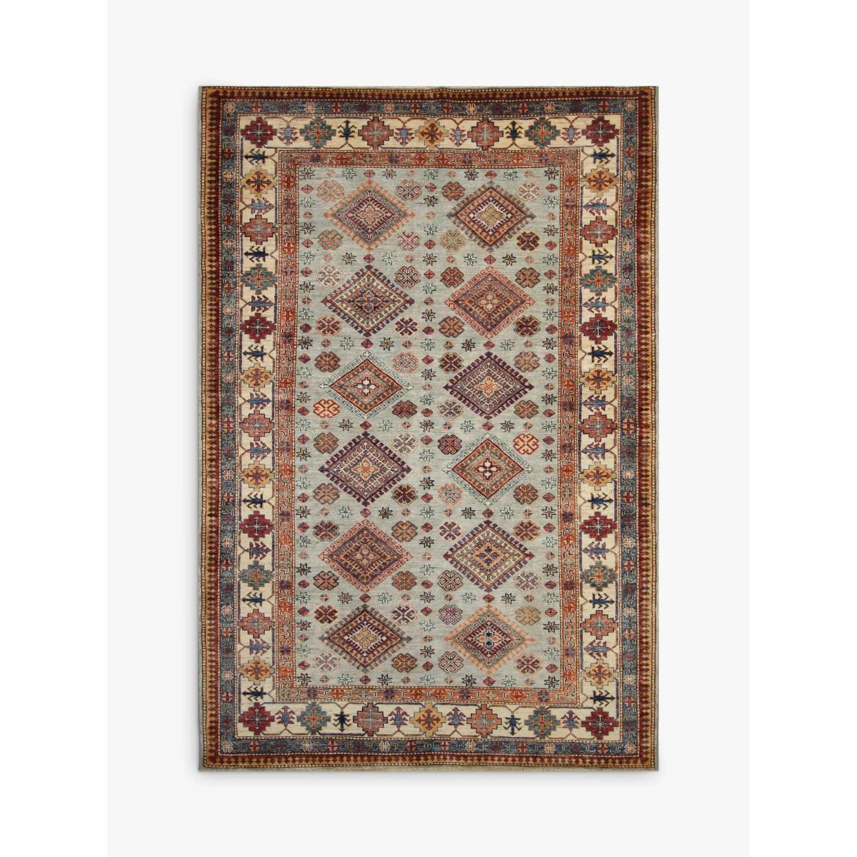 A selection of truly unique and totally individual traditional hand-knotted rugs, this range from Gooch Oriental showcases rugs created by different artisans across town and village locations across the world, including traditional Persian creations. Each piece is carefully selected by the Gooch Oriental team to ensure it's authenticity, quality and finish. Each one is knotted by hand, an intricate process using traditional hand knotting techniques. As such, no two pieces are the same, meaning you can add an authentic and unique piece of crafted design into your home, whilst supporting this heritage industry. The supreme Kazak design is mainly made by the Hazara Tribes of Afghanistan. The design and patterns of Kazak rugs are taken from old Caucasian rugs (Caucasian carpets are from the areas south, east and north of the mountain chain of the Caucasus, Russia). The wool yarns used are all hand spun and dyed using only natural dyes such as cochineal and indigo, which adds to their dramatic and vibrant appearance. Once dyed and hand knotted on a cotton warp base in Afghanistan the rugs are then transported over to Pakistan where they are expertly finished including washing and trimming. The method used to hand make a Kazak rug is called ChappatBaft or Flat woven. Kazak rug weavers are faithful in using traditional bold colour and design mainly with geometrical motifs including a mixture of diamond and circle shapes as well as representations of animals, people and nature. In 1sqm of a Supreme Kazak rug there would be around 160000 + knots giving a fine-density pile. The benefits of a wool rug Warm and durable, wool feels beautifully soft underfoot and is long-lasting Naturally flame-retardant and odour resistant Water repellent so easier to clean Naturally biodegradable, wool is part of the circular economy and contains no micro plastics About your new rug We recommend John Lewis & Partners Rug Hold Underlay. It prevents your rug from moving underfoot and protects against colour transfer to the floor As this rug is made using natural fibres, shedding is to be expected. This will reduce over time, and should not have an impact on the lifespan or performance of your rug. When you first get your rug, please use the brush attachment on your vacuum cleaner whilst the shedding dies down. After that, when vacuuming your rug, use suction only. Rotating brushes may damage the fibres. When vacuuming your rug, use suction only. Rotating brushes may damage the fibres Blot any spills with a clean, dry cloth. Do not rub or use harsh detergents. Textile backed Attend to spillages immediately and blot with a clean, dry cloth to prevent staining. Dilute a small amount of appropriate carpet shampoo in water. Dampen a colourfast cloth in the diluted shampoo solution and dab the rug, lightly agitating, moving in the direction of the pile. Treat the whole rug and not just the affected area. To restore the appearance of the affected area, use a soft bristled brush to gently comb in the direction of the pile. Allow the rug to thoroughly dry.