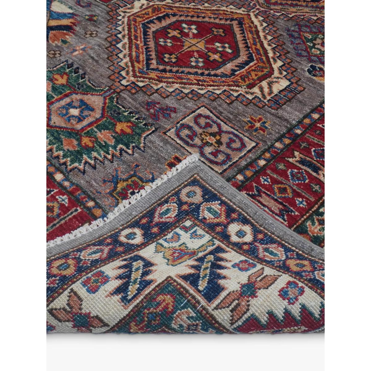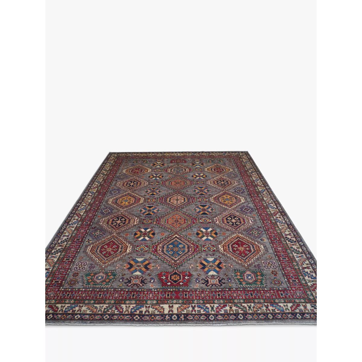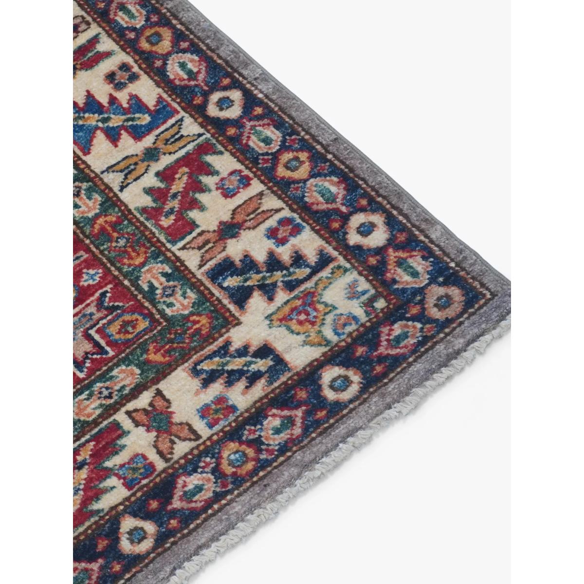 A selection of truly unique and totally individual traditional hand-knotted rugs, this range from Gooch Oriental showcases rugs created by different artisans across town and village locations across the world, including traditional Persian creations. Each piece is carefully selected by the Gooch Oriental team to ensure it's authenticity, quality and finish. Each one is knotted by hand, an intricate process using traditional hand knotting techniques. As such, no two pieces are the same, meaning you can add an authentic and unique piece of crafted design into your home, whilst supporting this heritage industry. The supreme Kazak design is mainly made by the Hazara Tribes of Afghanistan. The design and patterns of Kazak rugs are taken from old Caucasian rugs (Caucasian carpets are from the areas south, east and north of the mountain chain of the Caucasus, Russia). The wool yarns used are all hand spun and dyed using only natural dyes such as cochineal and indigo, which adds to their dramatic and vibrant appearance. Once dyed and hand knotted on a cotton warp base in Afghanistan the rugs are then transported over to Pakistan where they are expertly finished including washing and trimming. The method used to hand make a Kazak rug is called ChappatBaft or Flat woven. Kazak rug weavers are faithful in using traditional bold colour and design mainly with geometrical motifs including a mixture of diamond and circle shapes as well as representations of animals, people and nature. In 1sqm of a Supreme Kazak rug there would be around 160000 + knots giving a fine-density pile. The benefits of a wool rug Warm and durable, wool feels beautifully soft underfoot and is long-lasting Naturally flame-retardant and odour resistant Water repellent so easier to clean Naturally biodegradable, wool is part of the circular economy and contains no micro plastics About your new rug We recommend John Lewis & Partners Rug Hold Underlay. It prevents your rug from moving underfoot and protects against colour transfer to the floor As this rug is made using natural fibres, shedding is to be expected. This will reduce over time, and should not have an impact on the lifespan or performance of your rug. When you first get your rug, please use the brush attachment on your vacuum cleaner whilst the shedding dies down. After that, when vacuuming your rug, use suction only. Rotating brushes may damage the fibres. When vacuuming your rug, use suction only. Rotating brushes may damage the fibres Blot any spills with a clean, dry cloth. Do not rub or use harsh detergents. Textile backed Attend to spillages immediately and blot with a clean, dry cloth to prevent staining. Dilute a small amount of appropriate carpet shampoo in water. Dampen a colourfast cloth in the diluted shampoo solution and dab the rug, lightly agitating, moving in the direction of the pile. Treat the whole rug and not just the affected area. To restore the appearance of the affected area, use a soft bristled brush to gently comb in the direction of the pile. Allow the rug to thoroughly dry.