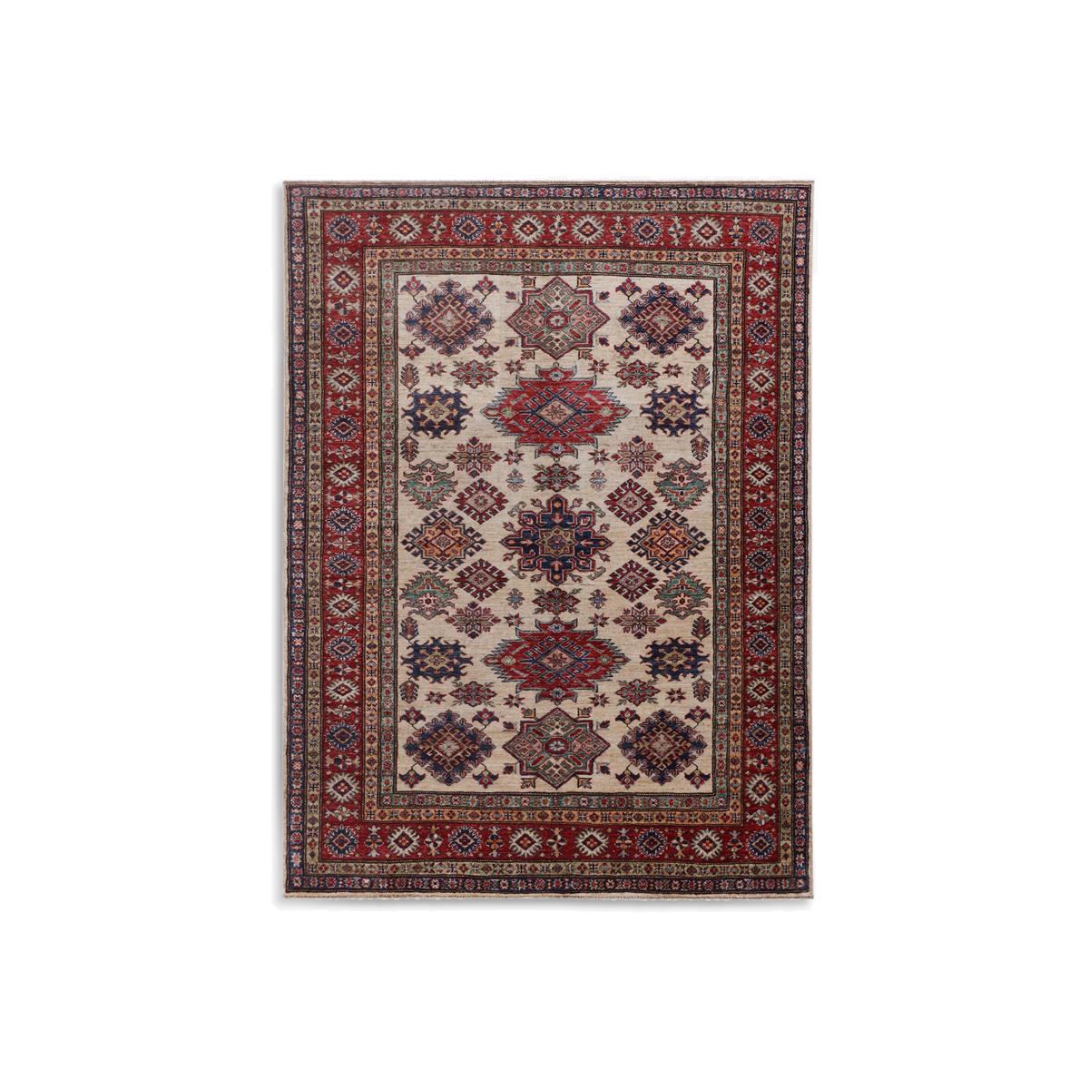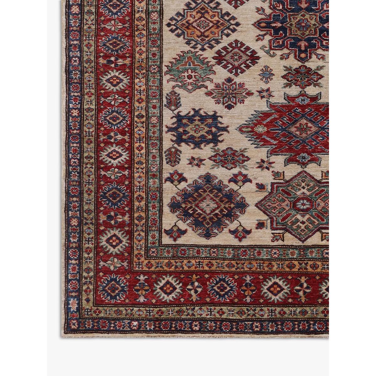 A selection of truly unique and totally individual traditional hand-knotted rugs, this range from Gooch Oriental showcases rugs created by different artisans across town and village locations across the world, including traditional Persian creations. Each piece is carefully selected by the Gooch Oriental team to ensure it's authenticity, quality and finish. Each one is knotted by hand, an intricate process using traditional hand knotting techniques. As such, no two pieces are the same, meaning you can add an authentic and unique piece of crafted design into your home, whilst supporting this heritage industry. The supreme Kazak design is mainly made by the Hazara Tribes of Afghanistan. The design and patterns of Kazak rugs are taken from old Caucasian rugs (Caucasian carpets are from the areas south, east and north of the mountain chain of the Caucasus, Russia). The wool yarns used are all hand spun and dyed using only natural dyes such as cochineal and indigo, which adds to their dramatic and vibrant appearance. Once dyed and hand knotted on a cotton warp base in Afghanistan the rugs are then transported over to Pakistan where they are expertly finished including washing and trimming. The method used to hand make a Kazak rug is called ChappatBaft or Flat woven. Kazak rug weavers are faithful in using traditional bold colour and design mainly with geometrical motifs including a mixture of diamond and circle shapes as well as representations of animals, people and nature. In 1sqm of a Supreme Kazak rug there would be around 160000 + knots giving a fine-density pile. About your new rug We recommend John Lewis & Partners Rug Hold Underlay. It prevents your rug from moving underfoot and protects against colour transfer to the floor Natural fibres may shed. This will reduce over time, and shouldn't affect your rug's lifespan or performance When vacuuming your rug, use suction only. Rotating brushes may damage the fibres Blot any spills with a clean, dry cloth. Do not rub or use harsh detergents. Textile backed