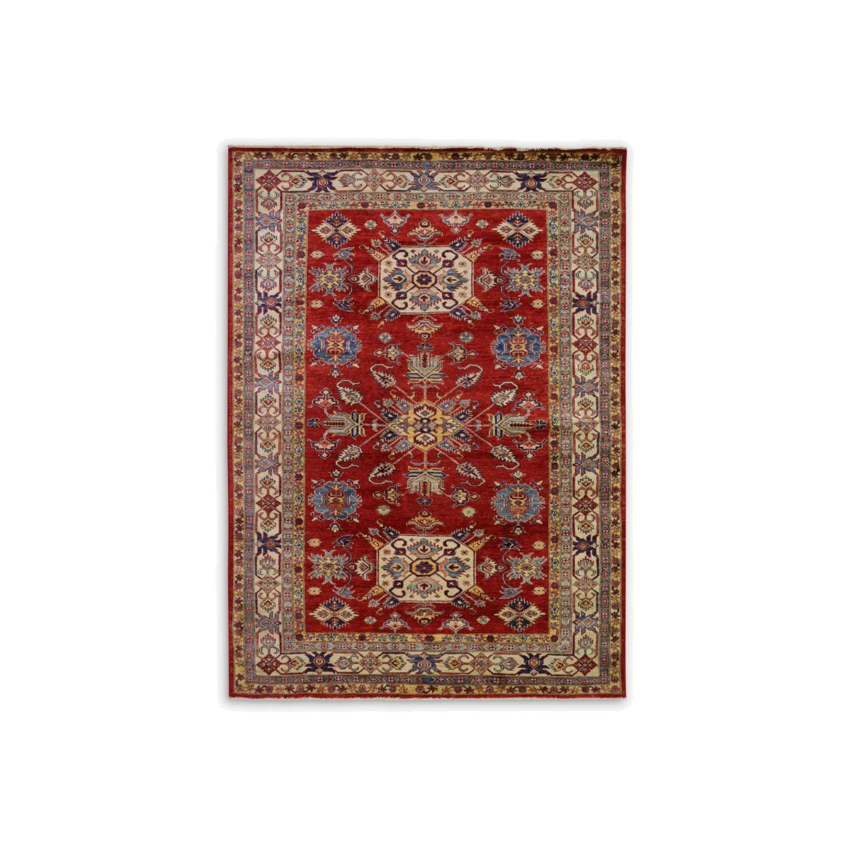 A selection of truly unique and totally individual traditional hand-knotted rugs, this range from Gooch Oriental showcases rugs created by different artisans across town and village locations across the world, including traditional Persian creations. Each piece is carefully selected by the Gooch Oriental team to ensure it's authenticity, quality and finish. Each one is knotted by hand, an intricate process using traditional hand knotting techniques. As such, no two pieces are the same, meaning you can add an authentic and unique piece of crafted design into your home, whilst supporting this heritage industry. The supreme Kazak design is mainly made by the Hazara Tribes of Afghanistan. The design and patterns of Kazak rugs are taken from old Caucasian rugs (Caucasian carpets are from the areas south, east and north of the mountain chain of the Caucasus, Russia). The wool yarns used are all hand spun and dyed using only natural dyes such as cochineal and indigo, which adds to their dramatic and vibrant appearance. Once dyed and hand knotted on a cotton warp base in Afghanistan the rugs are then transported over to Pakistan where they are expertly finished including washing and trimming. The method used to hand make a Kazak rug is called ‘’Chappat. Baft’’ or Flat woven. Kazak rug weavers are faithful in using traditional bold colour and design mainly with geometrical motifs including a mixture of diamond and circle shapes as well as representations of animals, people and nature. In 1sqm of a Supreme Kazak rug there would be around 160000 + knots giving a fine-density pile. About your new rug We recommend. It prevents your rug from moving underfoot and protects against colour transfer to the floor Natural fibres may shed. This will reduce over time, and shouldn’t affect your rug’s lifespan or performance When vacuuming your rug, use suction only. Rotating brushes may damage the fibres Blot any spills with a clean, dry cloth. Do not rub or use harsh detergents. Textile backed