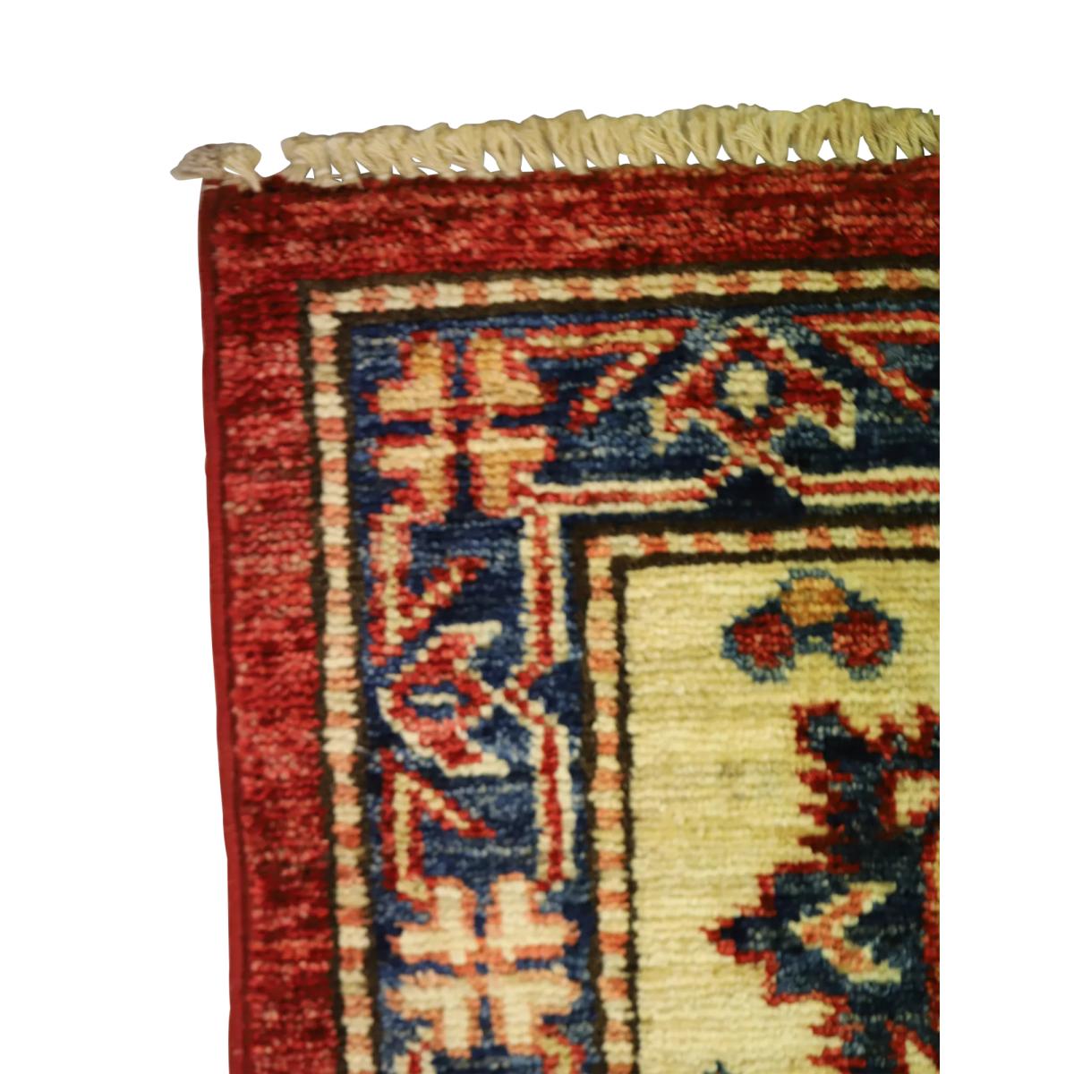 A selection of truly unique and totally individual traditional hand-knotted rugs, this range from Gooch Oriental showcases rugs created by different artisans across town and village locations across the world, including traditional Persian creations. Each piece is carefully selected by the Gooch Oriental team to ensure it's authenticity, quality and finish. Each one is knotted by hand, an intricate process using traditional hand knotting techniques. As such, no two pieces are the same, meaning you can add an authentic and unique piece of crafted design into your home, whilst supporting this heritage industry. The supreme Kazak design is mainly made by the Hazara Tribes of Afghanistan. The design and patterns of Kazak rugs are taken from old Caucasian rugs (Caucasian carpets are from the areas south, east and north of the mountain chain of the Caucasus, Russia). The wool yarns used are all hand spun and dyed using only natural dyes such as cochineal and indigo, which adds to their dramatic and vibrant appearance. Once dyed and hand knotted on a cotton warp base in Afghanistan the rugs are then transported over to Pakistan where they are expertly finished including washing and trimming. The method used to hand make a Kazak rug is called ChappatBaft or Flat woven. Kazak rug weavers are faithful in using traditional bold colour and design mainly with geometrical motifs including a mixture of diamond and circle shapes as well as representations of animals, people and nature. In 1sqm of a Supreme Kazak rug there would be around 160000 + knots giving a fine-density pile. The benefits of a wool rug Warm and durable, wool feels beautifully soft underfoot and is long-lasting Naturally flame-retardant and odour resistant Water repellent so easier to clean Naturally biodegradable, wool is part of the circular economy and contains no micro plastics About your new rug We recommend John Lewis & Partners Rug Hold Underlay. It prevents your rug from moving underfoot and protects against colour transfer to the floor As this rug is made using natural fibres, shedding is to be expected. This will reduce over time, and should not have an impact on the lifespan or performance of your rug. When you first get your rug, please use the brush attachment on your vacuum cleaner whilst the shedding dies down. After that, when vacuuming your rug, use suction only. Rotating brushes may damage the fibres. When vacuuming your rug, use suction only. Rotating brushes may damage the fibres Blot any spills with a clean, dry cloth. Do not rub or use harsh detergents. Textile backed Attend to spillages immediately and blot with a clean, dry cloth to prevent staining. Dilute a small amount of appropriate carpet shampoo in water. Dampen a colourfast cloth in the diluted shampoo solution and dab the rug, lightly agitating, moving in the direction of the pile. Treat the whole rug and not just the affected area. To restore the appearance of the affected area, use a soft bristled brush to gently comb in the direction of the pile. Allow the rug to thoroughly dry.