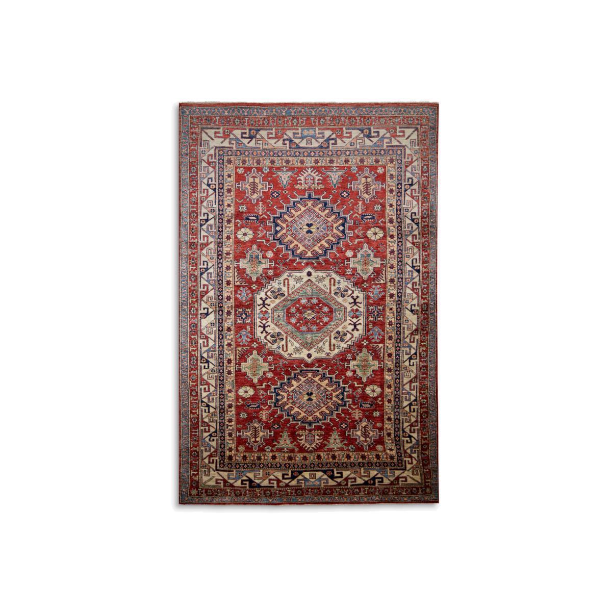 A selection of truly unique and totally individual traditional hand-knotted rugs, this range from Gooch Oriental showcases rugs created by different artisans across town and village locations across the world, including traditional Persian creations. Each piece is carefully selected by the Gooch Oriental team to ensure it's authenticity, quality and finish. Each one is knotted by hand, an intricate process using traditional hand knotting techniques. As such, no two pieces are the same, meaning you can add an authentic and unique piece of crafted design into your home, whilst supporting this heritage industry. The supreme Kazak design is mainly made by the Hazara Tribes of Afghanistan. The design and patterns of Kazak rugs are taken from old Caucasian rugs (Caucasian carpets are from the areas south, east and north of the mountain chain of the Caucasus, Russia). The wool yarns used are all hand spun and dyed using only natural dyes such as cochineal and indigo, which adds to their dramatic and vibrant appearance. Once dyed and hand knotted on a cotton warp base in Afghanistan the rugs are then transported over to Pakistan where they are expertly finished including washing and trimming. The method used to hand make a Kazak rug is called ‘’Chappat. Baft’’ or Flat woven. Kazak rug weavers are faithful in using traditional bold colour and design mainly with geometrical motifs including a mixture of diamond and circle shapes as well as representations of animals, people and nature. In 1sqm of a Supreme Kazak rug there would be around 160000 + knots giving a fine-density pile. About your new rug We recommend. It prevents your rug from moving underfoot and protects against colour transfer to the floor Natural fibres may shed. This will reduce over time, and shouldn’t affect your rug’s lifespan or performance When vacuuming your rug, use suction only. Rotating brushes may damage the fibres Blot any spills with a clean, dry cloth. Do not rub or use harsh detergents. Textile backed