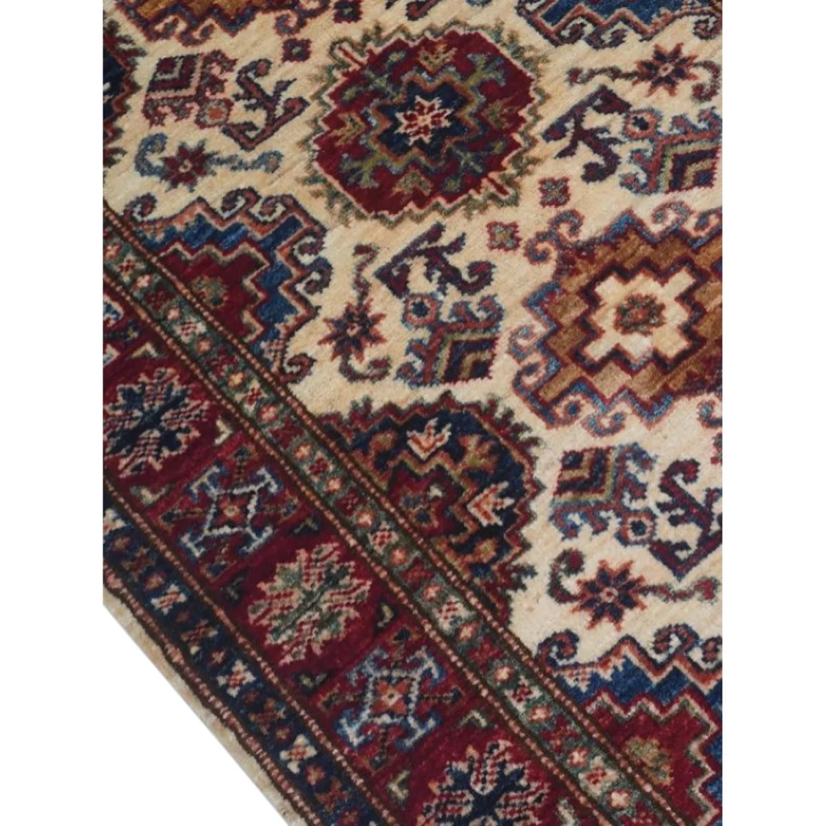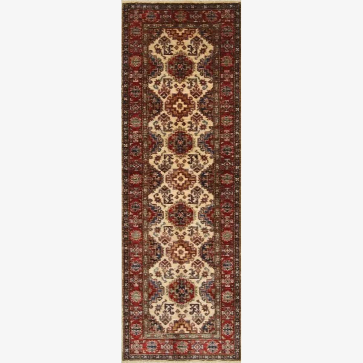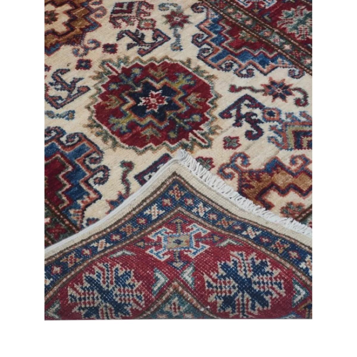 A selection of truly unique and totally individual traditional hand-knotted rugs, this range from Gooch Oriental showcases rugs created by different artisans across town and village locations across the world, including traditional Persian creations. Each piece is carefully selected by the Gooch Oriental team to ensure it's authenticity, quality and finish. Each one is knotted by hand, an intricate process using traditional hand knotting techniques. As such, no two pieces are the same, meaning you can add an authentic and unique piece of crafted design into your home, whilst supporting this heritage industry. The supreme Kazak design is mainly made by the Hazara Tribes of Afghanistan. The design and patterns of Kazak rugs are taken from old Caucasian rugs (Caucasian carpets are from the areas south, east and north of the mountain chain of the Caucasus, Russia). The wool yarns used are all hand spun and dyed using only natural dyes such as cochineal and indigo, which adds to their dramatic and vibrant appearance. Once dyed and hand knotted on a cotton warp base in Afghanistan the rugs are then transported over to Pakistan where they are expertly finished including washing and trimming. The method used to hand make a Kazak rug is called ChappatBaft or Flat woven. Kazak rug weavers are faithful in using traditional bold colour and design mainly with geometrical motifs including a mixture of diamond and circle shapes as well as representations of animals, people and nature. In 1sqm of a Supreme Kazak rug there would be around 160000 + knots giving a fine-density pile. The benefits of a wool rug Warm and durable, wool feels beautifully soft underfoot and is long-lasting Naturally flame-retardant and odour resistant Water repellent so easier to clean Naturally biodegradable, wool is part of the circular economy and contains no micro plastics About your new rug We recommend John Lewis & Partners Rug Hold Underlay. It prevents your rug from moving underfoot and protects against colour transfer to the floor As this rug is made using natural fibres, shedding is to be expected. This will reduce over time, and should not have an impact on the lifespan or performance of your rug. When you first get your rug, please use the brush attachment on your vacuum cleaner whilst the shedding dies down. After that, when vacuuming your rug, use suction only. Rotating brushes may damage the fibres. When vacuuming your rug, use suction only. Rotating brushes may damage the fibres Blot any spills with a clean, dry cloth. Do not rub or use harsh detergents. Textile backed Attend to spillages immediately and blot with a clean, dry cloth to prevent staining. Dilute a small amount of appropriate carpet shampoo in water. Dampen a colourfast cloth in the diluted shampoo solution and dab the rug, lightly agitating, moving in the direction of the pile. Treat the whole rug and not just the affected area. To restore the appearance of the affected area, use a soft bristled brush to gently comb in the direction of the pile. Allow the rug to thoroughly dry.
