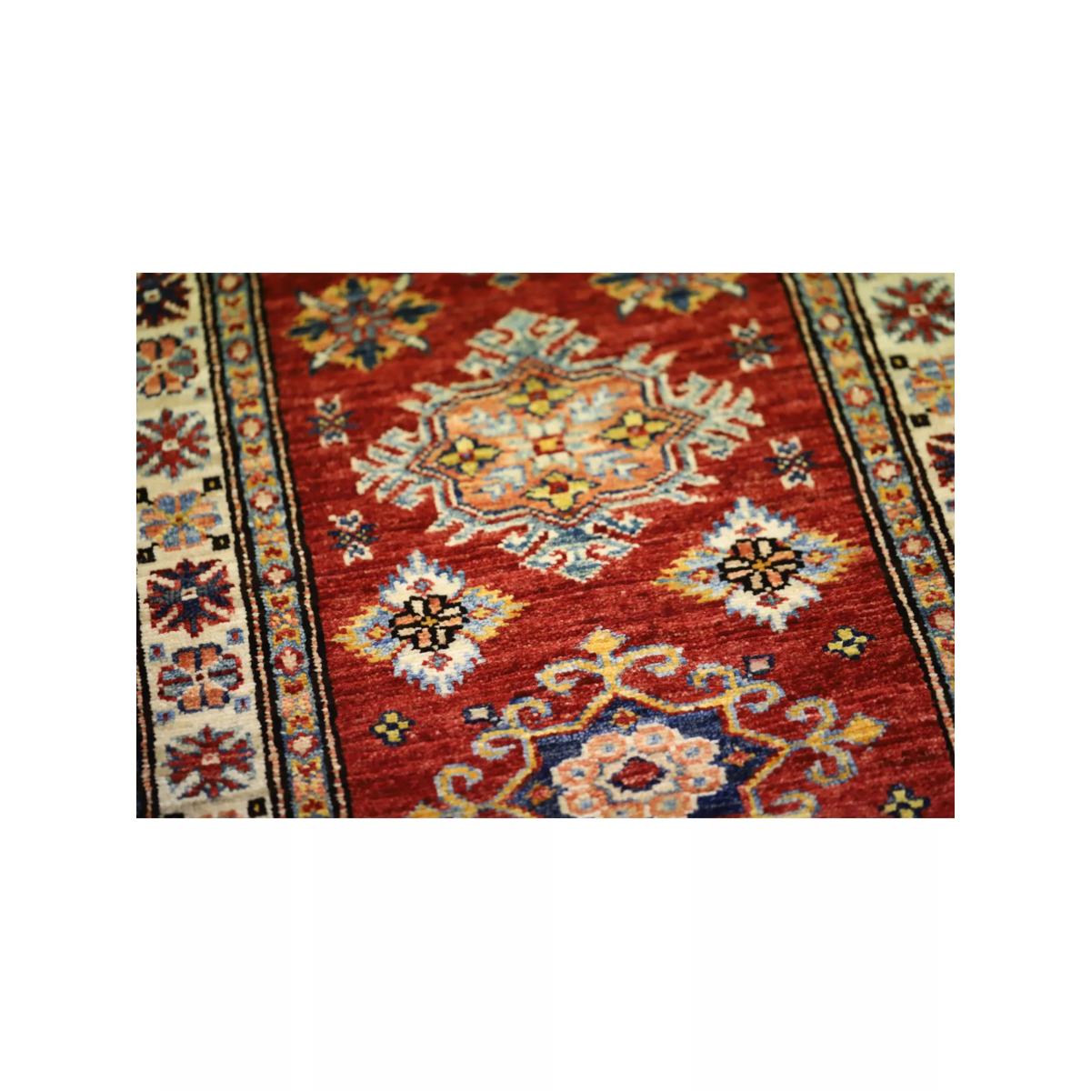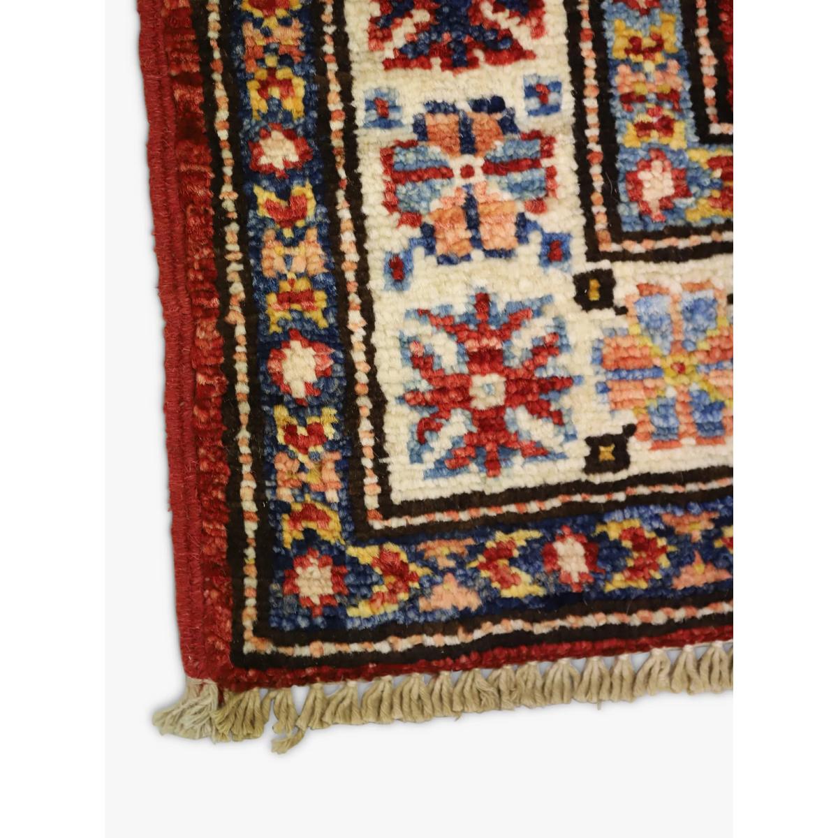 A selection of truly unique and totally individual traditional hand-knotted rugs, this range from Gooch Oriental showcases rugs created by different artisans across town and village locations across the world, including traditional Persian creations. Each piece is carefully selected by the Gooch Oriental team to ensure it's authenticity, quality and finish. Each one is knotted by hand, an intricate process using traditional hand knotting techniques. As such, no two pieces are the same, meaning you can add an authentic and unique piece of crafted design into your home, whilst supporting this heritage industry. The supreme Kazak design is mainly made by the Hazara Tribes of Afghanistan. The design and patterns of Kazak rugs are taken from old Caucasian rugs (Caucasian carpets are from the areas south, east and north of the mountain chain of the Caucasus, Russia). The wool yarns used are all hand spun and dyed using only natural dyes such as cochineal and indigo, which adds to their dramatic and vibrant appearance. Once dyed and hand knotted on a cotton warp base in Afghanistan the rugs are then transported over to Pakistan where they are expertly finished including washing and trimming. The method used to hand make a Kazak rug is called ChappatBaft or Flat woven. Kazak rug weavers are faithful in using traditional bold colour and design mainly with geometrical motifs including a mixture of diamond and circle shapes as well as representations of animals, people and nature. In 1sqm of a Supreme Kazak rug there would be around 160000 + knots giving a fine-density pile. The benefits of a wool rug Warm and durable, wool feels beautifully soft underfoot and is long-lasting Naturally flame-retardant and odour resistant Water repellent so easier to clean Naturally biodegradable, wool is part of the circular economy and contains no micro plastics This rug has been knotted by hand, the oldest and most individual way a rug can be made. This involves an intricate process of weaving by hand on a loom where yarns are tied one at a time, giving the rug a durable construction. About your new rug We recommend John Lewis & Partners Rug Hold Underlay. It prevents your rug from moving underfoot and protects against colour transfer to the floor As this rug is made using natural fibres, shedding is to be expected. This will reduce over time, and should not have an impact on the lifespan or performance of your rug. When you first get your rug, please use the brush attachment on your vacuum cleaner whilst the shedding dies down. After that, when vacuuming your rug, use suction only. Rotating brushes may damage the fibres. When vacuuming your rug, use suction only. Rotating brushes may damage the fibres Blot any spills with a clean, dry cloth. Do not rub or use harsh detergents. Textile backed Attend to spillages immediately and blot with a clean, dry cloth to prevent staining. Dilute a small amount of appropriate carpet shampoo in water. Dampen a colourfast cloth in the diluted shampoo solution and dab the rug, lightly agitating, moving in the direction of the pile. Treat the whole rug and not just the affected area. To restore the appearance of the affected area, use a soft bristled brush to gently comb in the direction of the pile. Allow the rug to thoroughly dry.