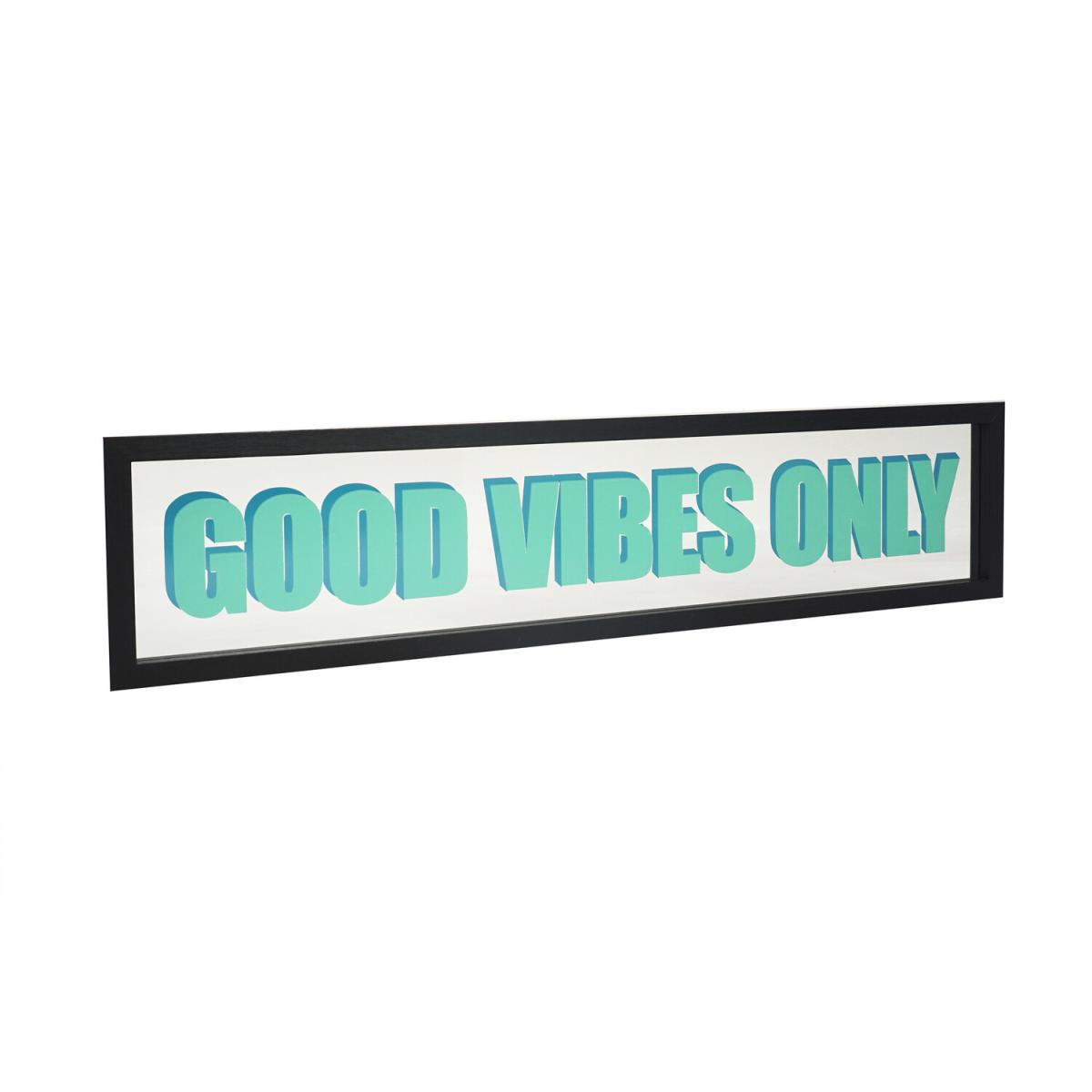 The Good Vibes Only Bright Glass Plaque is a bold and uplifting piece of art for any home. On the glass base, the phrase 'Good Vibes Only' is printed in blue, with a black frame to help it stand out in your home. It's ideal for the living room, hallway, or bedroom and is quick and easy to hang via the hooks on the back.