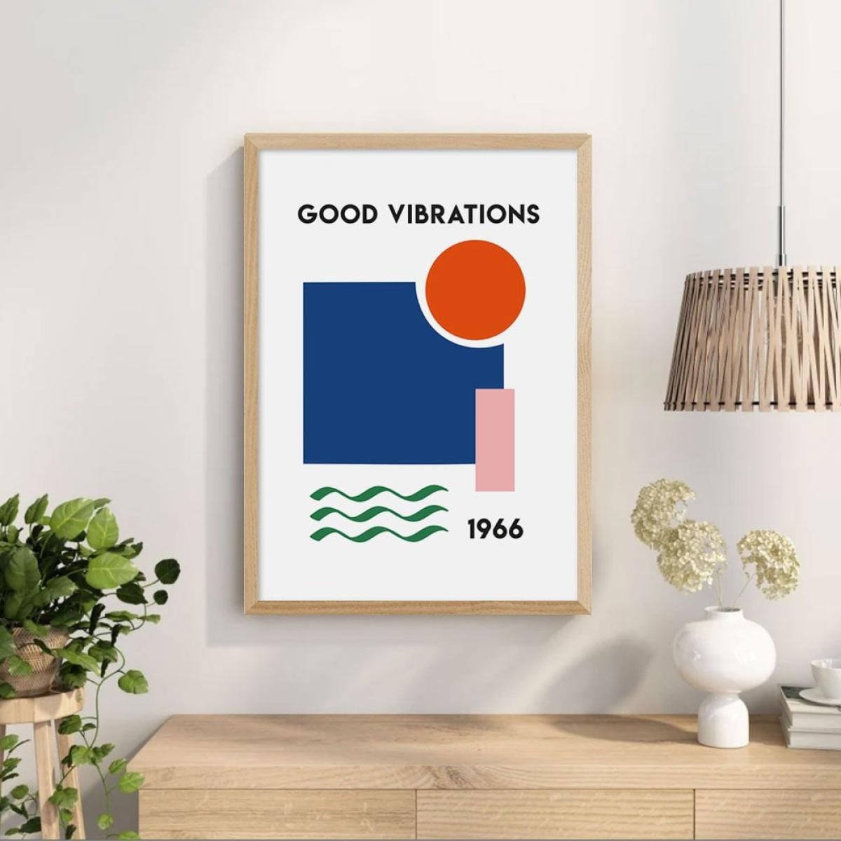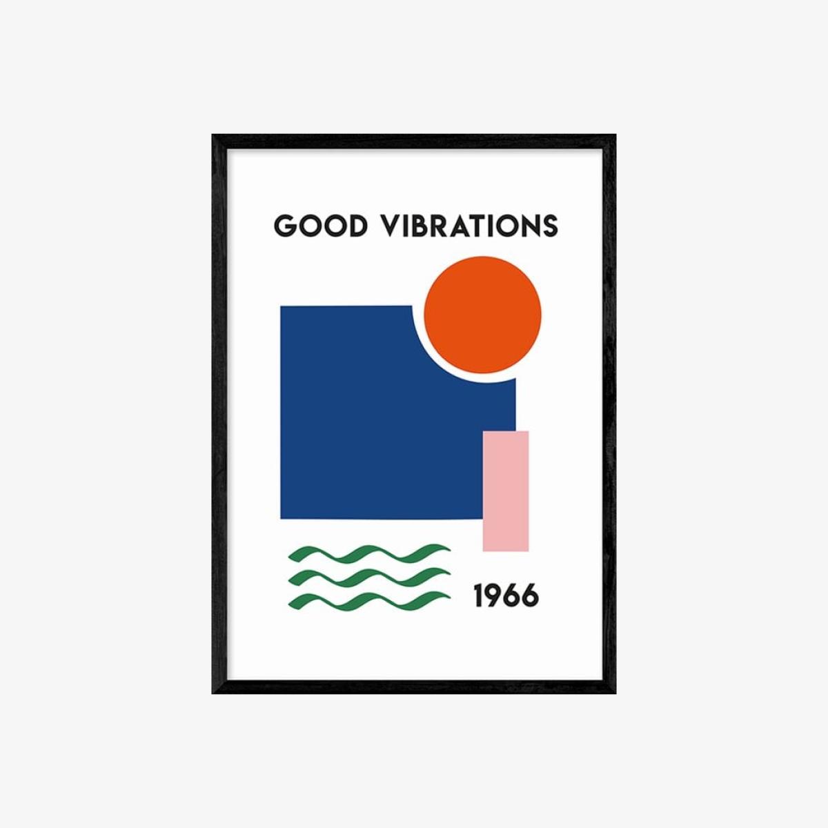 Designed with the modern home in mind, Good Vibrations has vibrant colours that add life and zest to any space. Its simple geometric shapes and bold colours make for an easy way to bring a calm vibe while remaining playful to add personality to your room. Only giclée printing processes are used for this print resulting in the highest quality museum-level colours and sharpness. Choose between a number of different coloured frames and three sizes for the perfect print for your space.