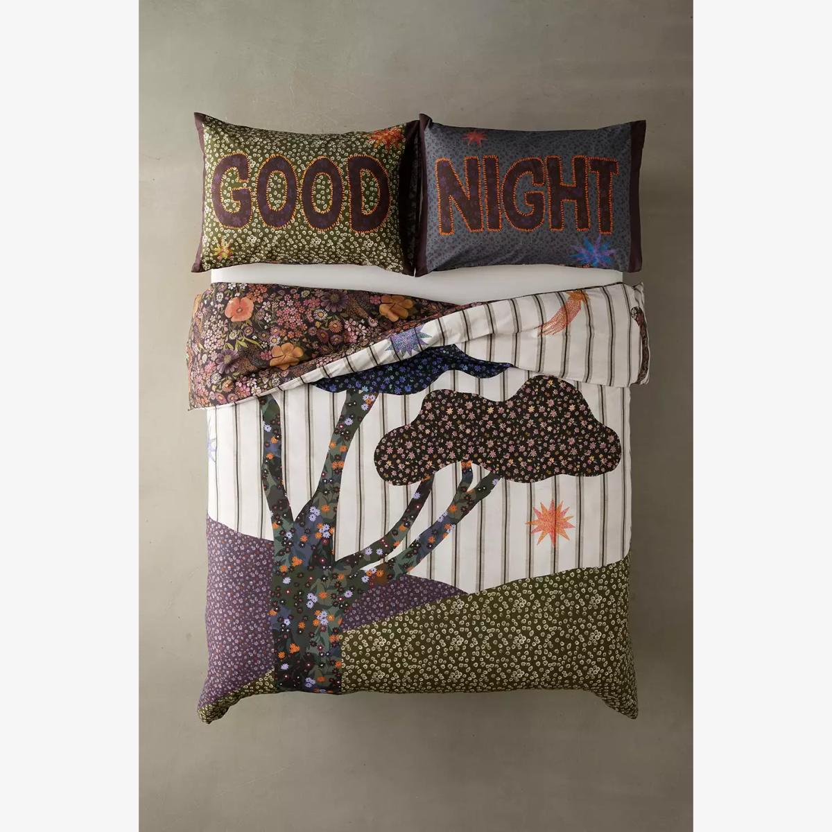 Super soft cotton bedding complete with a landscape design on a tonal striped background. We’ve reduced our cardboard and plastic packaging by wrapping this bedding set in a matching, reusable fabric bag. **About Better Cotton** \- By choosing our cotton products, you’re supporting our investment in Better Cotton’s mission \- This product is sourced via a system of mass balance and therefore may not contain Better Cotton \- Bettercotton.org/massbalance **Content + Care** \- 100% Cotton \- Machine wash **Size** \- Double (includes 2 pillowcases): 200cm (W) x 200cm (H) \- Pillowcase: 75cm x 50cm