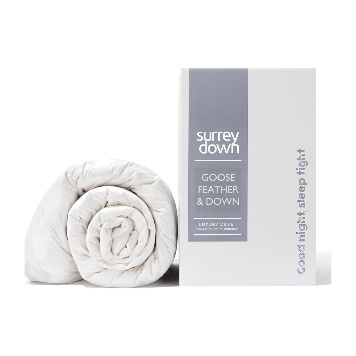 The Surrey Down White Goose Feather and Down duvet with 85% goose feather and 15% goose down fillings, will provide extra class to whichever size bed you wish and the cotton cambric cover enhances comfort. All Surrey Down products are NOMITE certified. This is issued by the EDFA and means that the fabric is so tightly woven that house dust mites cannot penetrate the fabric, making them suitable for sufferers of house dust mite allergies. All products also conform to the Oeko-Tex 100 Class 1 standard. This gives you the assurance that there are no harmful chemicals or substances in Surrey Down duvets and pillows. Class 1 certification also means that they are suitable for babies and children.