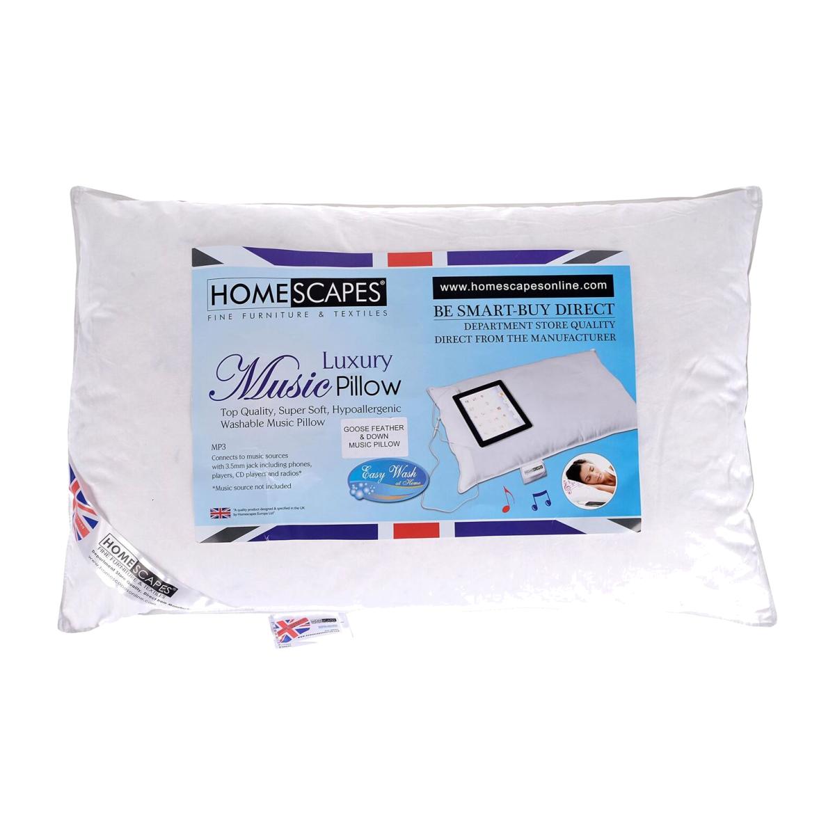 Homescapes are well-known manufacturer and brand of top-quality pillows, duvets and mattress toppers. They have been constantly requested by customers to provide a good music pillow. Music pillows available in the market were neither comfortable to sleep on nor washable and produced with a low specification of fabric and fillings. Another problem was that all these pillows were not graded for their firmness, so customers were not able to choose a suitable pillow. So Homescapes has come up with a solution and designed and manufactured washable music pillows in soft and medium firm ratings. Homescapes Music pillows provide total comfort and are fully washable they are also very healthy pillows.