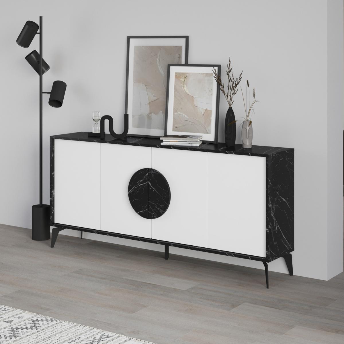 I’m a fan of this Gora sideboard for its clean, understated silhouette and the striking black marble-effect handle that gives a nod to contemporary style without shouting for attention. At 180 cm wide, it’s ideal for a spacious hallway or behind a sofa in an open-plan living area, offering discreet storage for tableware, magazines or media remotes. It suits modern, Scandi-inspired or monochrome interiors especially well. To style it, keep the top surface uncluttered - perhaps a single statement lamp at one end, a low vase of foliage in the middle and a small stack of coffee-table books at the other. A pair of framed prints leaning against the wall adds height and personality, while a neutral wool runner or a couple of woven baskets underneath can soften the look and introduce a touch of texture.