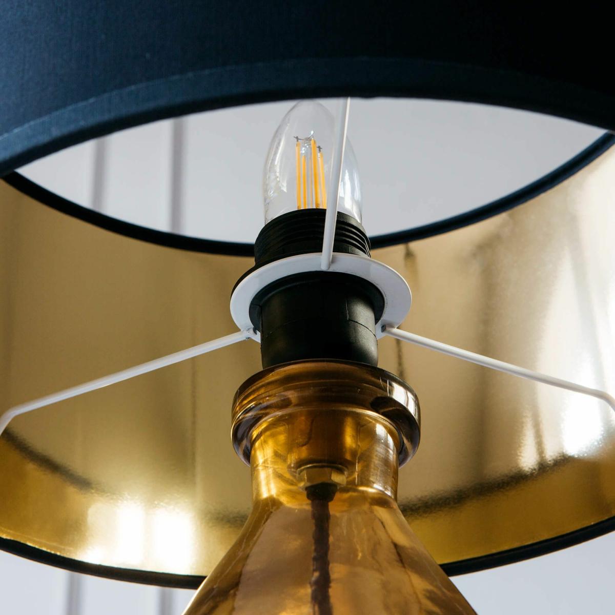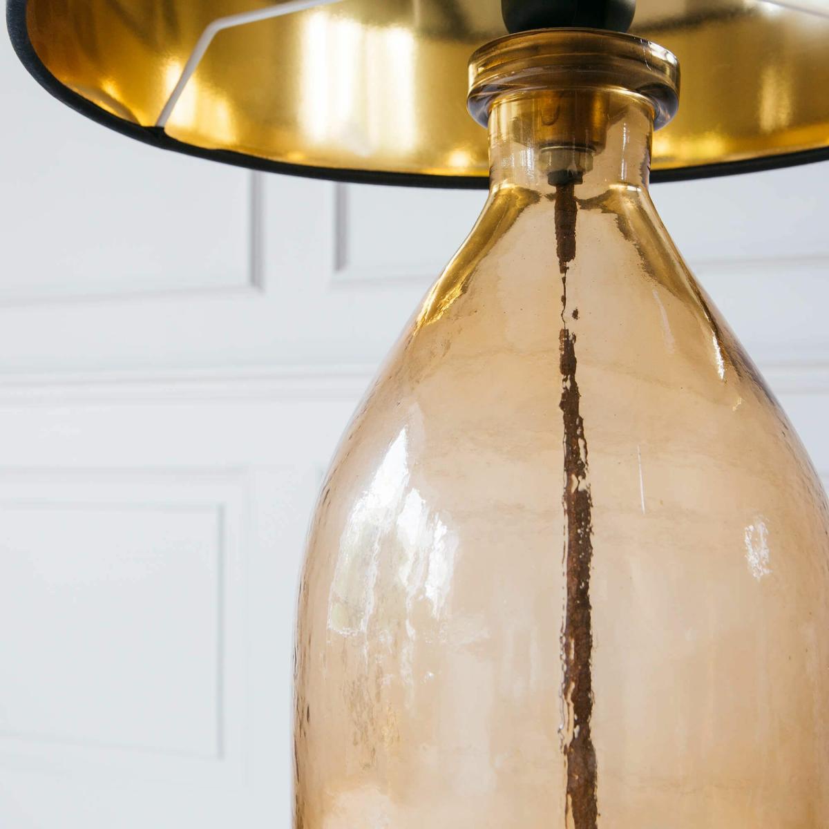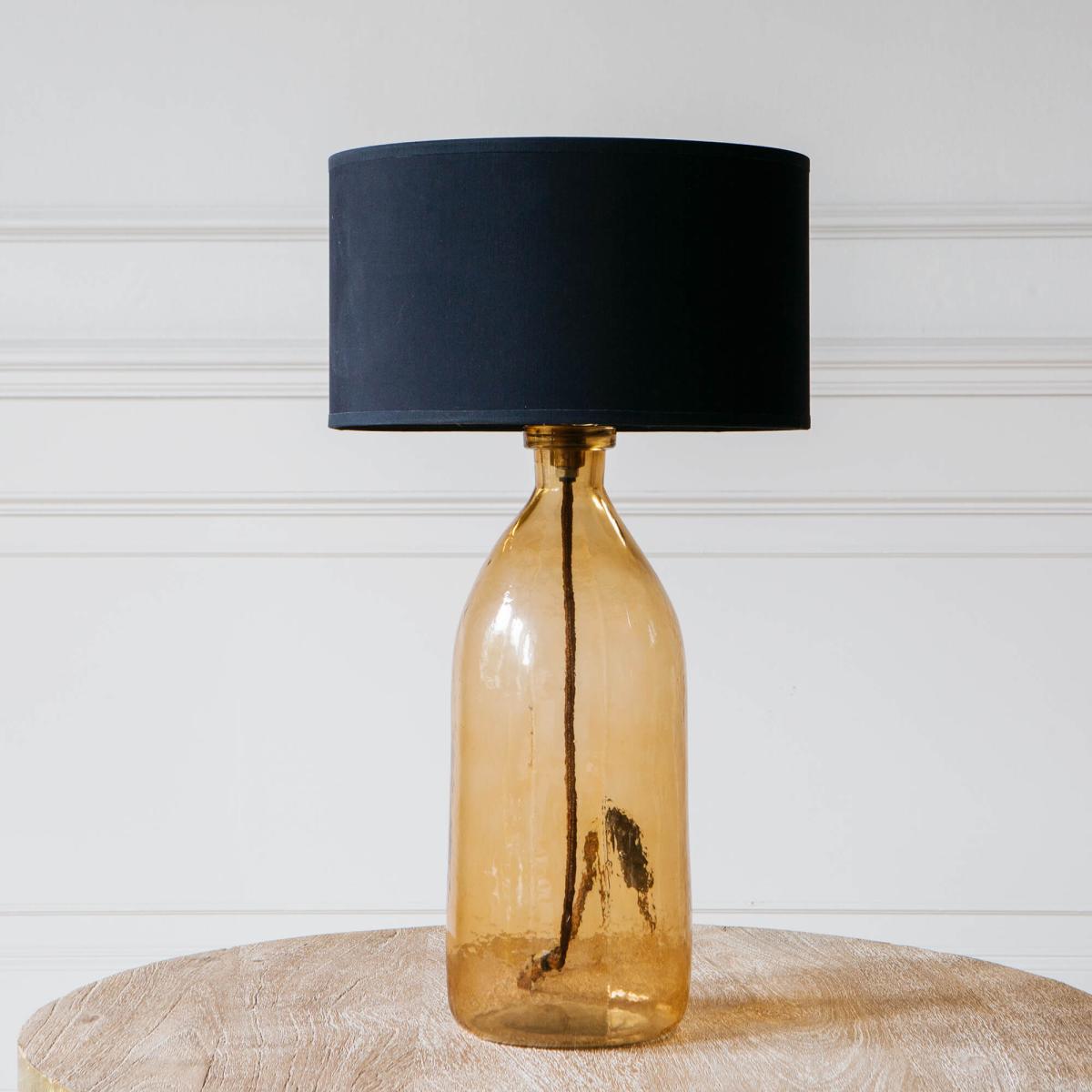 I love this lamp for its simple yet striking design-its amber glass base adds warmth and personality, while the black shade keeps it versatile. It works well in both contemporary and eclectic interiors, particularly when styled on side tables or consoles to add a touch of sophisticated colour. Practical tips include balancing it with other warm-toned accessories or metallic accents for cohesion. Its warm glow creates a cosy atmosphere, making it ideal for living spaces or bedrooms where a subtle, inviting light is desired. The key is to keep the surrounding decor minimalist to let the bottle-inspired base truly stand out.