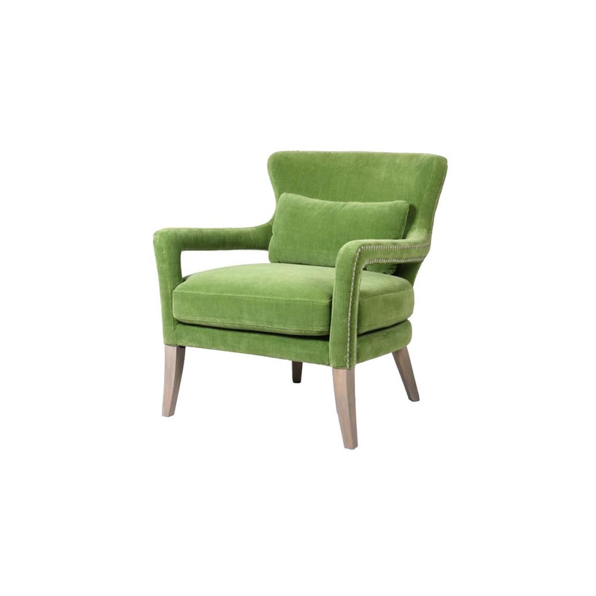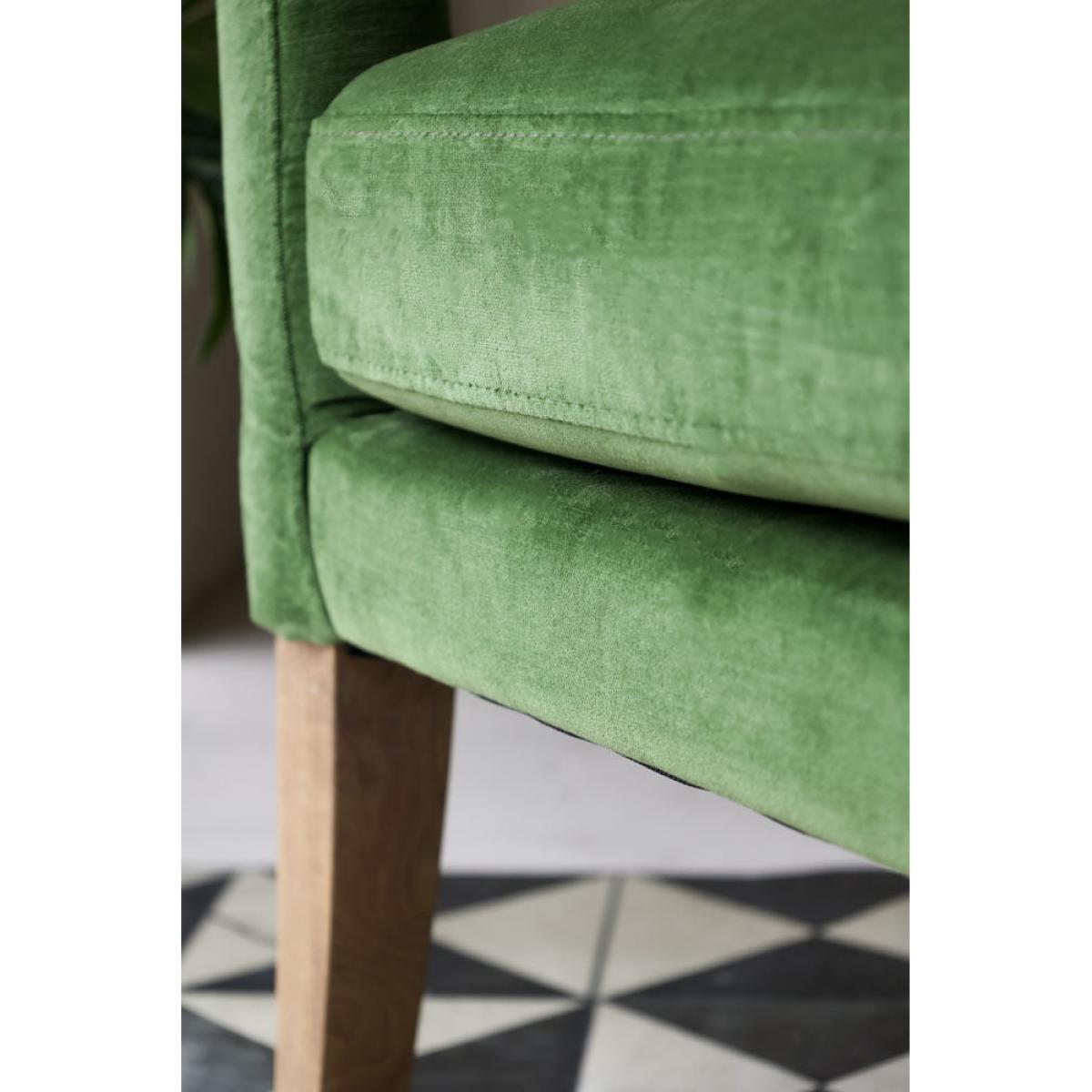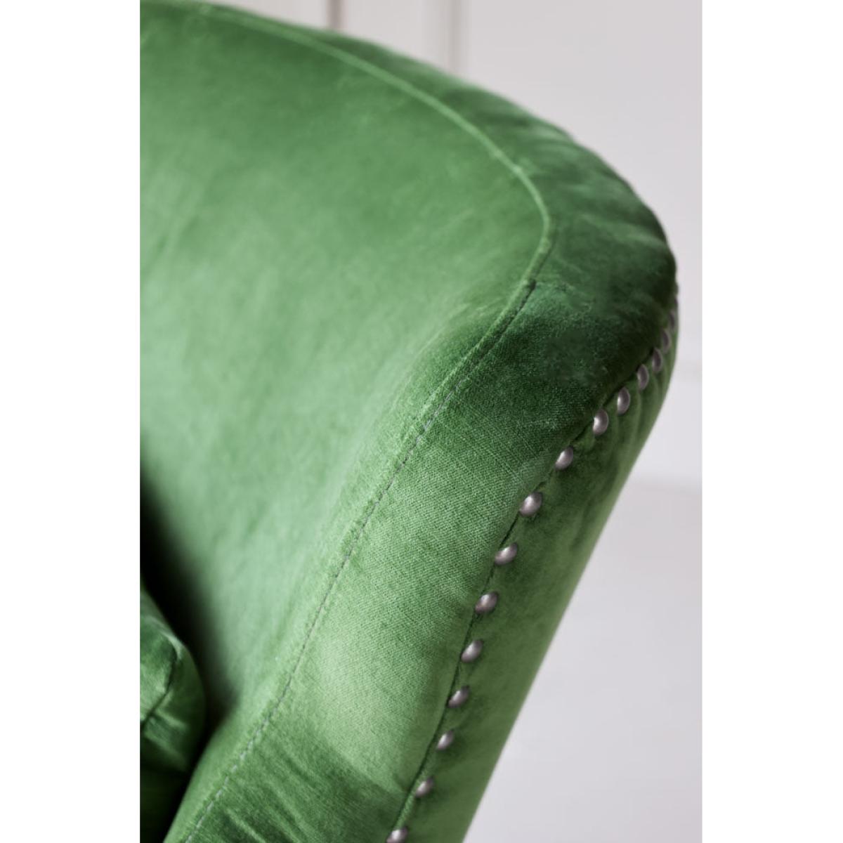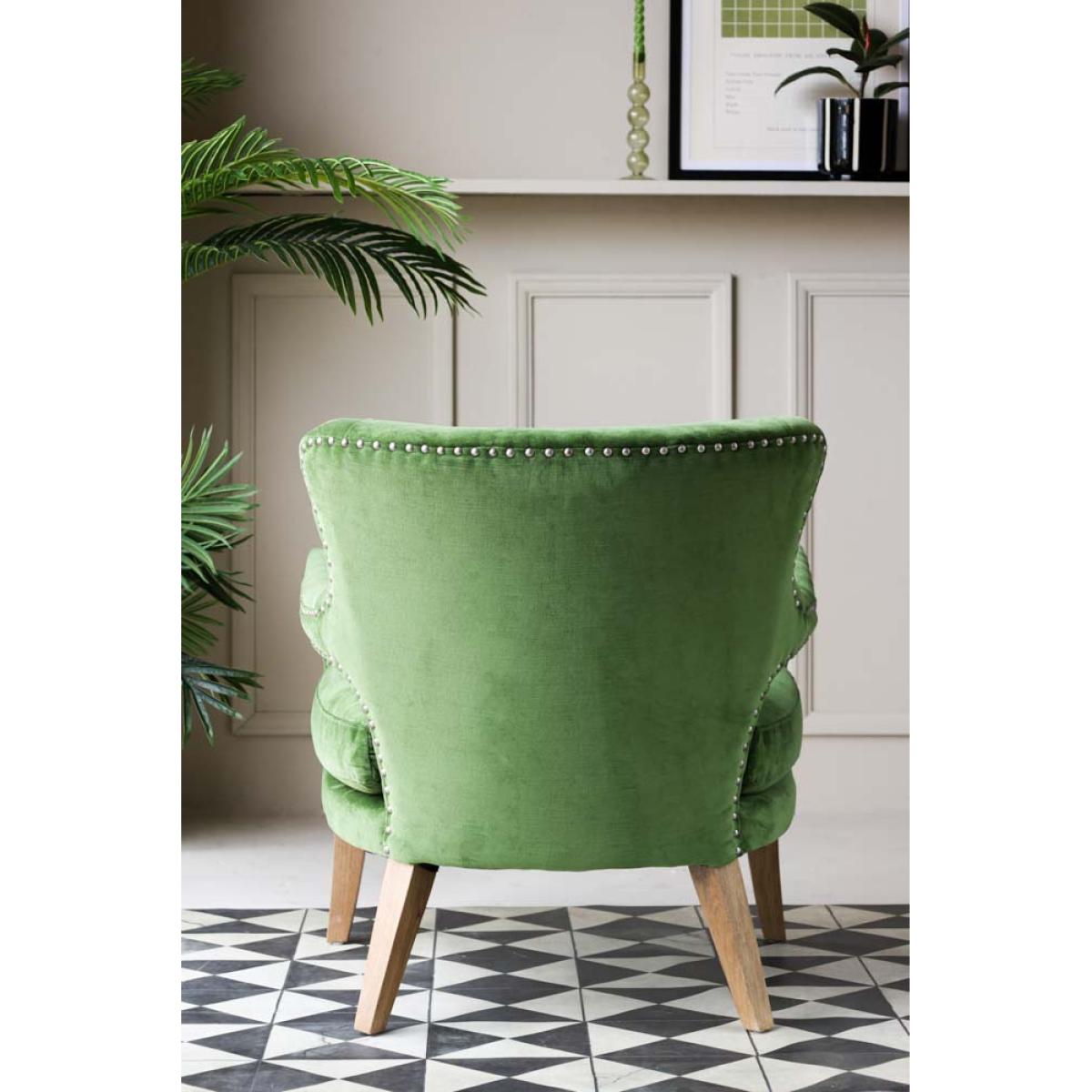 About The Gorgeous Green Velvet Armchair Taking luxe lounging to the next level, the Gorgeous Green Velvet Armchair introduces cosy comfort to any corner of your home. Measuring H82cm x W75cm x D81cm, the armchair features velvet upholstery in a vibrant natural green with antique silver studded details. Designed with premium comfort in mind, the velvet armchair comes complete with a matching green velvet back pillow. Why We Think You’ll Love The Green Velvet Armchair You can never have too many places to sit when guests come over so we always recommending creating as many cosy corners as possible when styling your home. Embracing our love of all things green, this modern armchair is crafted in a glorious fresh green colour palette that evokes memories of the natural world, from freshly cut grass to leaves on the forest floor. With pale wood legs and studded upholstery design details, this gorgeous piece of stylish seating is perfect for relaxation. How To Style The Gorgeous Green Armchair A few of our favourite spots for the Gorgeous Green Velvet Armchair include your living spaces for curling up with a glass of wine and the bedroom for sinking into when you need a moment of peace. However, the green velvet armchair looks great anywhere and can also be styled in the corner of the kitchen or next to a mirror in the hallway to create a statement style spot!