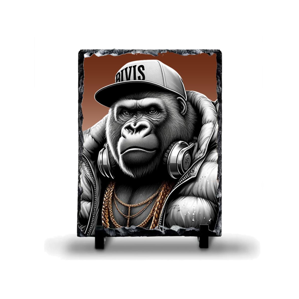This gorilla headphones photo rock slate is a unique and stylish addition to your home decor collection. The rock slate is made of high-quality Material, this is made of durable rock slate, this photo frame ensures longevity and a modern yet unique look. The rock slate is perfectly sized at 15 x 20 cm, this frame is ideal for showcasing this beautifully printed gorilla headphones photo. Comes with a stand for easy display on any tabletop or shelf, adding charm to any room.