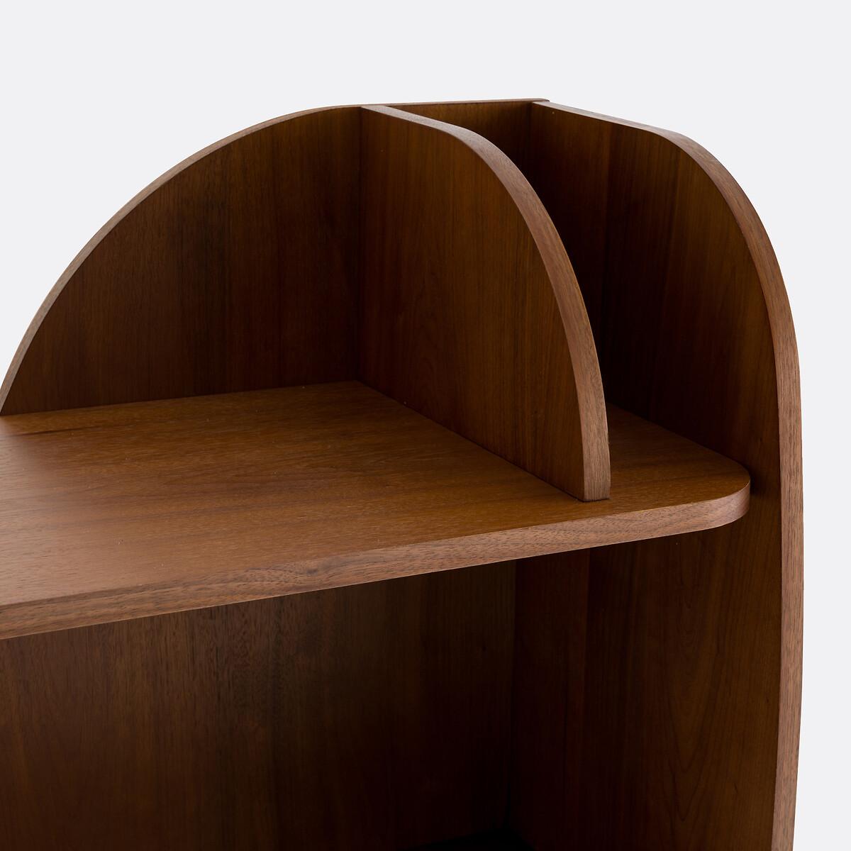 The organic shape of this bookcase, with bold curves, helps make this piece of furniture a sculptural design. Designed by La Redoute Interiors. Product Details • Structure in walnut veneered MDF, nitrocellulose varnish finish • Rounded shape • 8 open compartments • Fixes to the wallDimensions. Overall • Width: 150cm • Height: 120cm • Depth: 37cm. Usable spaceLeft to right and top to bottom: • L13.5/117.5/12cm • L72.5/72.5 x H37.5cm • L30/93/20 x H37.5cm • Shelf depth: 34.5cm • Height from floor to low shelf: 20cmDelivery:. Assembly required. Available for home delivery. Note! Please check that all access points are large enough to accommodate your delivery (doors, stairs, lifts). • WOOD FROM SUSTAINABLY MANAGED FORESTS. FSC® certified wood comes from forests that are environmentally, socially and economically well managed. Dimensions and weight of parcel2 parcels • L157 x H13 x D47cm. 37kg • L130 x H10 x D62cm. 22kg
