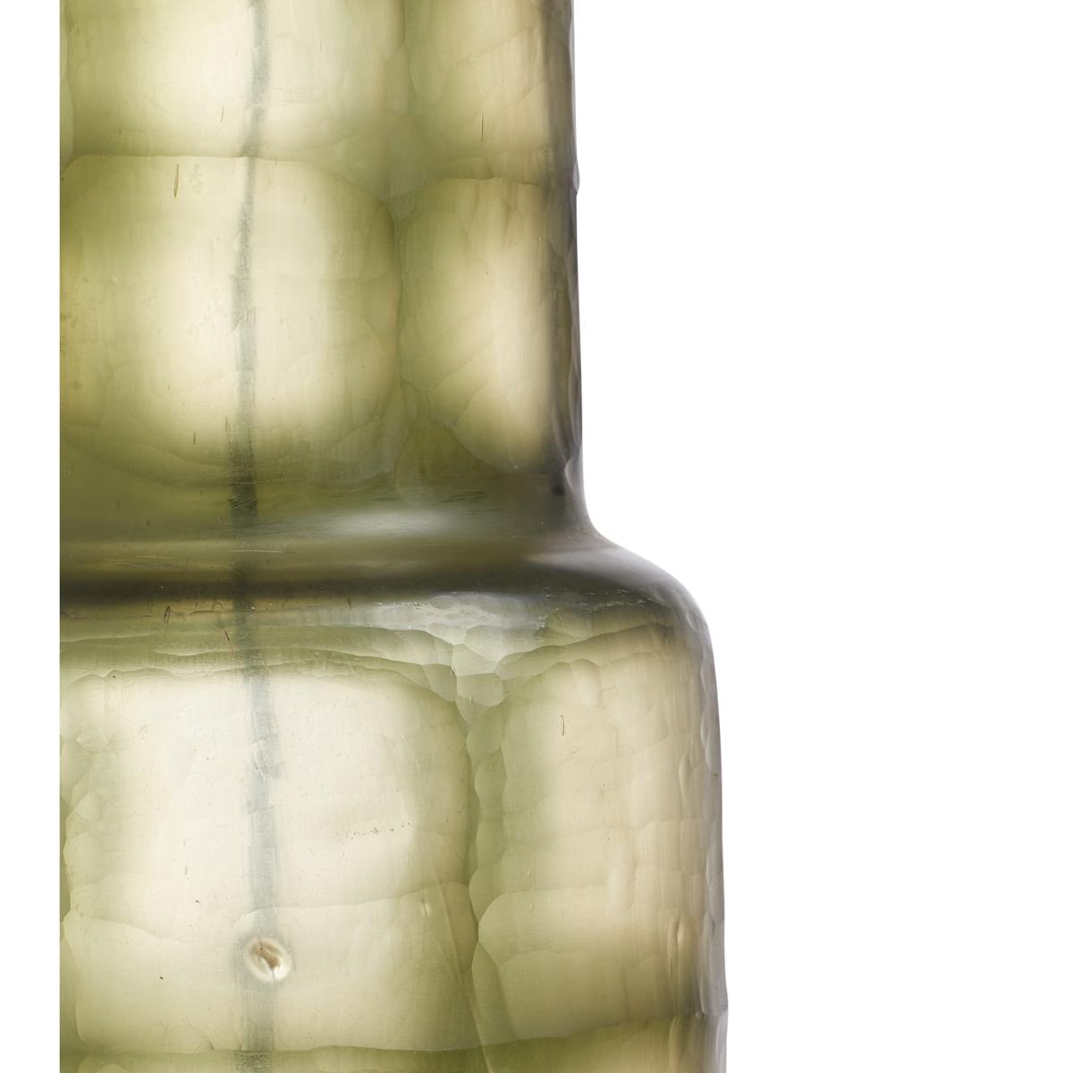 Featuring a set of striking green "scales", which are achieved during the glass-cutting process, the Gourami Lamp takes its name from a tropical fish species. Handmade from coloured glass and brass, the lamp base has a slim silhouette that makes a statement in even the most compact of spaces.