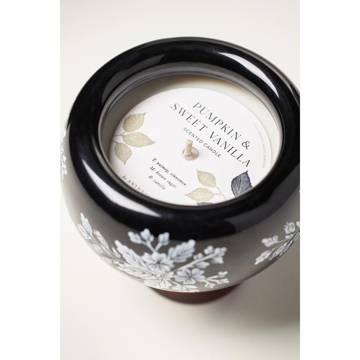 A bubbled glass bowl, detailed with handpainted florals, rests on a pedestal base, creating a sculptural two-tone vessel that houses everyone's favorite fall fragrance. **Pumpkin & Sweet Vanilla (Gourmand Spice):** Rich pumpkin soufflé is blended with browned butter, toasted nutmeg, and cinnamon then swirled with sweet vanilla cream and brown sugar. *For the best burn experience, keep the following in mind:* * The first time you light your candle, allow it to burn until the wax pool melts all the way to the edge; for a larger candle, this may take several hours. Wax has "memory," so if it is extinguished with a partial pool, that will prevent a full, even pool from forming in the future. * Trim your wick each time you light the candle, removing any "bloom" from the previous burn. We recommend lighting a wick that is 1/4-1/2" in length. * Ensure that your candle is placed on a heat-safe surface. * Do not allow wick trimmings, dust, or other materials to accumulate in the wax pool. * To ensure safety and longevity, be sure to check the bottom of your candle for additional instructions, including details on when to discontinue use. * 46-hour burn time * Hand-poured plant-based wax blend; fil-tec candle wick * Handpainted glass vessel * Imported