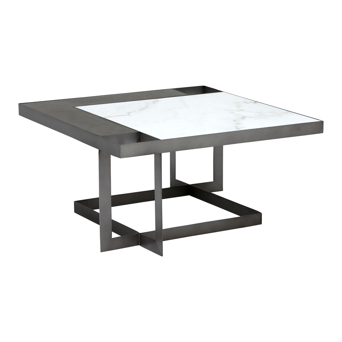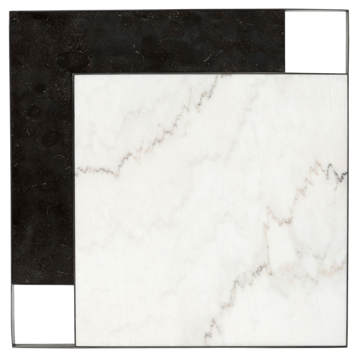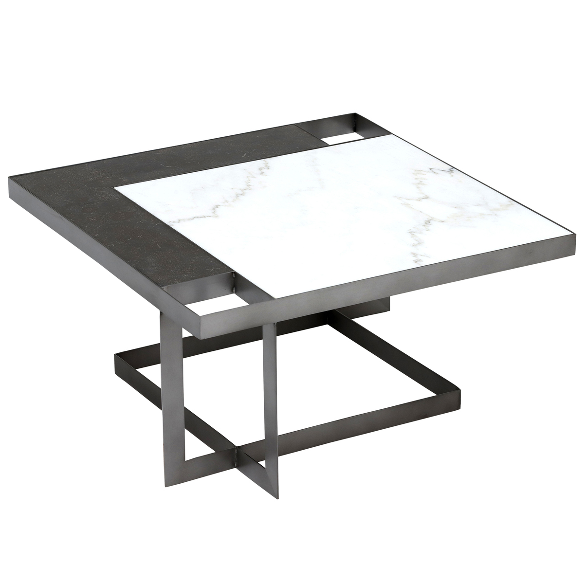 Blending the contemporary with the classic, Gowan is a coffee table that was made with a statement in mind. Its square top is comprised of both white marble and bluestone, arranged in a modern geometric fashion. Sharp and angular, the table’s black iron base is built with slim proportions that bring a sense of space to the living room. Sleek yet sophisticated, it can be dressed up or dressed down to suit your interior scheme.