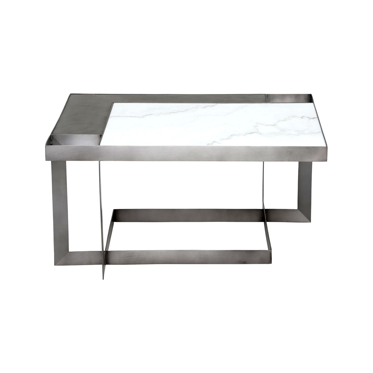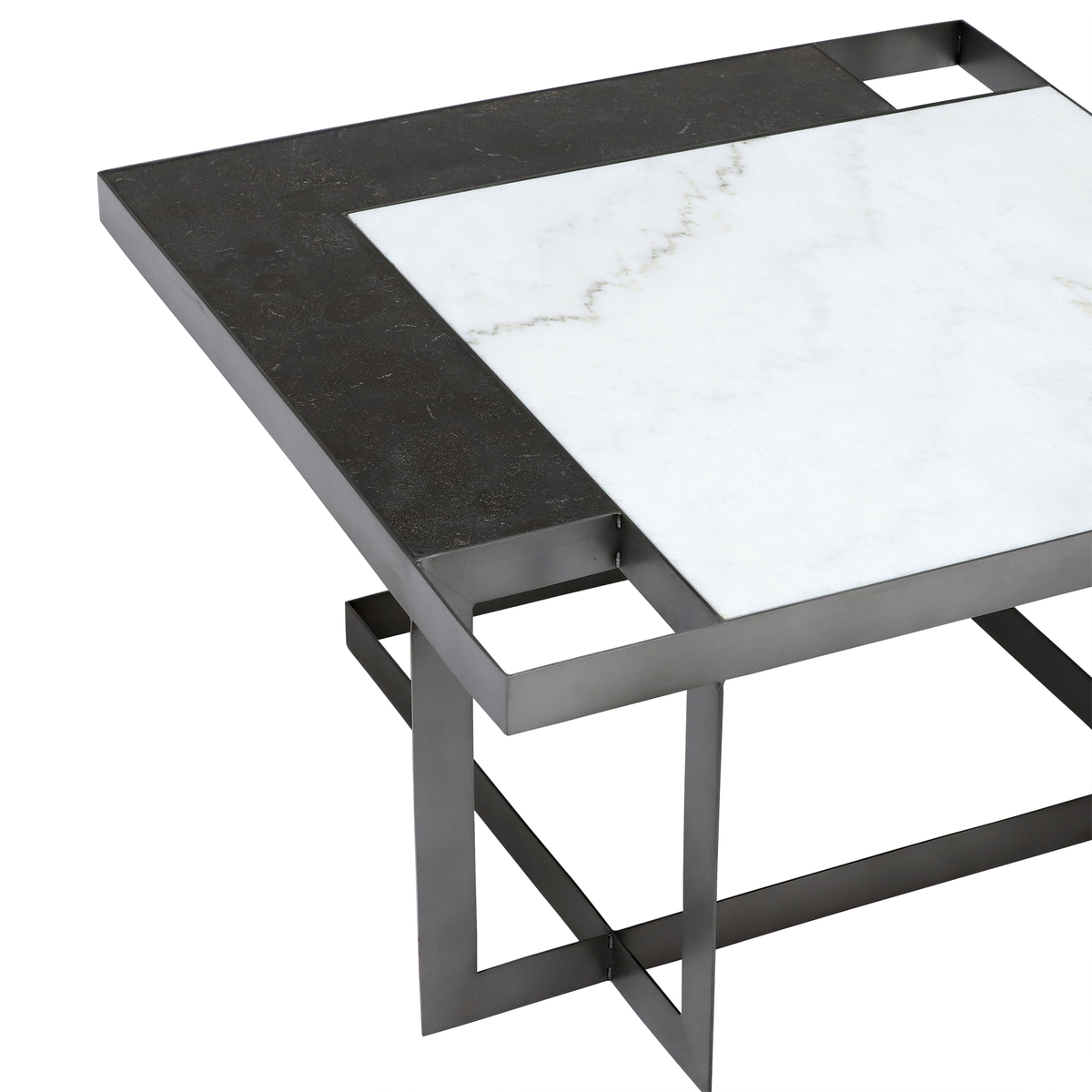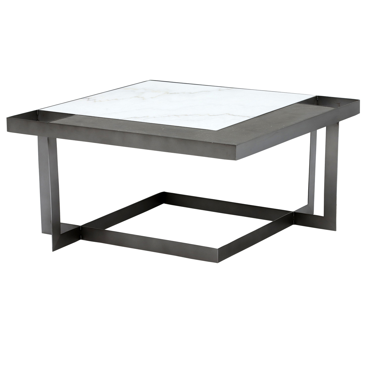 Blending the contemporary with the classic, Gowan is a coffee table that was made with a statement in mind. Its square top is comprised of both white marble and bluestone, arranged in a modern geometric fashion. Sharp and angular, the table’s black iron base is built with slim proportions that bring a sense of space to the living room. Sleek yet sophisticated, it can be dressed up or dressed down to suit your interior scheme.