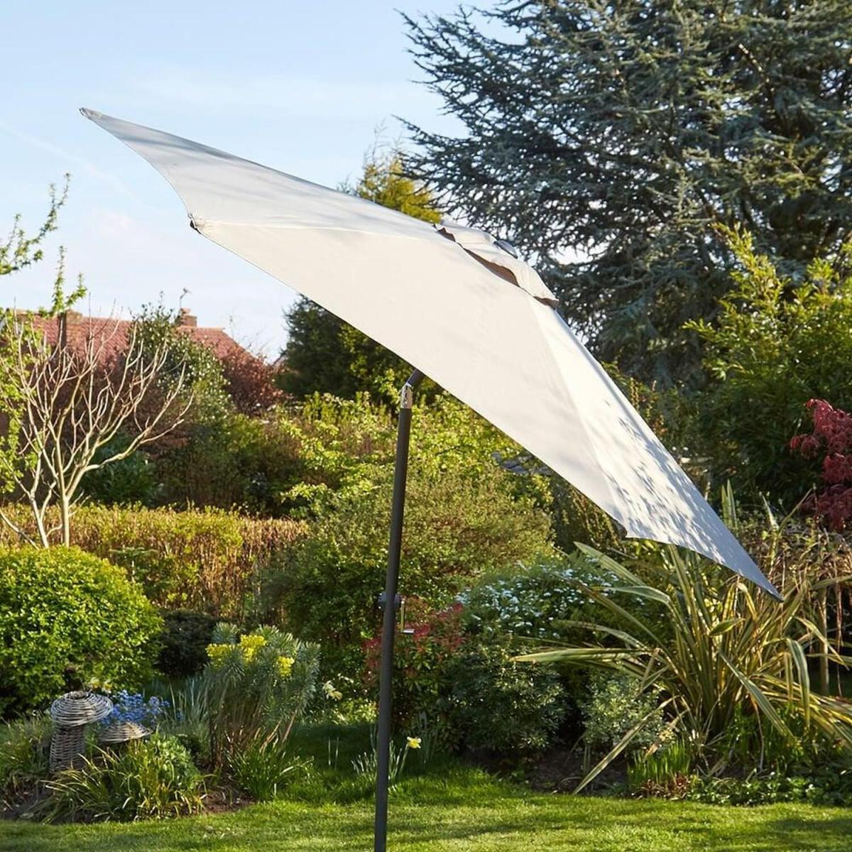 Bigger, sturdier, and more versatile than most, its 2.7m wide and portable means you can move it to wherever you want by your patio or garden dining table, sun loungers, or wherever. Just adjust the tilt. So you can shield yourself from the sun as it arcs across your garden throughout the day. It also stays in place as it has a vented top. So gusts of wind can escape through the vent without lifting the parasol.