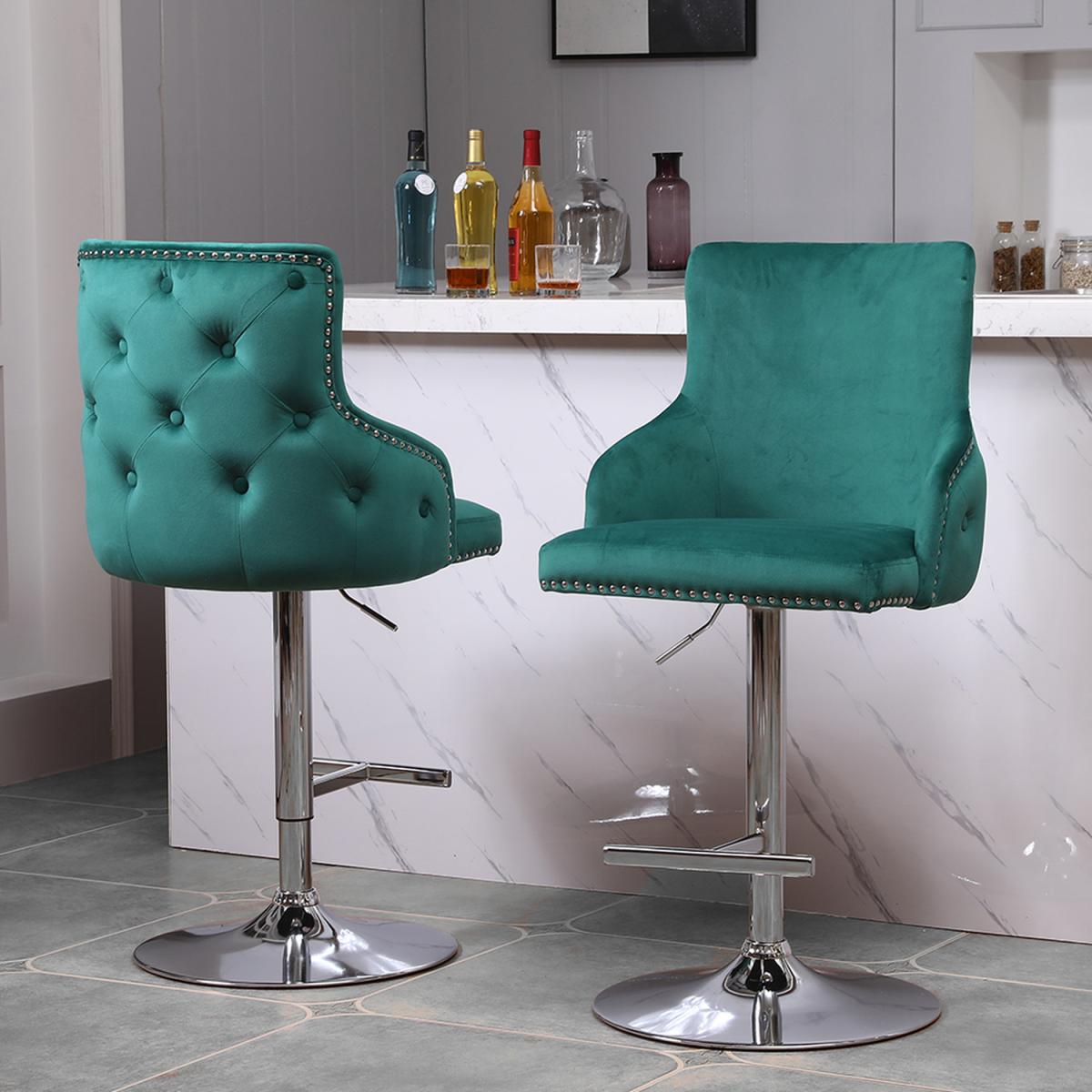 These high quality Grace Barstools feature a luxurious plush velvet upholstery, they include a premium gas lift / swivel mechanism that is made to last. Support & Comfort. Our Grace Barstools are made using high-density foam, ensuring that your seats are suitable for everyday use. They also provide excellent comfort and support to ensure maximum comfort while dining. Multifunction Grace Barstools has a perfect shape to fit in any environment in your house. It includes a premium gas lift / swivel mechanism that is made to last. Deep Buttoned Luxurious deep buttoned back with chrome stud detail. Comfortable and Stylish. The simple and modern design will blend with style of furniture and room decor.