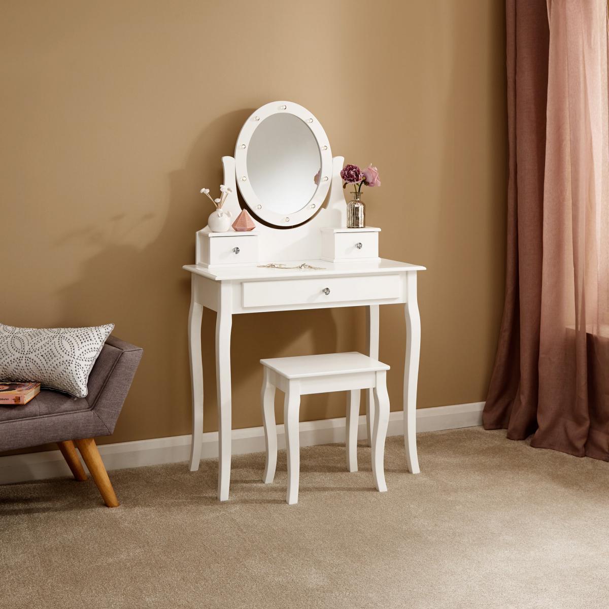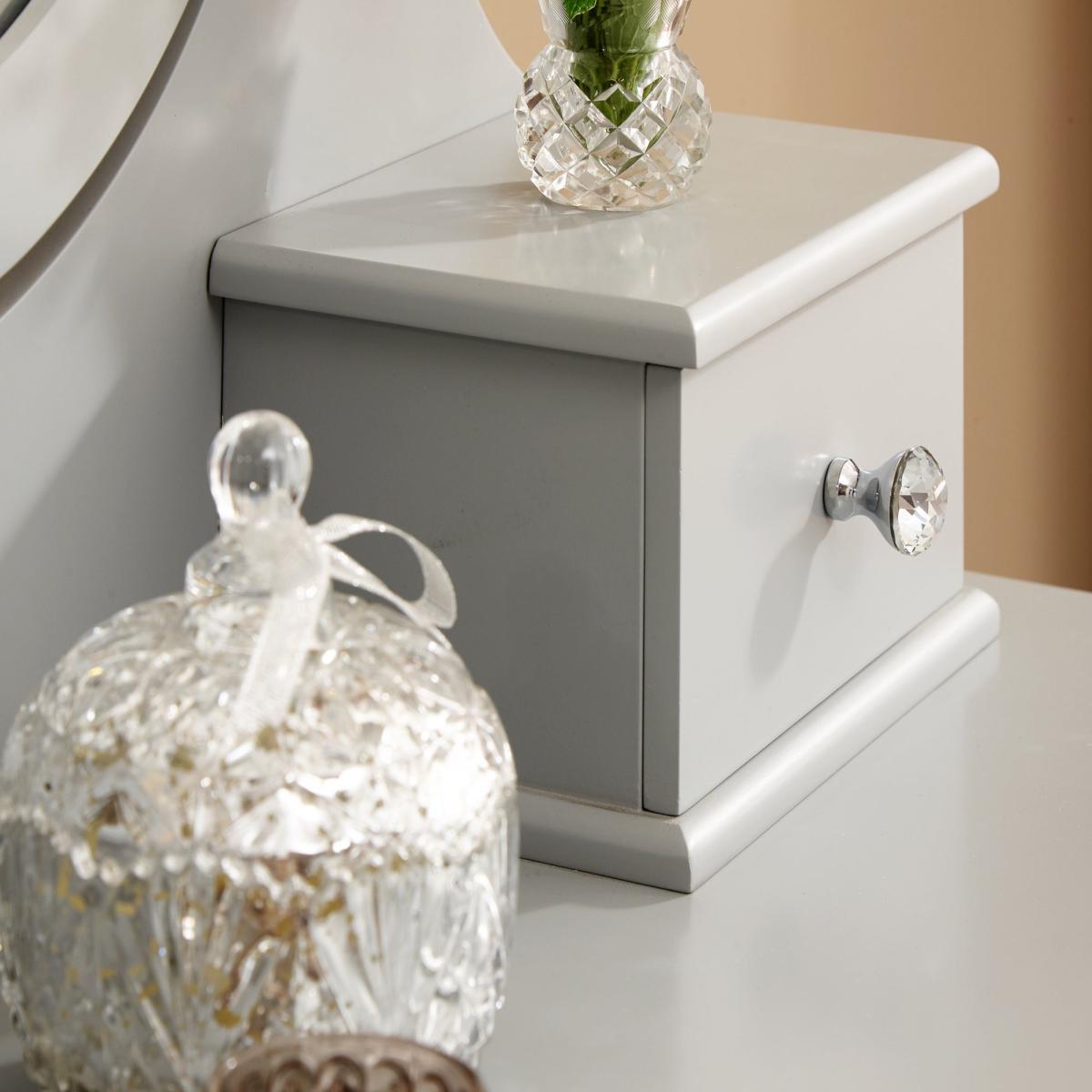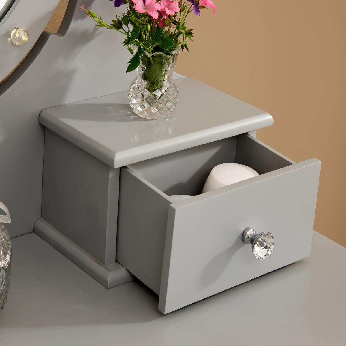 Combining antique styling and modern features, this easy-assemble Grace LED Dressing Table is a stunning addition to any bedroom décor. Available in either a white or grey colourway, this dressing table features hidden storage space, a stool, and an in-built LED mirror that creates a calming halo of light. Requires 2xA. A batteries, not supplied. Please note, unfortunately we cannot deliver this item to Northern Ireland or the Channel Islands.