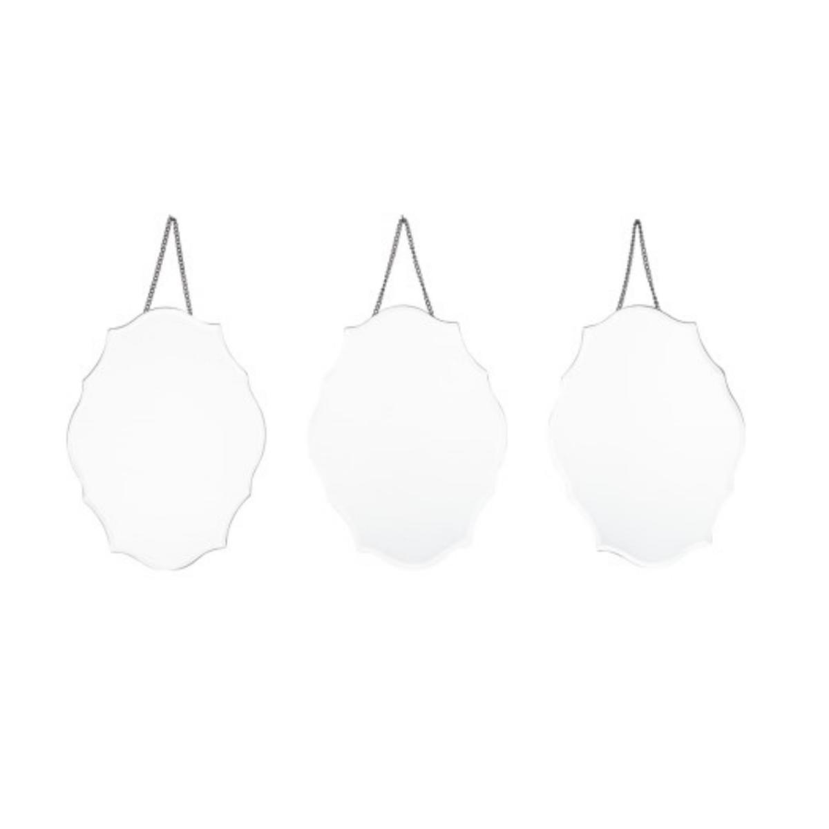Dimensions W15x H20x D1.1 cm. Give your interior a sleek vintage look with the Grace set of three scalloped wall mirrors. The chain detailing is reminiscent of the Victorian era but the styling adds a contemporary twist a stunning style that will create a statement piece on any wall in your home. Features. Vintage with a contemporary twist Unique shape. Eye catching feature piece in any room. Suitable for a range of modern home decors Wall hanging mirror Assembly not required..