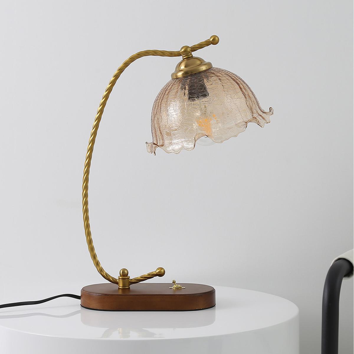 Graceful Flower-Shaped Glass Table Lamp - Red Wood