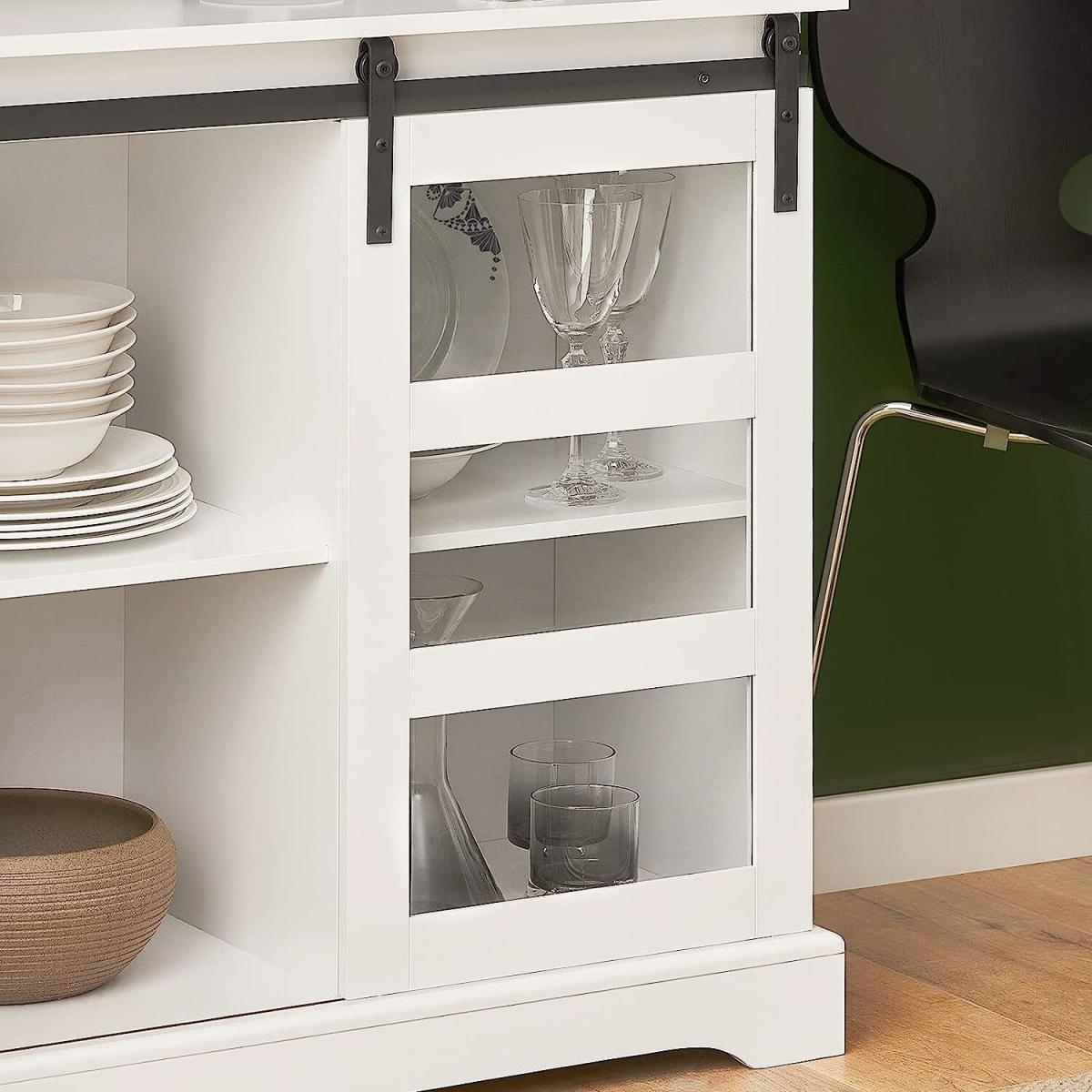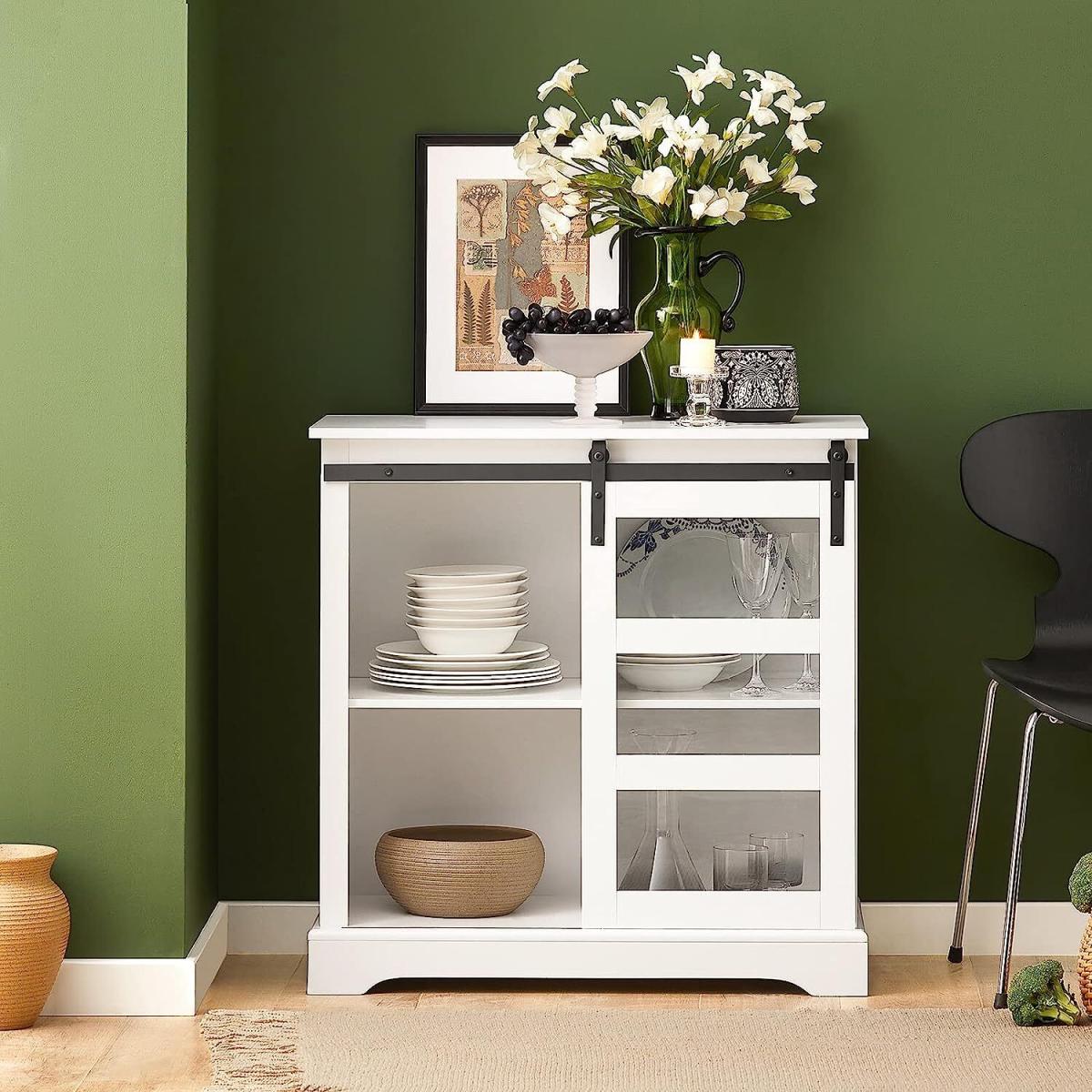 A nice piece of furniture has glass sliding door, would be suitable for a variety of locations, like kitchen, dining room and living room. The top of the cabinet is ideal for storing something you might need in reach, or some items you want to display.2 compartments beneath top area, 2 tiers in each compartment, providing ample storage space for you. The tempered glass sliding door adds a stylish touch to this cabinet and helps you take out needed items with ease. This cabinet will keep your room organized as well as distinctive. Modern design cabinet, it will blend perfectly with any home decor.