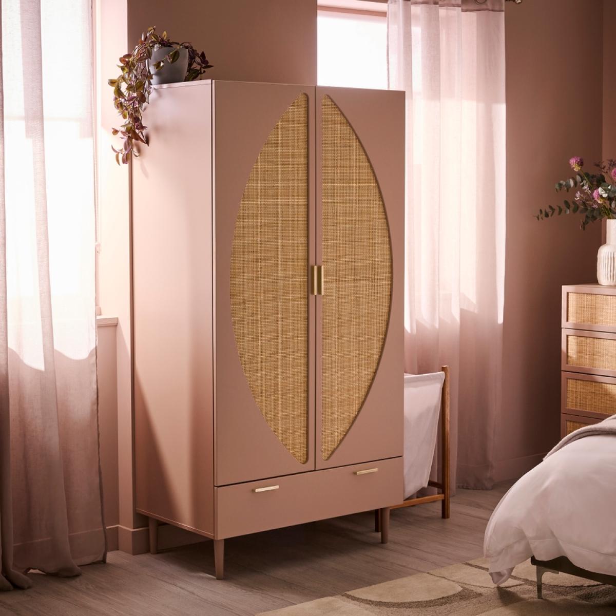Storage has never looked so stylish! With rattan fronted doors, gold effect metal handles and a dusky pink finish, our Gracie Rattan Wardrobe is sure to make a statement. This double wardrobe contains ample hanging space for you clothes along with extra drawer space beneath to help you keep your bedroom clutter free and your clothes organised without compromising on style. Gracie will make a gorgeous addition to your home.