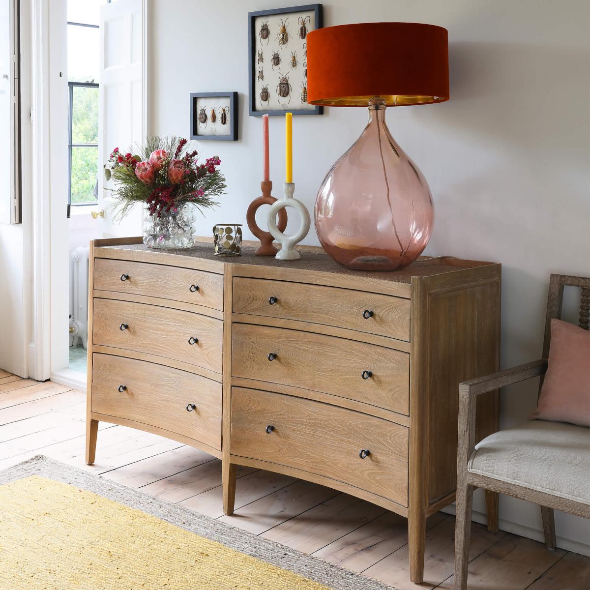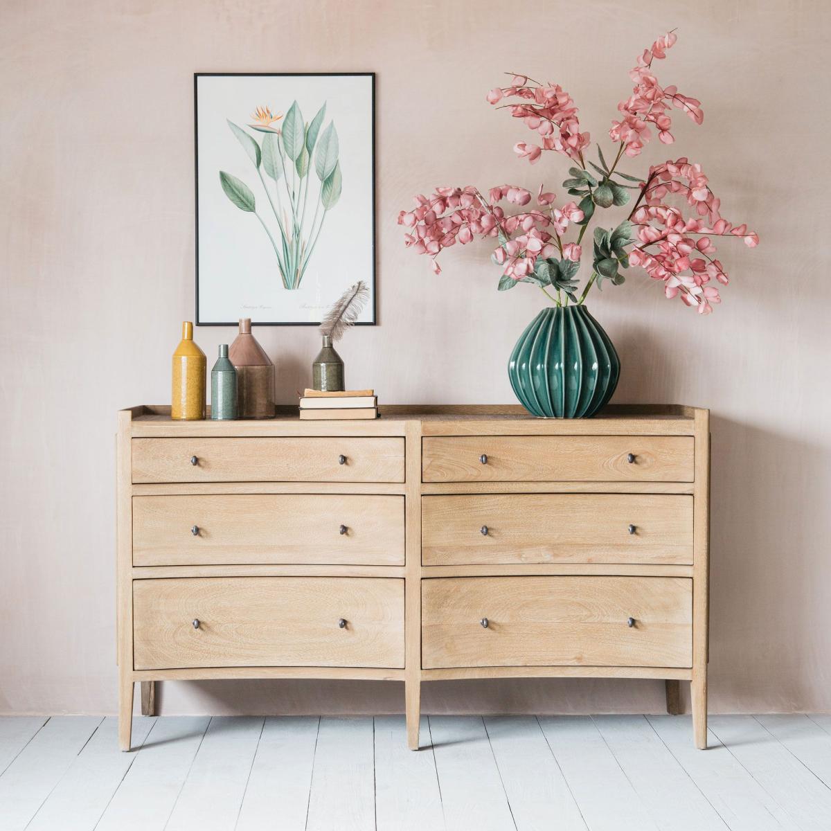 The Gracie six-drawer is a versatile sideboard that works well in both contemporary and traditional interiors. I love its clean lines and light wood finish, which can effortlessly brighten up a dining room, hallway, or living space. Practical styling tips include pairing it with a mix of textured and ceramic accessories or using it as a display area for artwork and plants to add personality. Its ample storage makes it a great choice for organising everyday essentials, while its understated design keeps the look fresh and timeless. This piece is especially effective when styled in minimalist settings or layered with vintage and modern elements for a more eclectic feel.