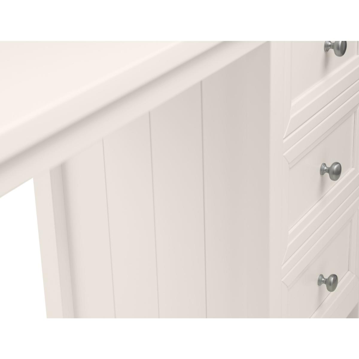 Panelled New England style with detailed chamfered cabinetry Surf White lacquered finish Atractive pewter handles Part of Julian Bowen's Maine bedroom collection 12m product guarantee