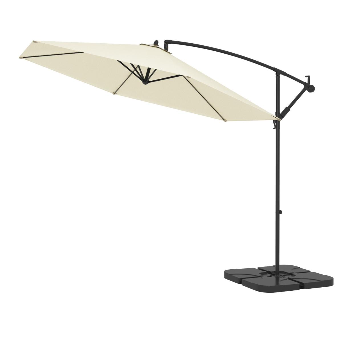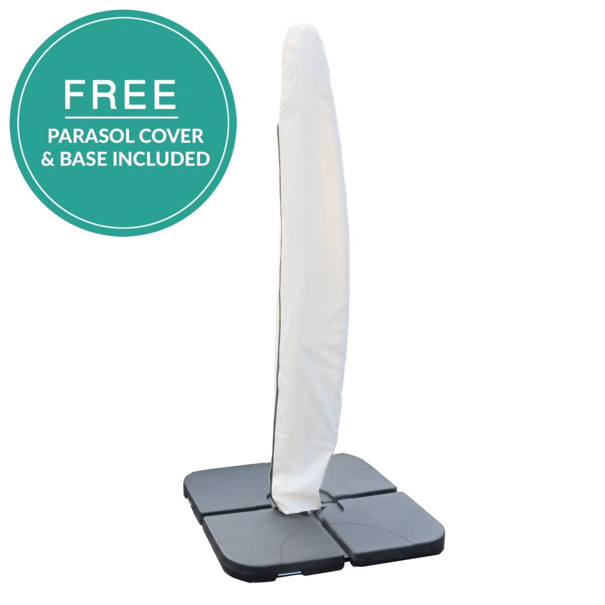 This item is as new. It is in excellent condition however the box has been opened. GRADE A1 Features we love This parasol arrives complete with weighted base and parasol cover. Height adjustable with an easy crank mechanism Cantilever design – easy to position keeping the pole out of the way. Heavy weight base keeps the parasol steady and in place. Fade and shower resistant – ideal for British weather!Folds down for easy storage and manoeuvrability All about me. Whether you've got the family round for a BBQ or you're simply sitting back and relaxing on the patio this stylish parasol makes it easy to add some shade to your outdoor space. With a cantilever design and a weighted base you can place it anywhere and easily move it to follow the sun throughout the day. It's fitted with a crank mechanism too so with a few turns you can quickly and easily adjust the height to suit your space. In neutral cream with a black metal frame it easily coordinates with other garden furniture. The cream polyester canopy is weatherproof so if you're caught in the odd shower there's no need to worry plus it's resistant to fading from sun exposure. The black metal frame is made of steel so it's really tough and durable lasting the test of the British weather. The complete parasol folds down and the base is removable for easy storage. Need to know. Includes. x1 Parasol with weighted base Parasol dimensions. H220 x W300 x D300 cm Base dimensions. H7.5 x W100 x D100 cm Finish. Black metal and; Cream fabric Material. Steel and; aluminium Assembly required. Yes.