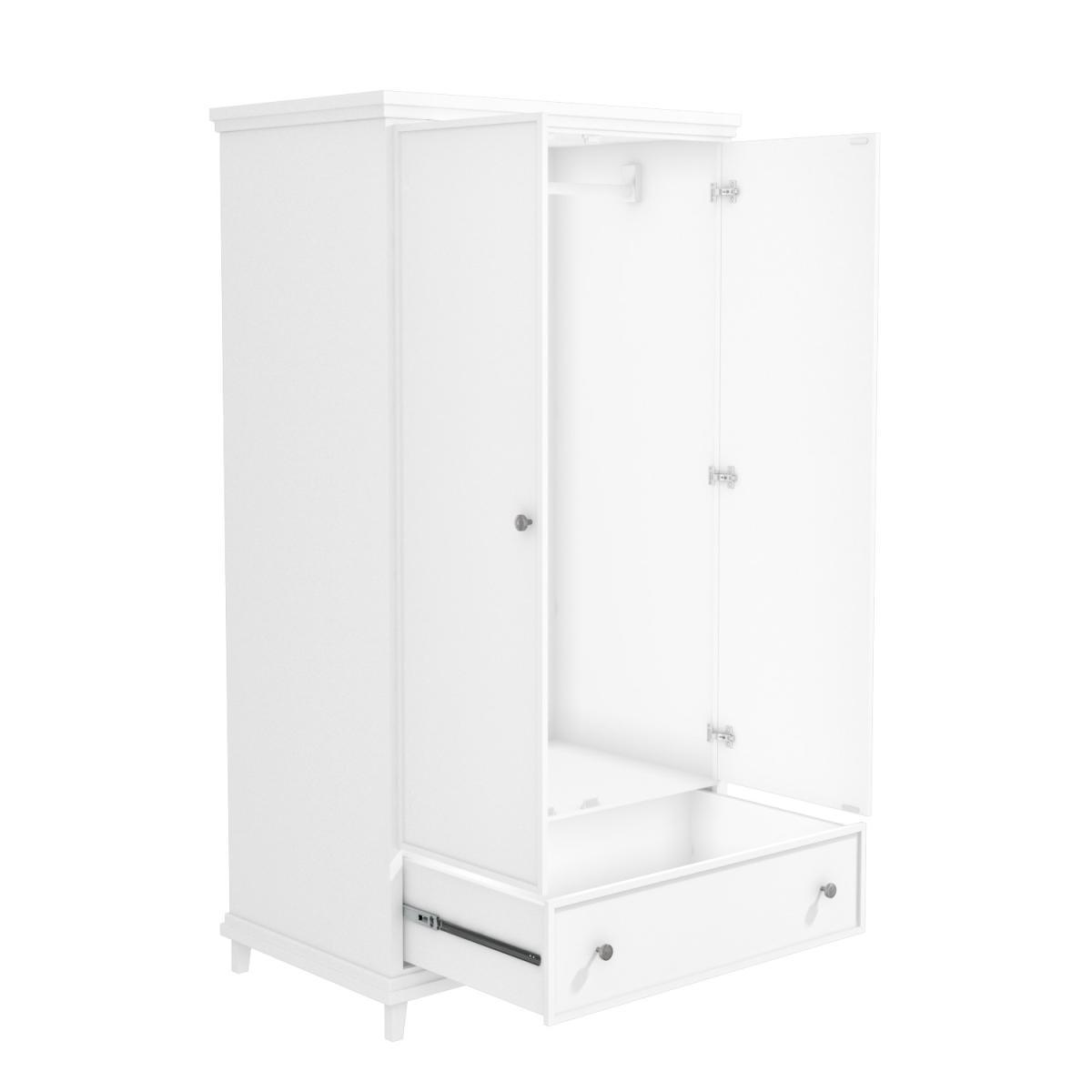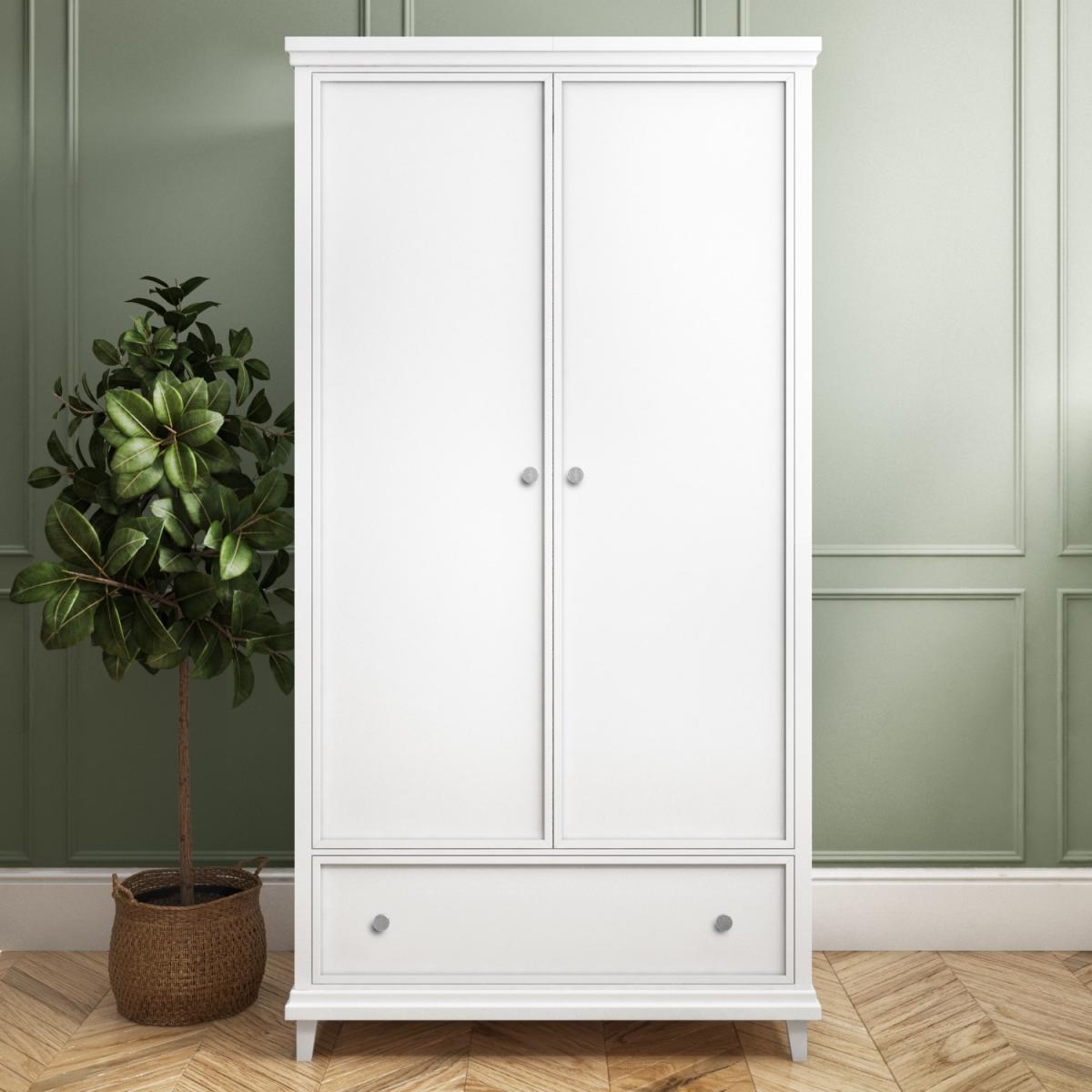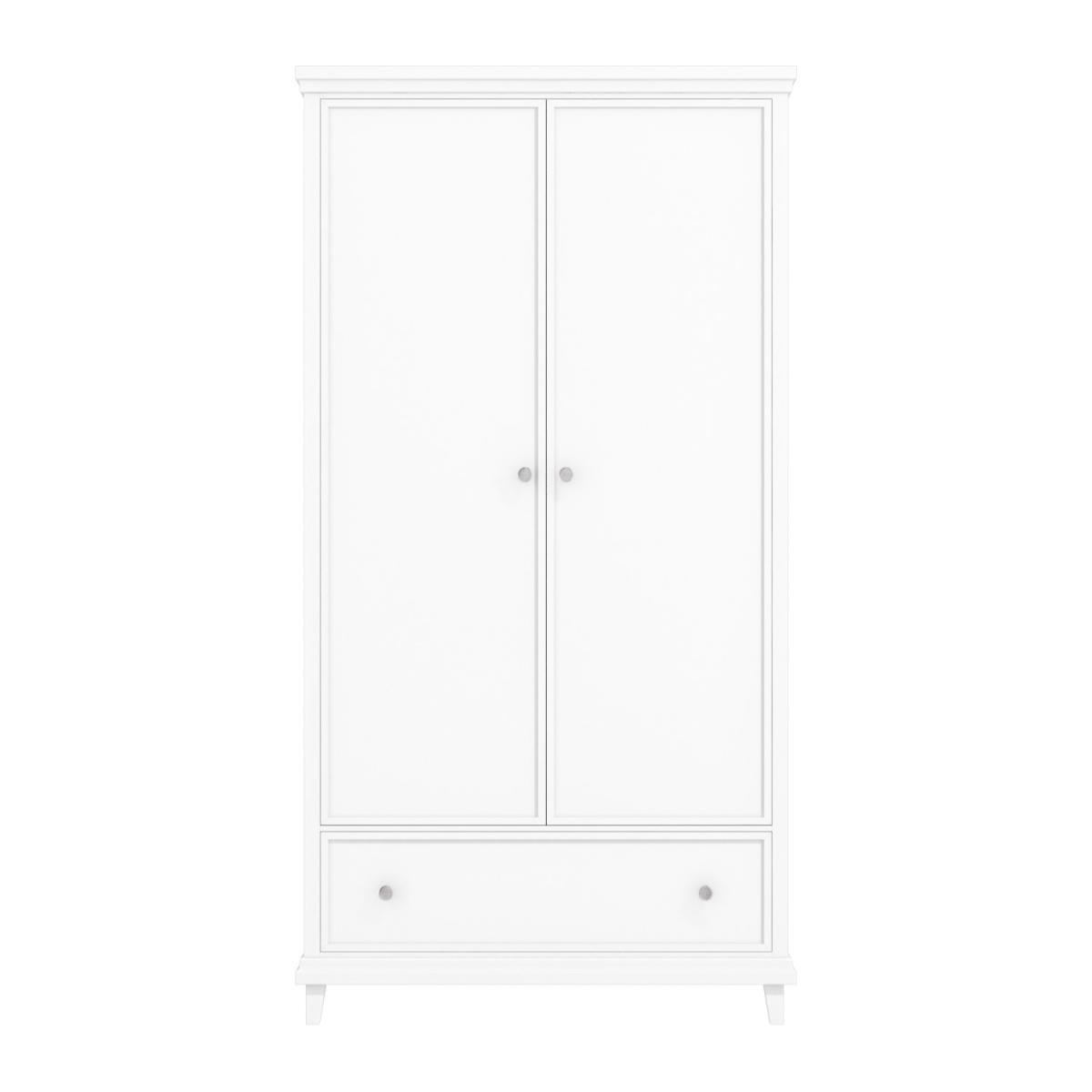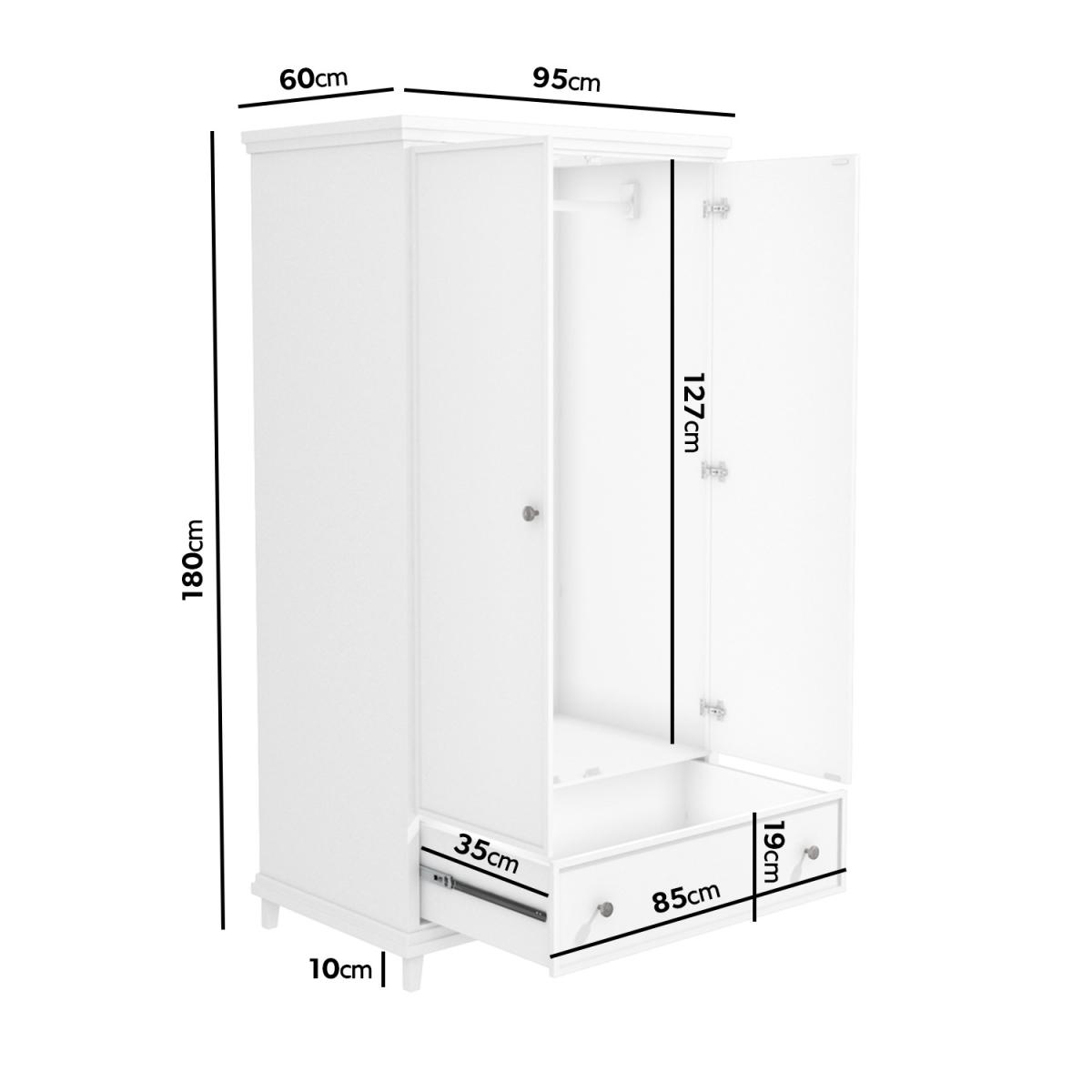 Neutral white finish will coordinate with any decor Stylish contemporary design with shaker detailing Wide interior rail for neatly hanging your clothes Spacious drawer for storing any extra folded items Brushed-silver, coin handles add the finishing touch Matching items available in the Georgia range Need to know Number of drawers: 1 Weight: 43kg Colour: White and silver handles Finish: Painted Material: Solid pine frame, acacia (legs) and metal ball bearing runners Assembly required: Yes