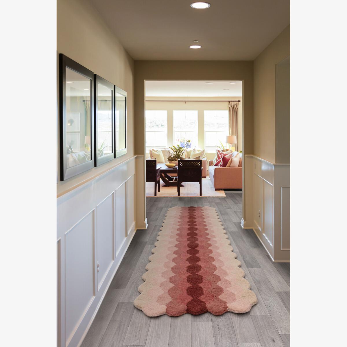 I love this runner rug for its versatile design and cosy texture. The gradient pattern adds visual interest without overwhelming the space, making it perfect for both contemporary and traditional interiors. Its 100% wool composition ensures durability and softness underfoot, ideal for busy hallways or transitional spaces. Styling-wise, pairing it with minimalist furniture and neutral tones will let the pattern stand out, while layering it with complementary textiles can create a warm, inviting corridor. Practical tips include placing slip-resistant underlay beneath for safety and considering its subtle colour palette to seamlessly integrate into various colour schemes.