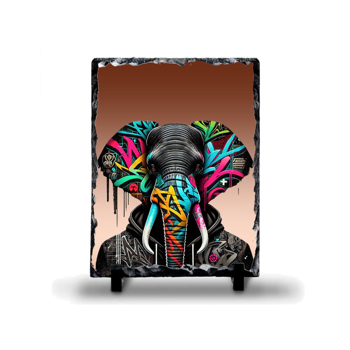This Graffiti Elephant photo rock slate is a unique and stylish addition to your home decor collection. The rock slate is made of high-quality Material, this is made of durable rock slate, this photo frame ensures longevity and a modern yet unique look. The rock slate is perfectly sized at 15 x 20 cm, this frame is ideal for showcasing this beautifully printed graffiti elephant photo. Comes with a stand for easy display on any tabletop or shelf, adding charm to any room.